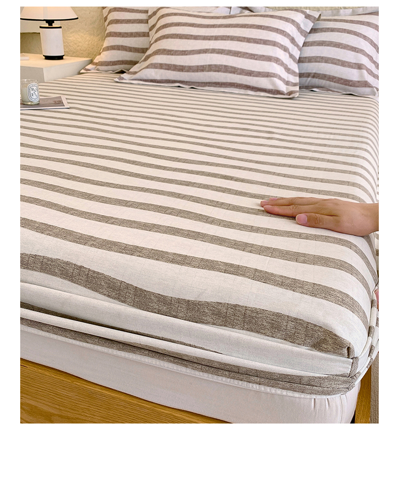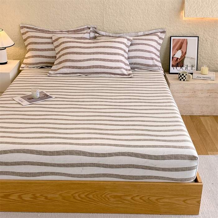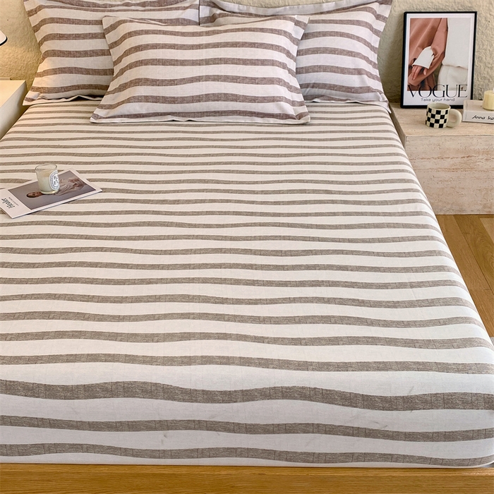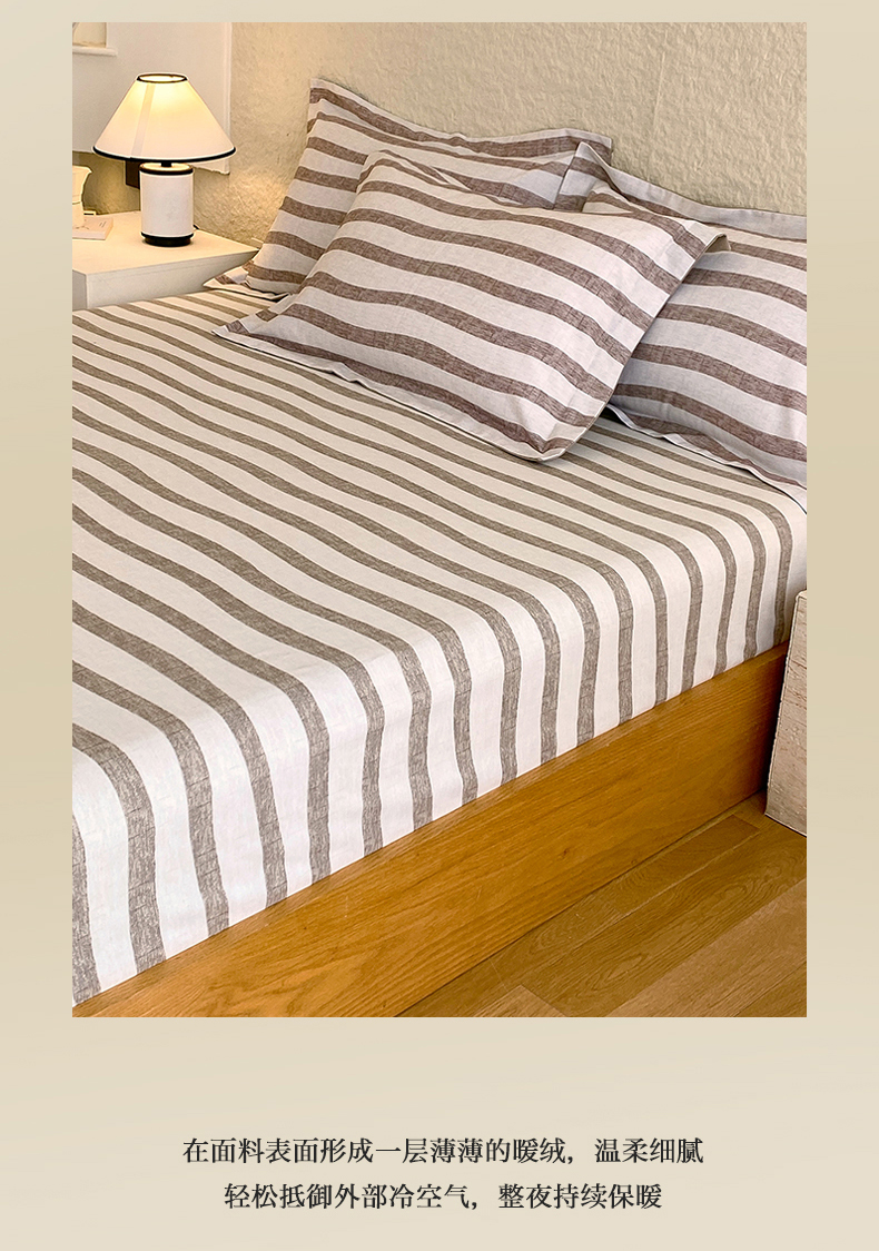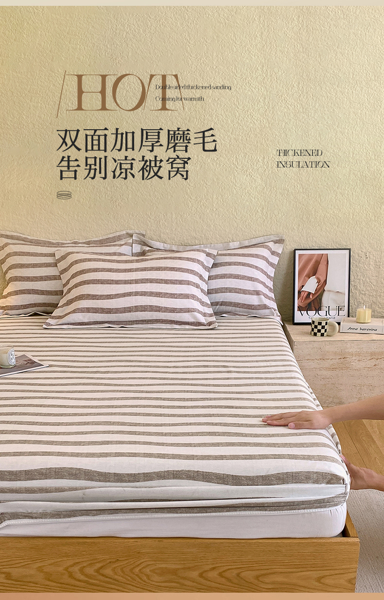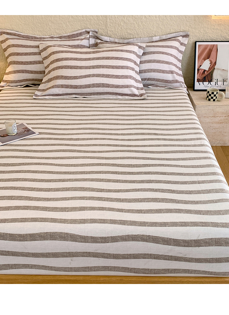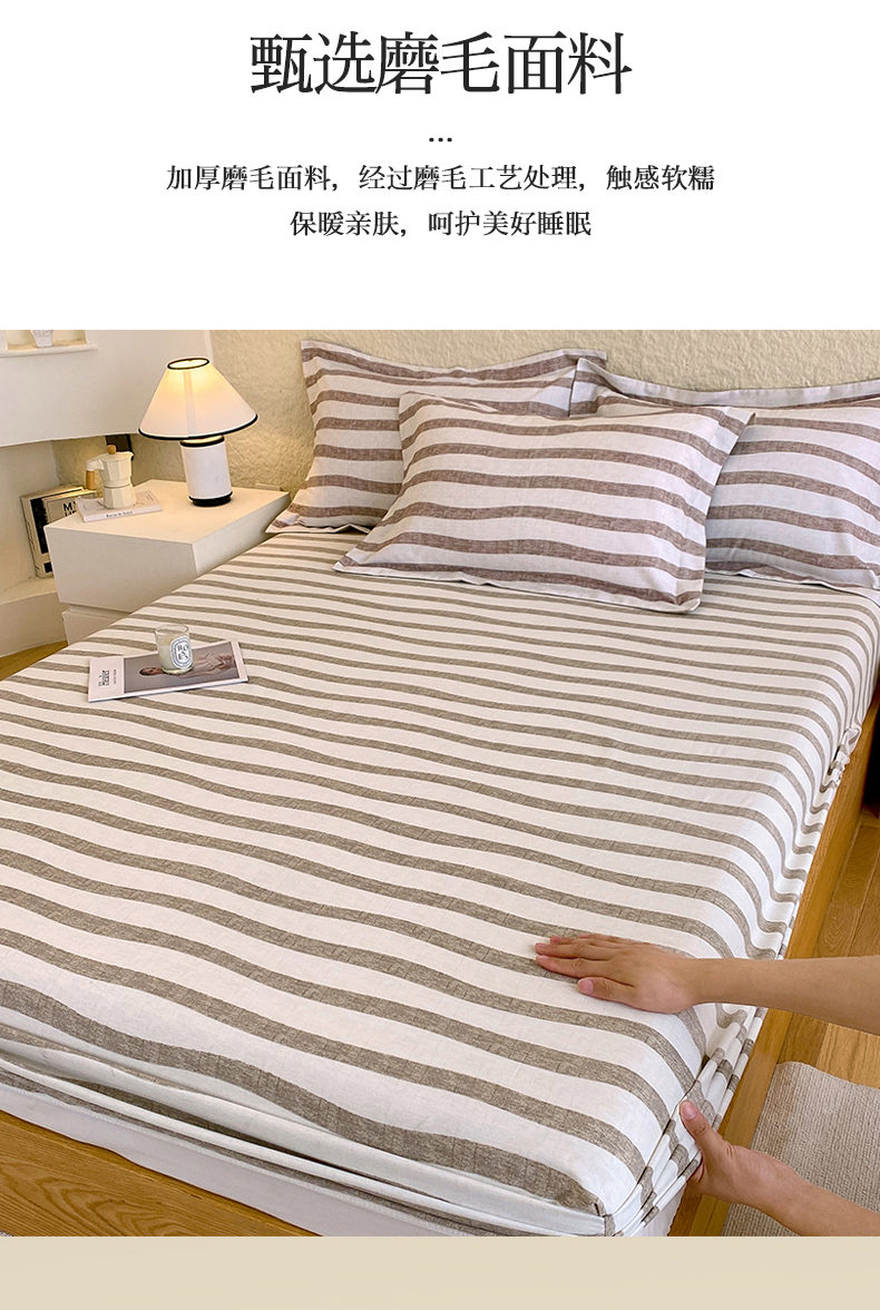 凯磊家纺 2025新款AB版加厚磨毛系列单床笠 曲线条纹-咖