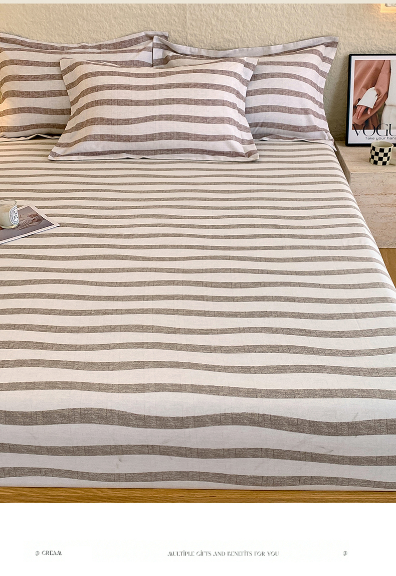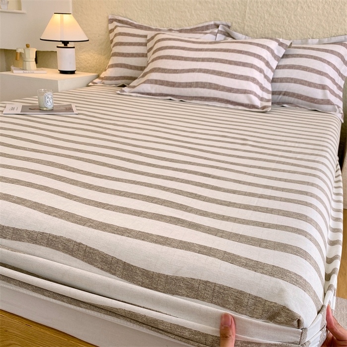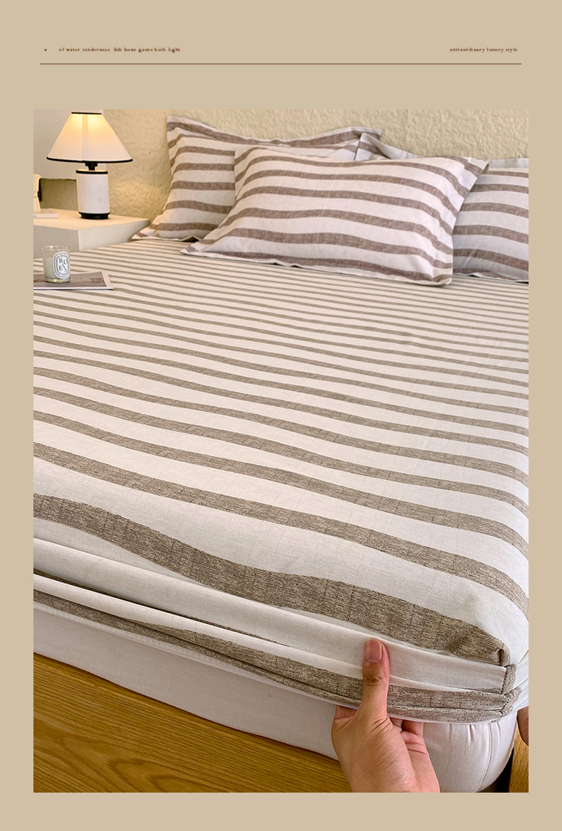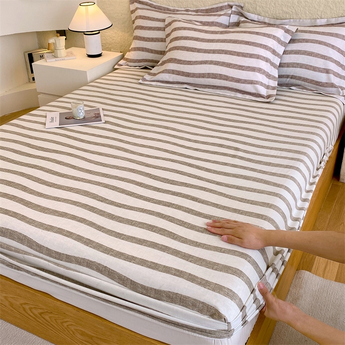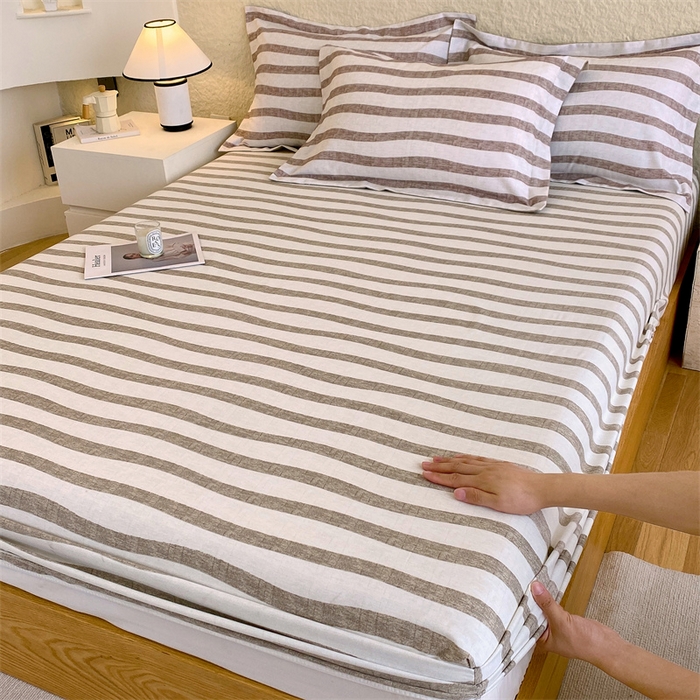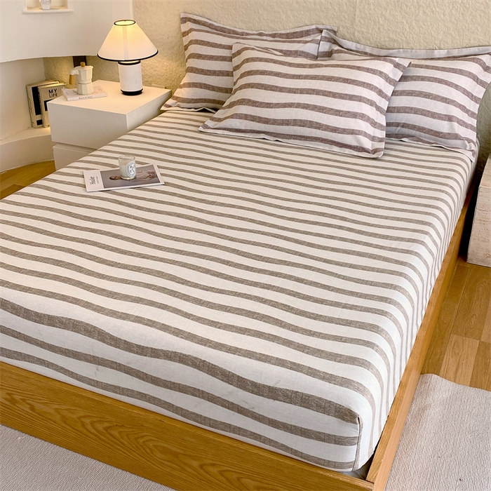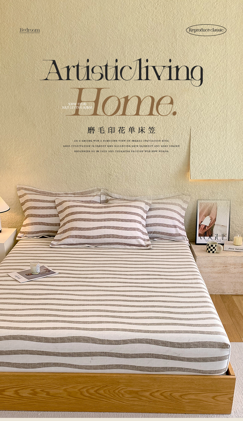 凯磊家纺 2025新款AB版加厚磨毛系列单床笠 曲线条纹-咖