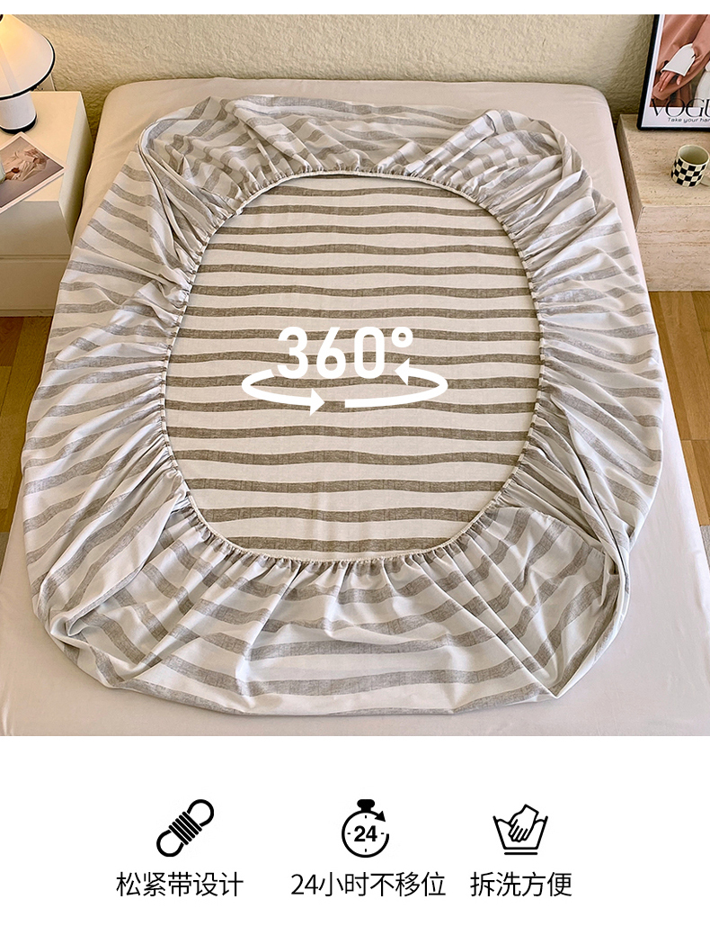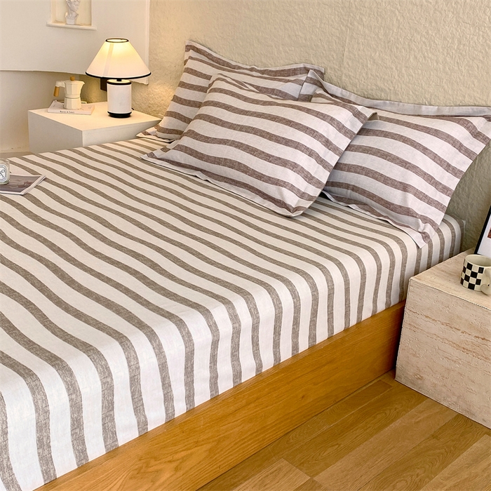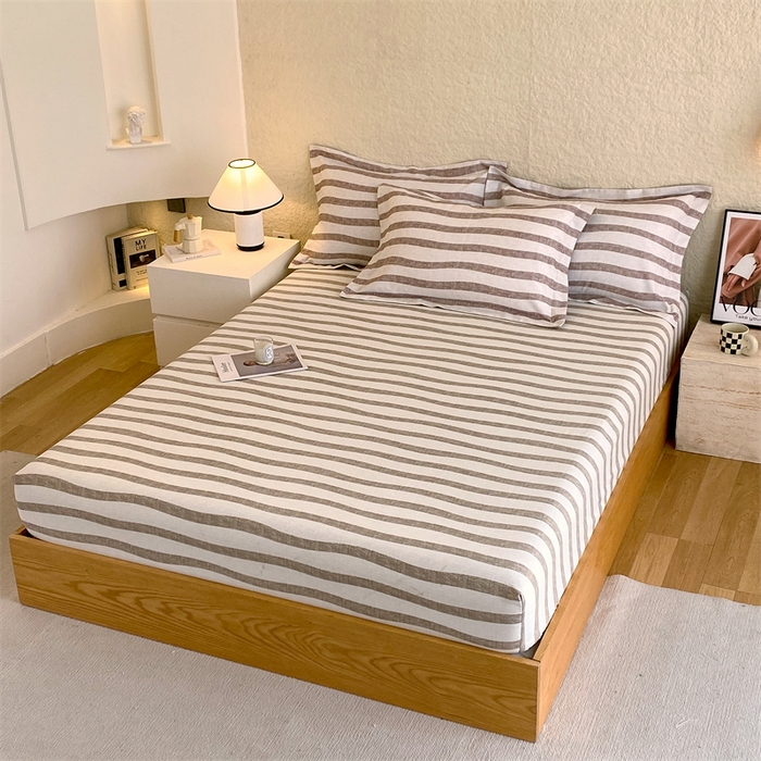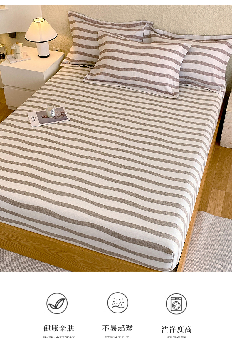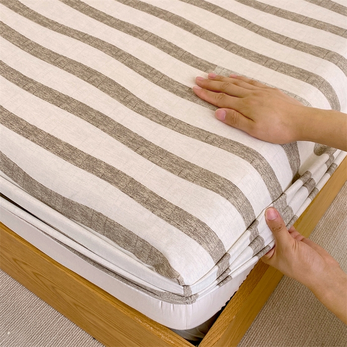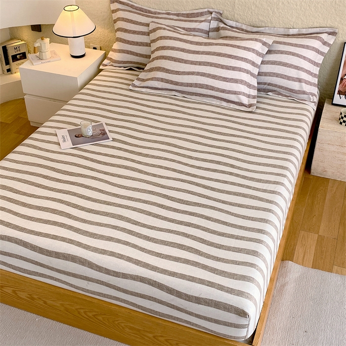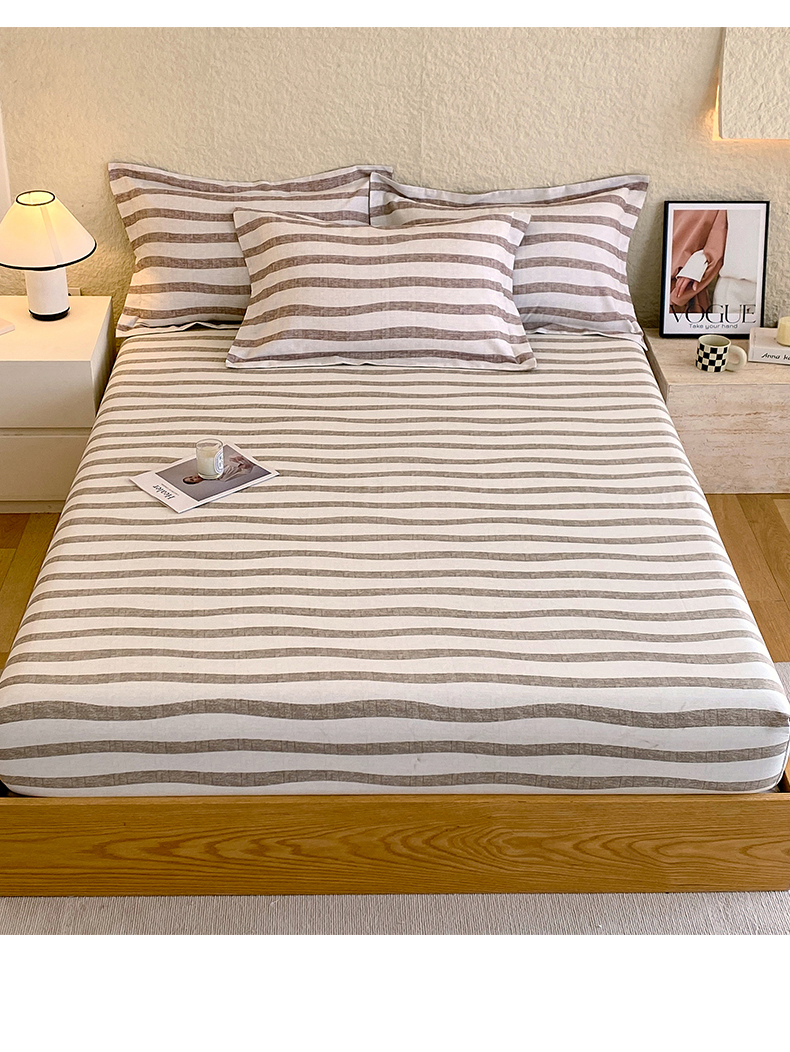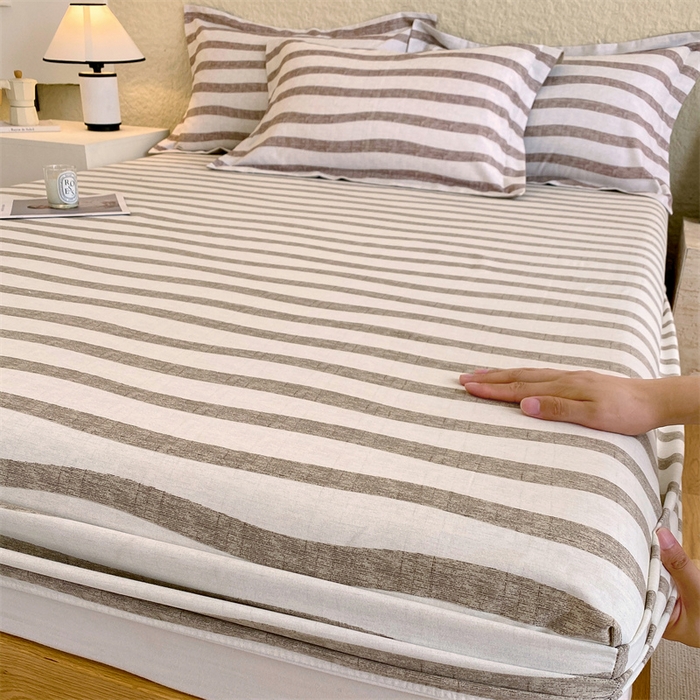 凯磊家纺 2025新款AB版加厚磨毛系列单床笠 曲线条纹-咖