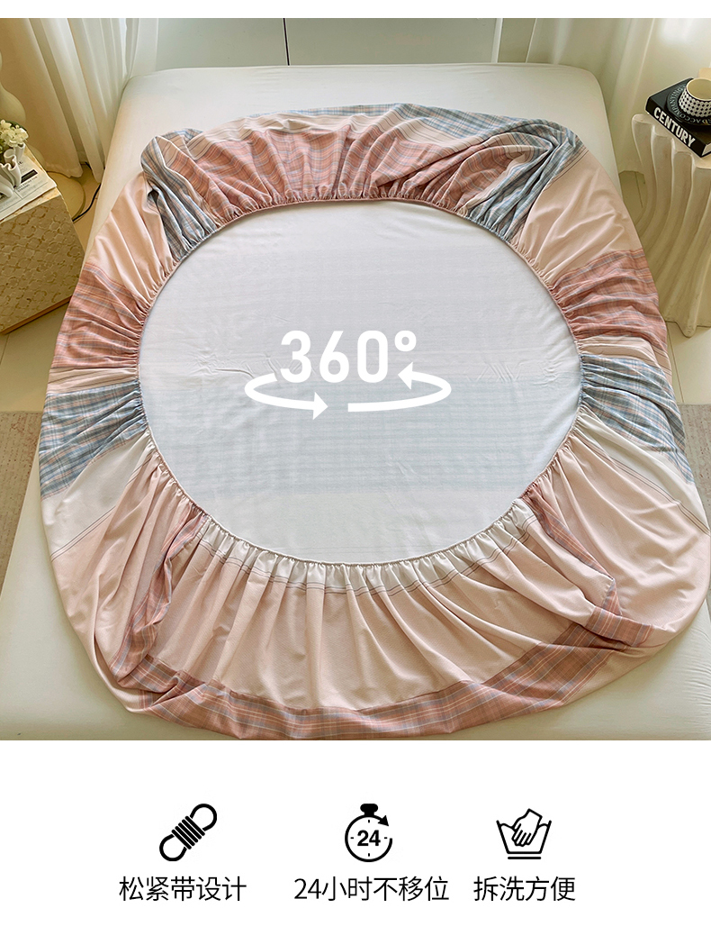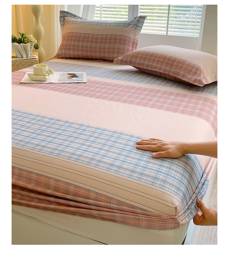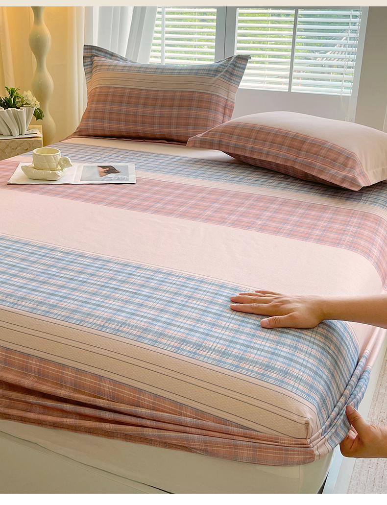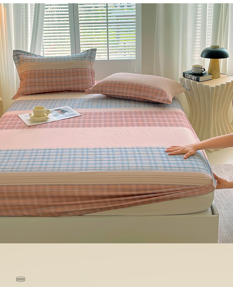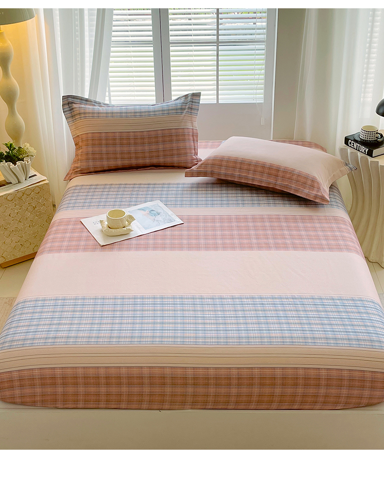凯磊家纺 2025新款AB版加厚磨毛系列单床笠 柔粉线条