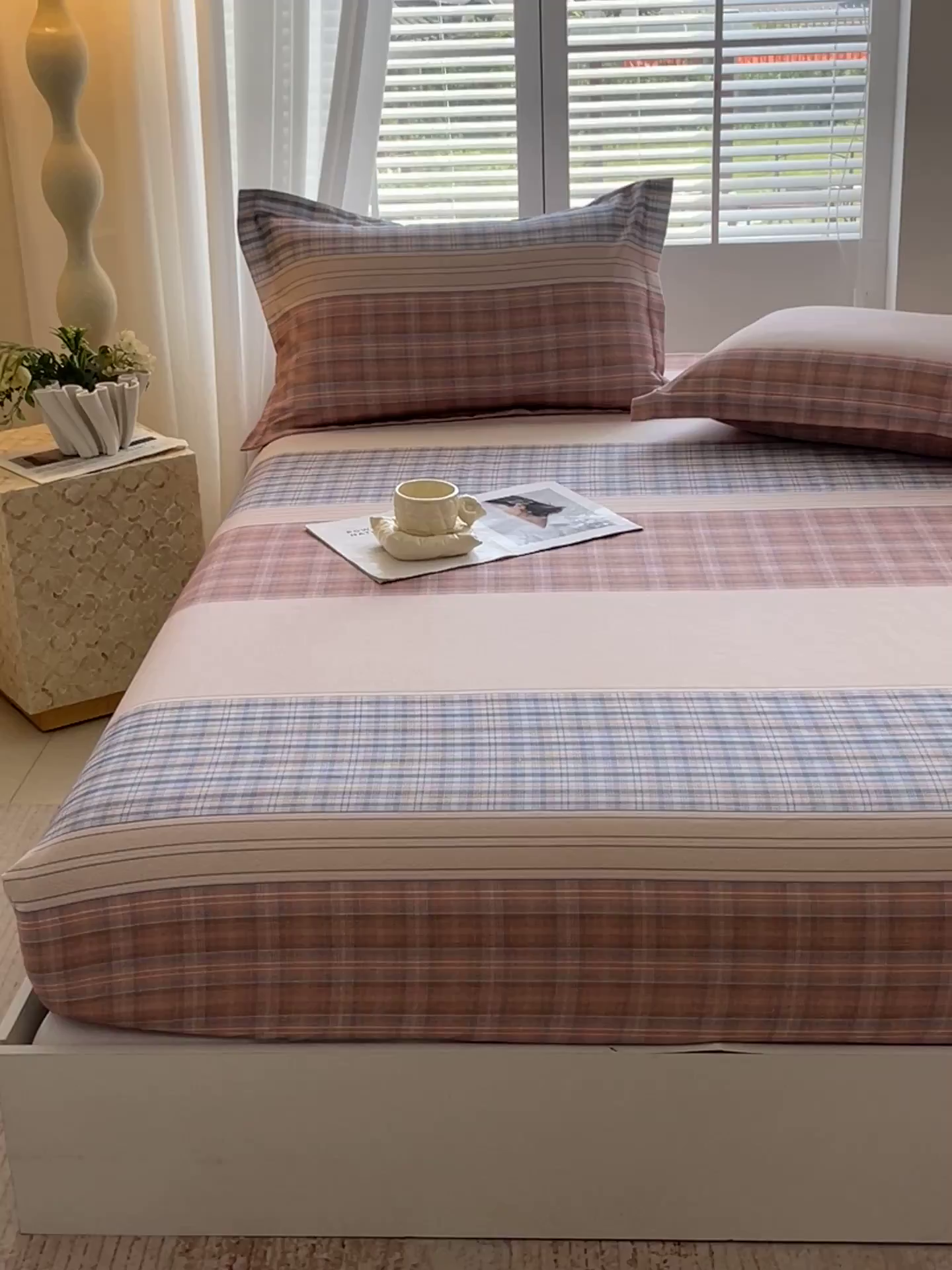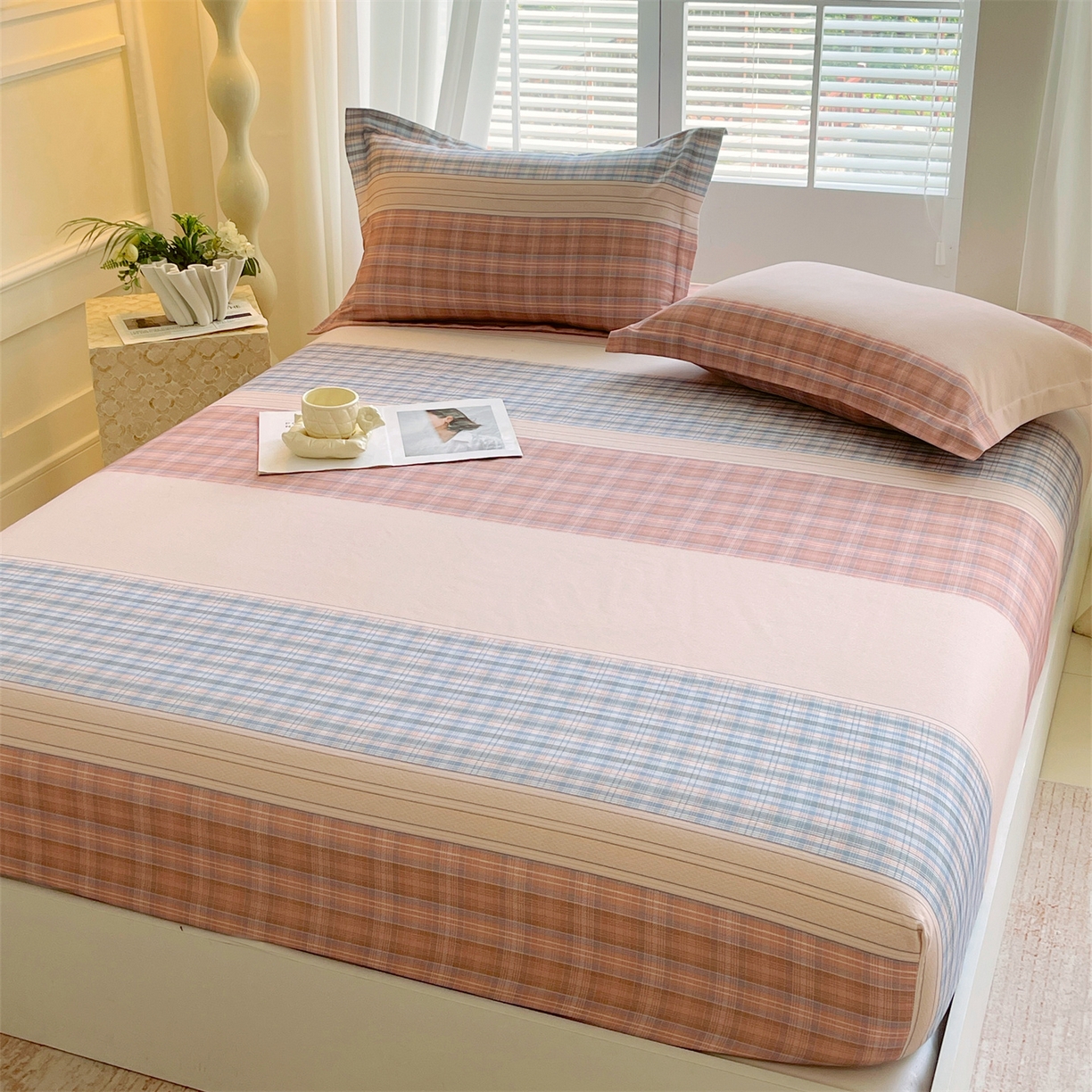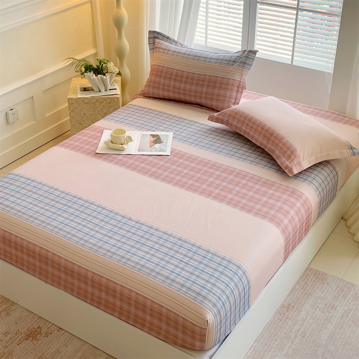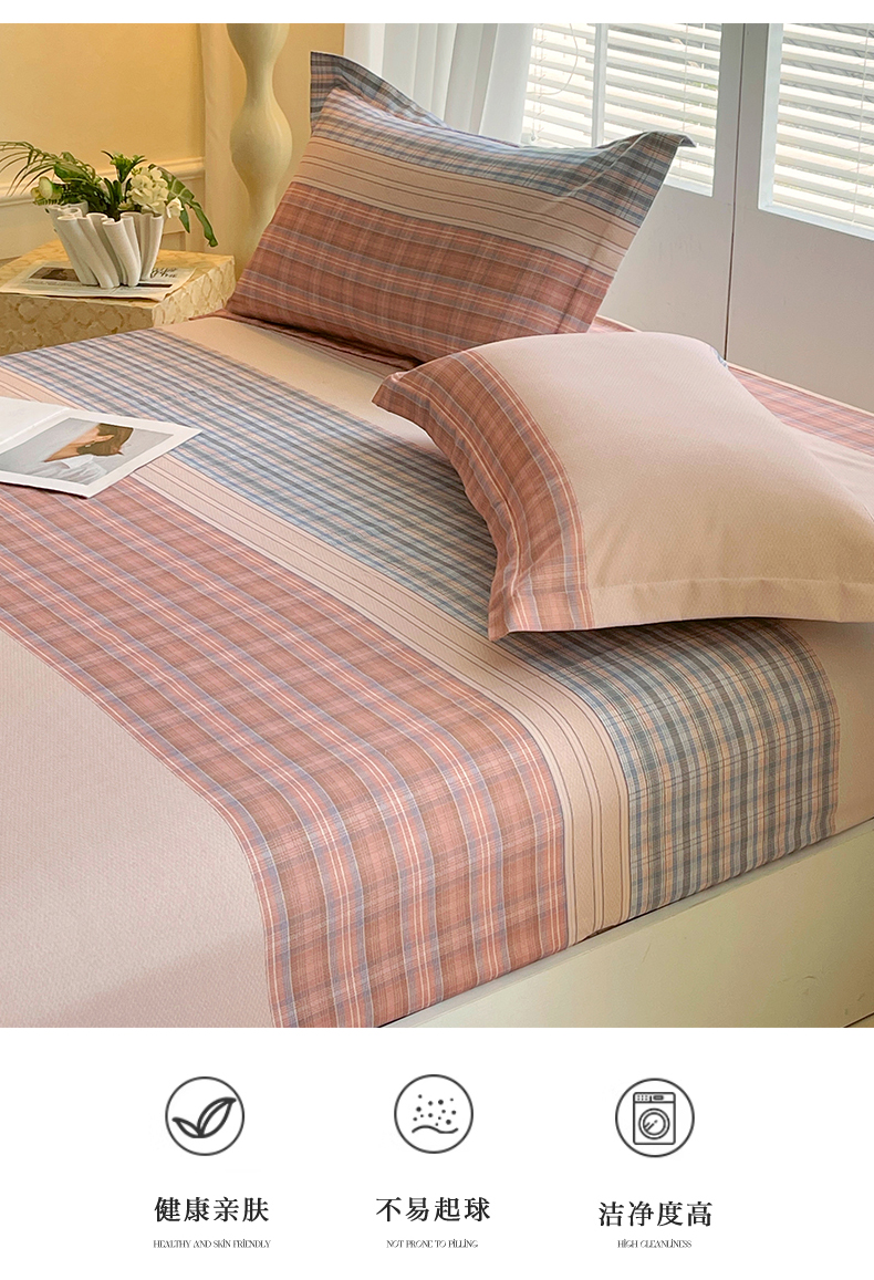 凯磊家纺 2025新款AB版加厚磨毛系列单床笠 柔粉线条