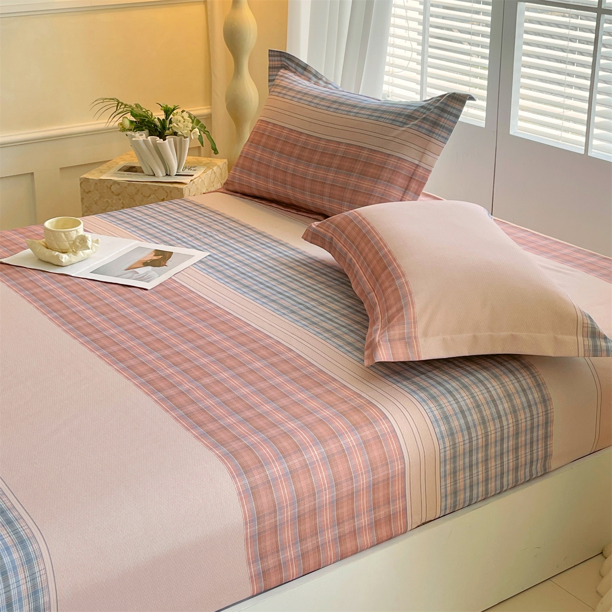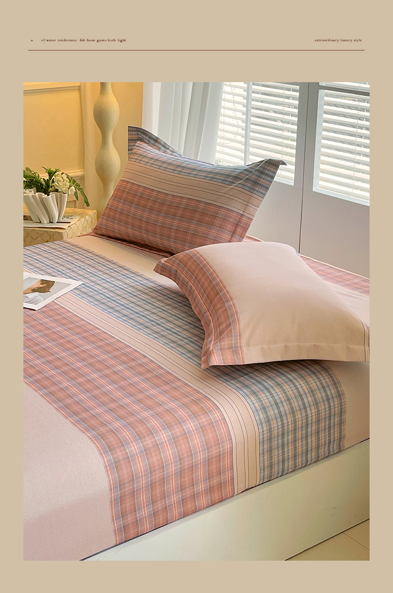 当前位置:凯磊家纺 > 凯磊家纺 2025新款AB版加厚磨毛系列单床笠 柔粉线条