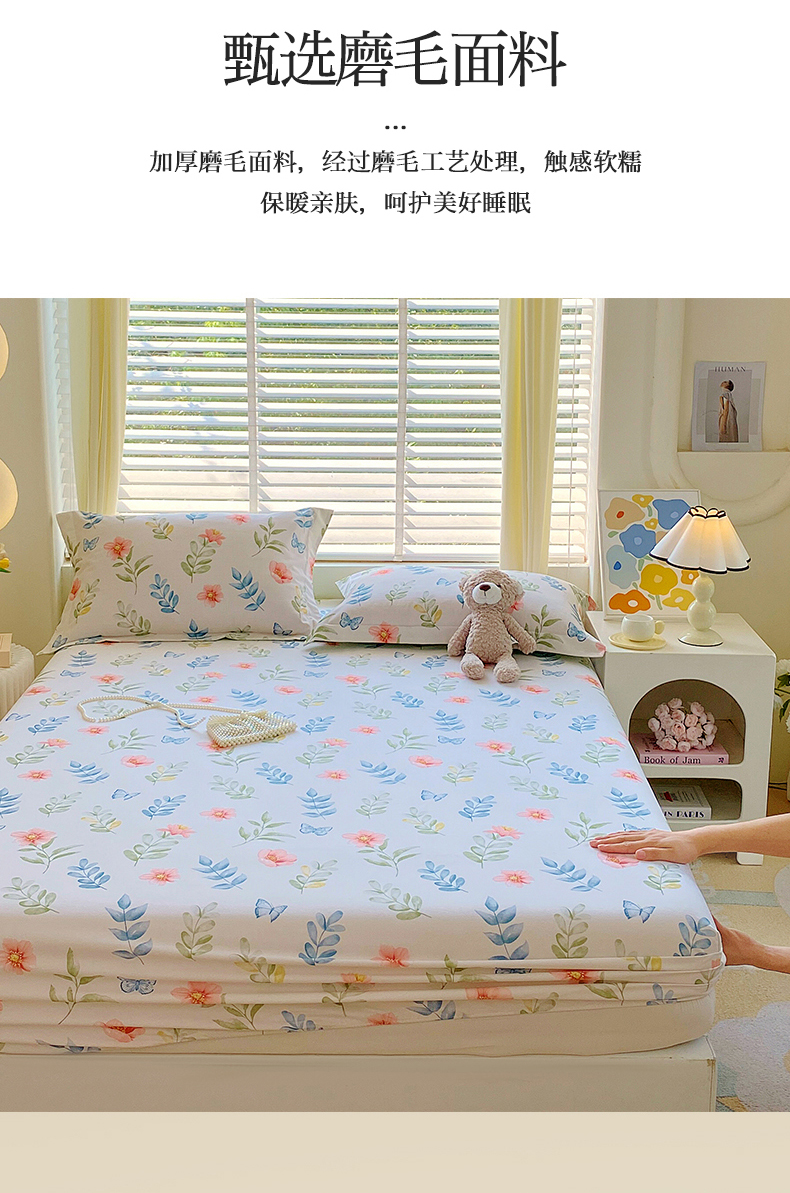 凯磊家纺 2025新款AB版加厚磨毛系列单床笠 甜美春日