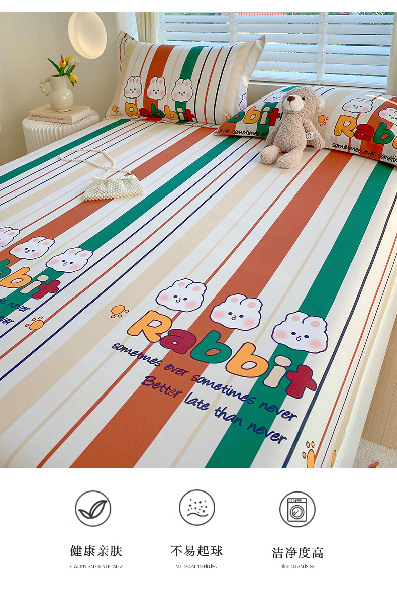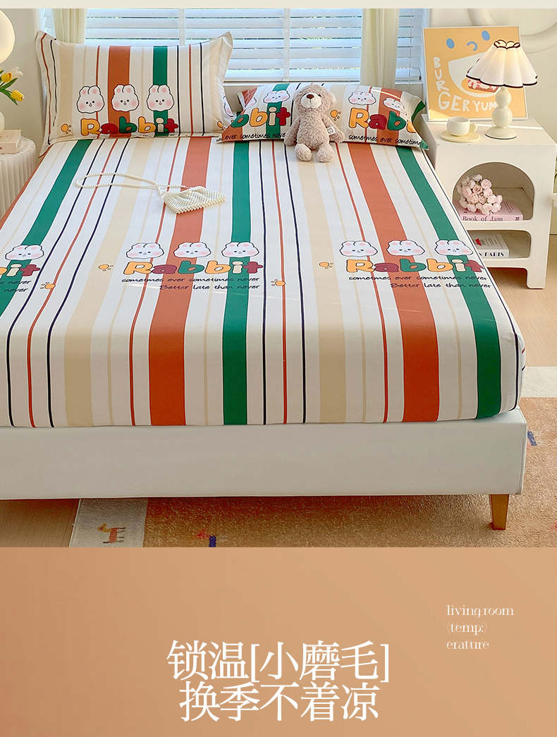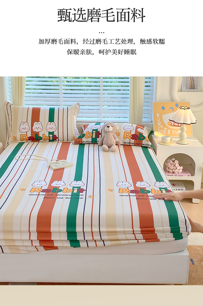 凯磊家纺 2025新款AB版加厚磨毛系列单床笠 小兔派对