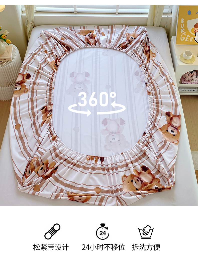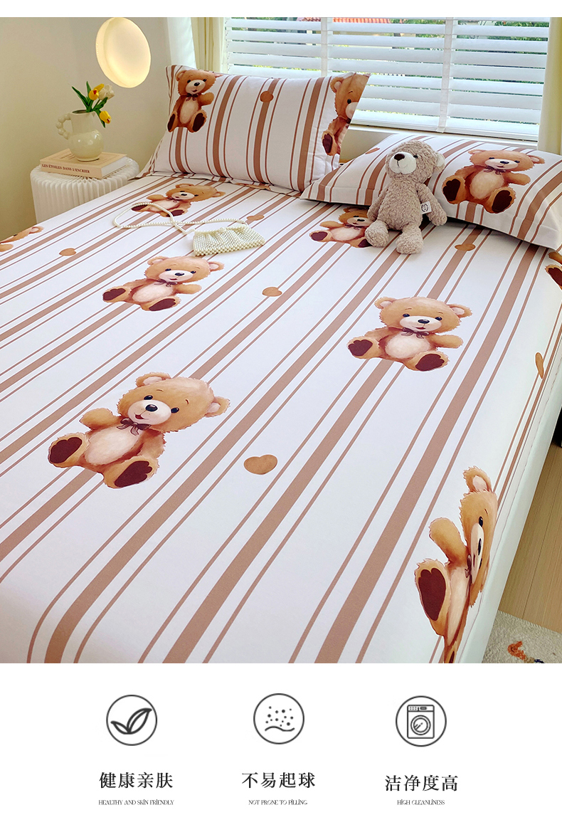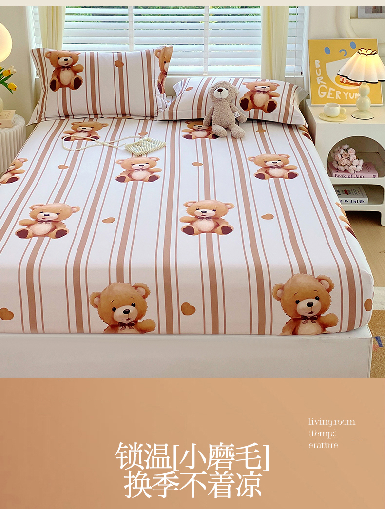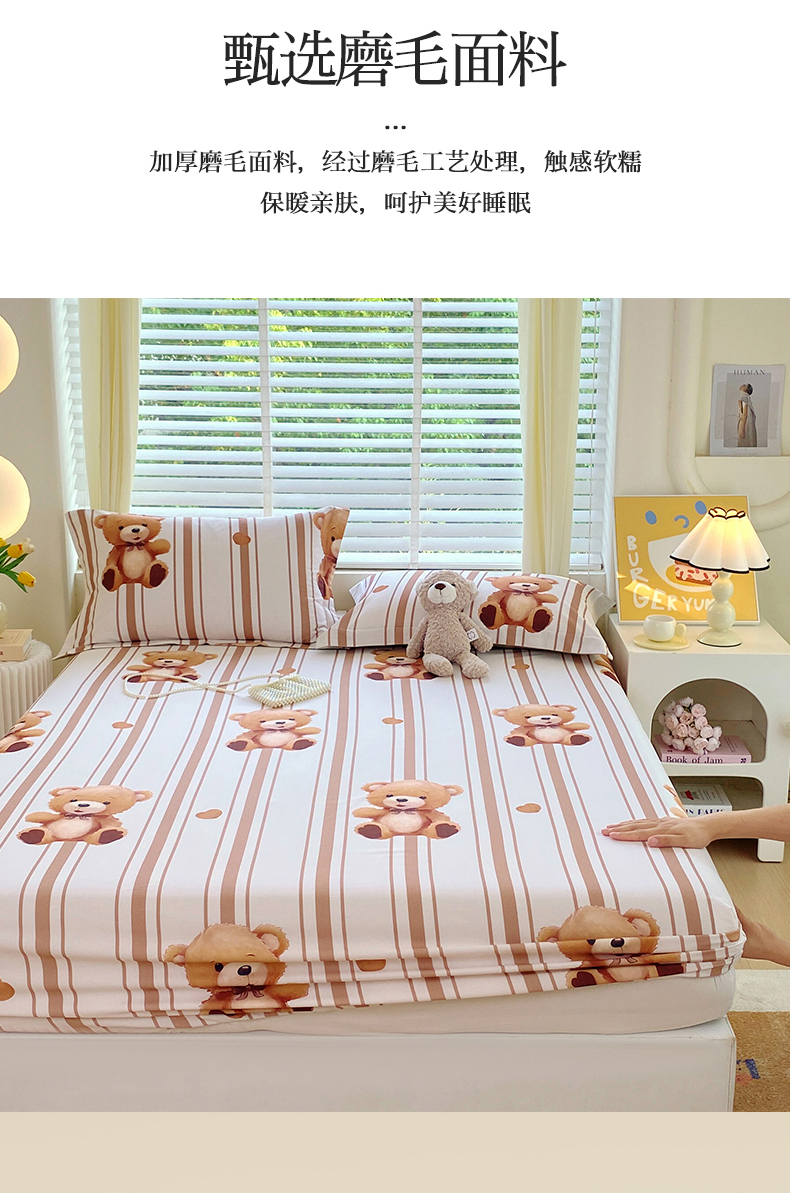 凯磊家纺 2025新款AB版加厚磨毛系列单床笠 小熊安迪
