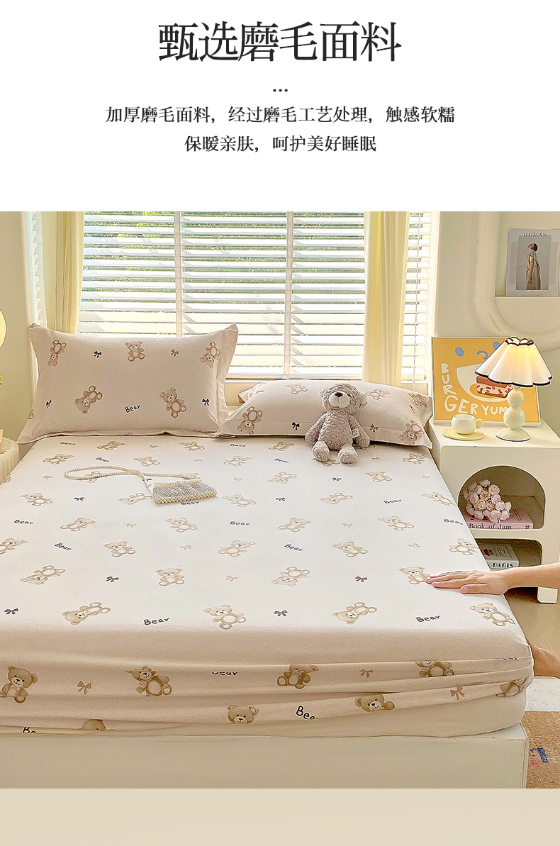 凯磊家纺 2025新款AB版加厚磨毛系列单床笠 小熊童话