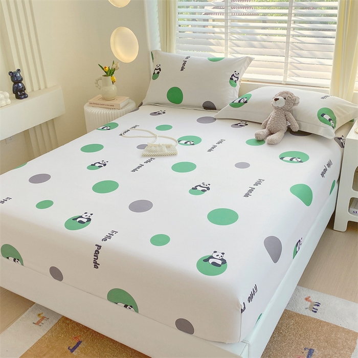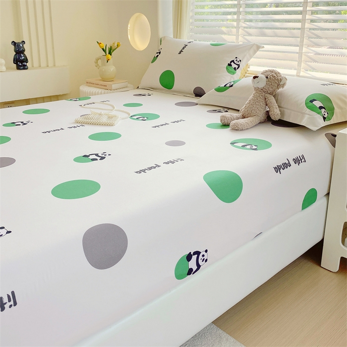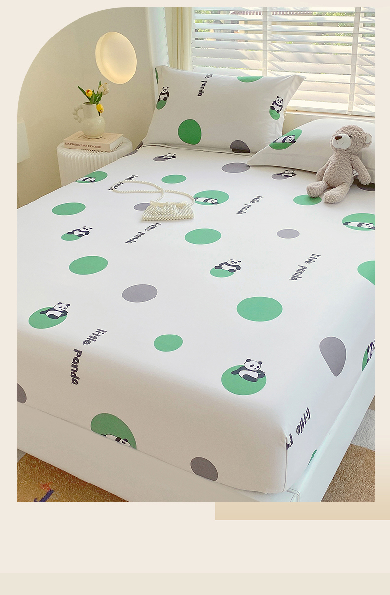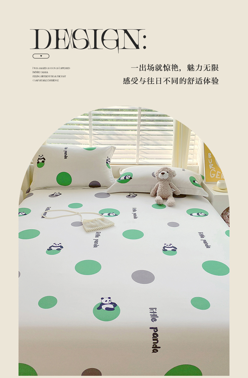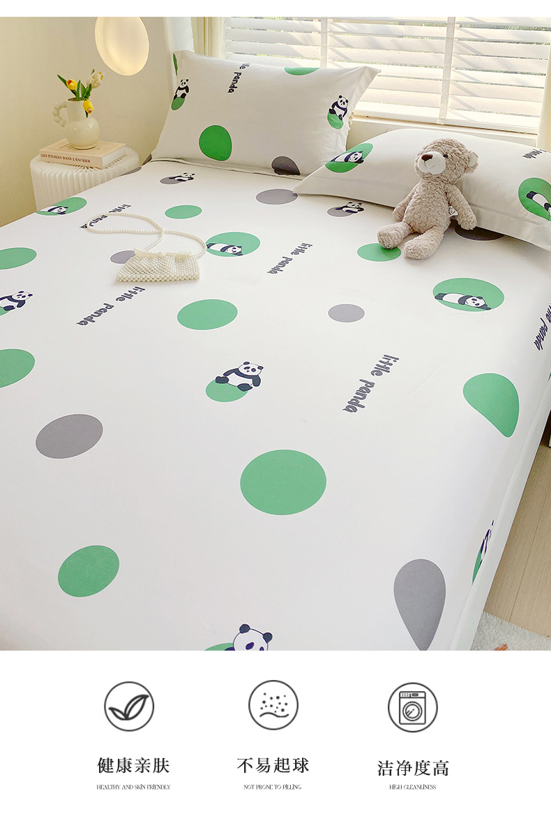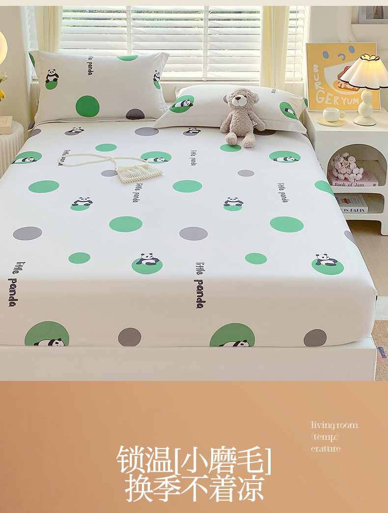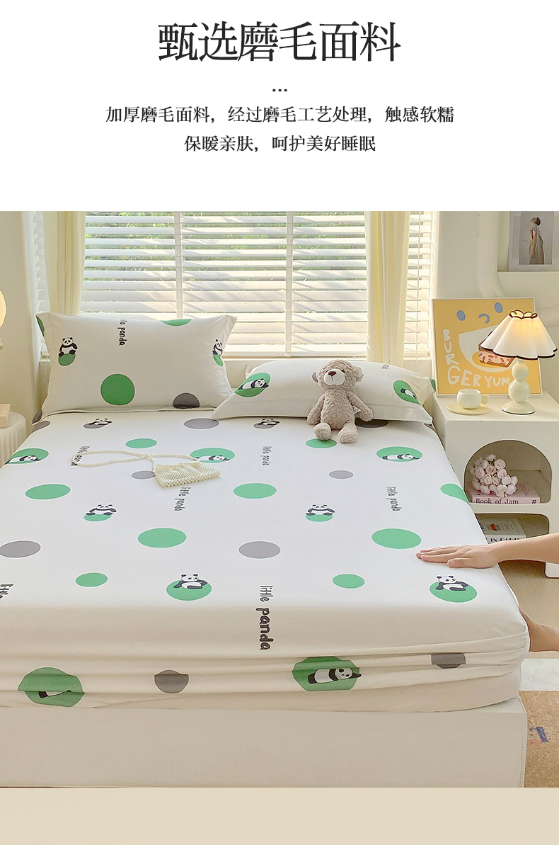 凯磊家纺 2025新款AB版加厚磨毛系列单床笠 熊猫团子-绿