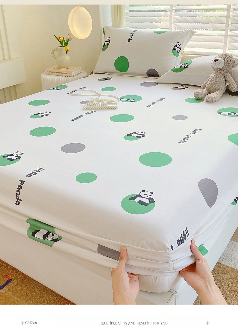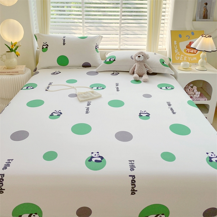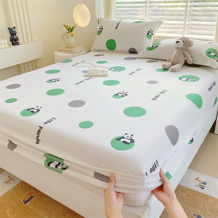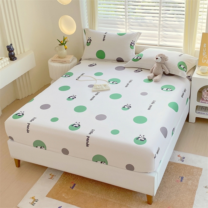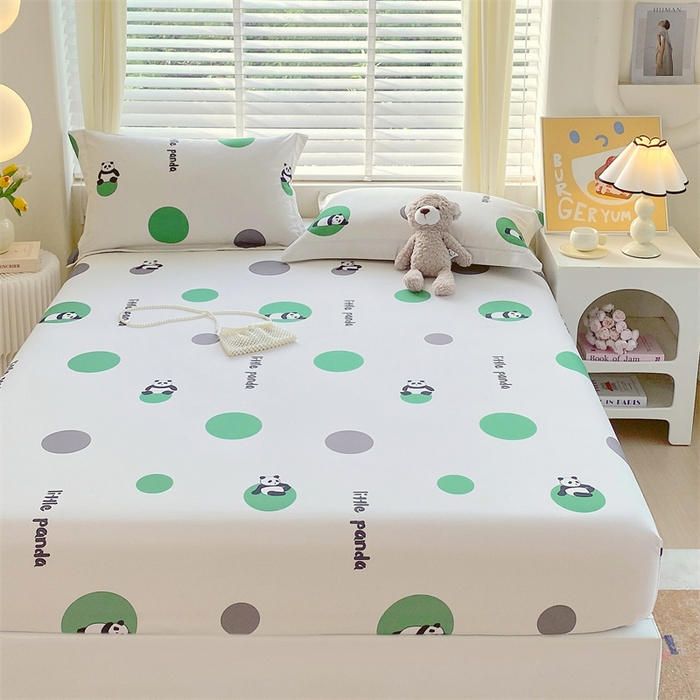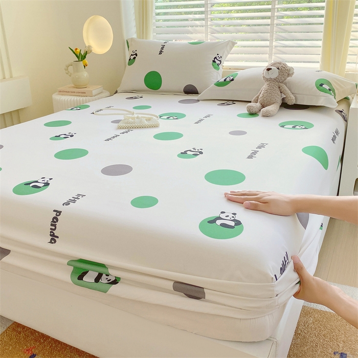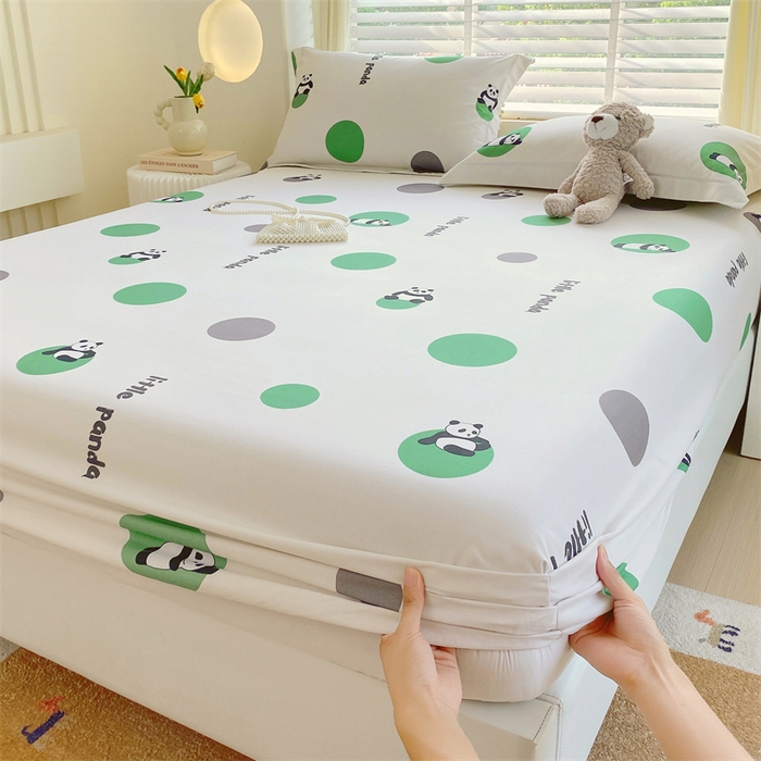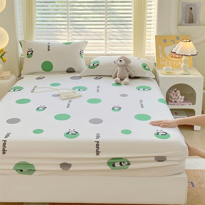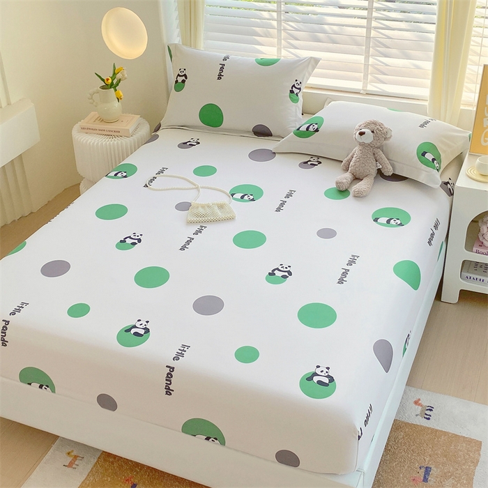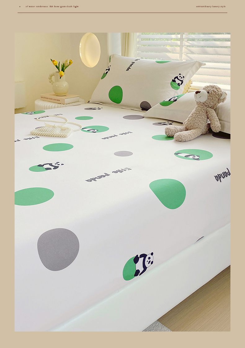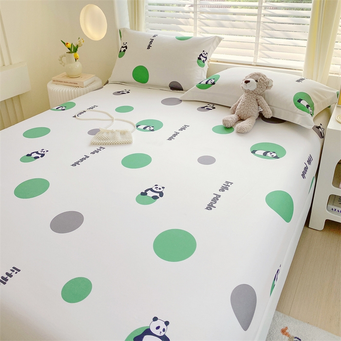 凯磊家纺 2025新款AB版加厚磨毛系列单床笠 熊猫团子-绿