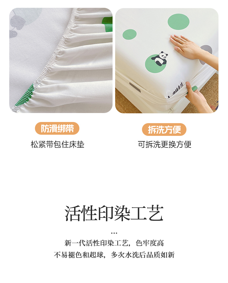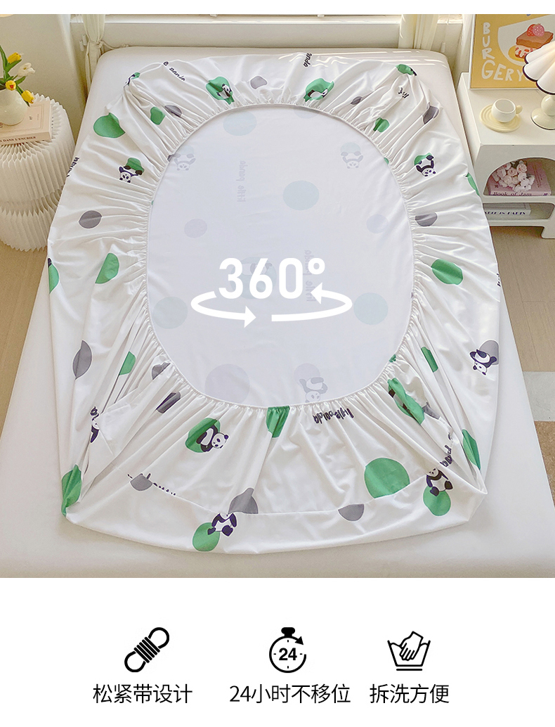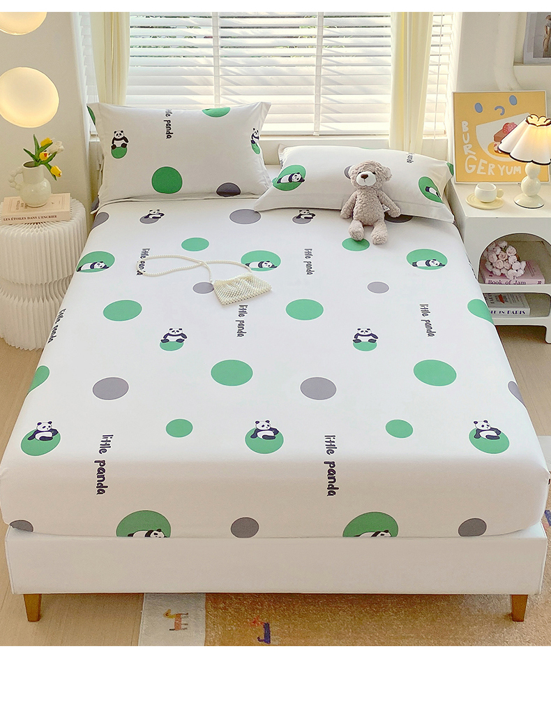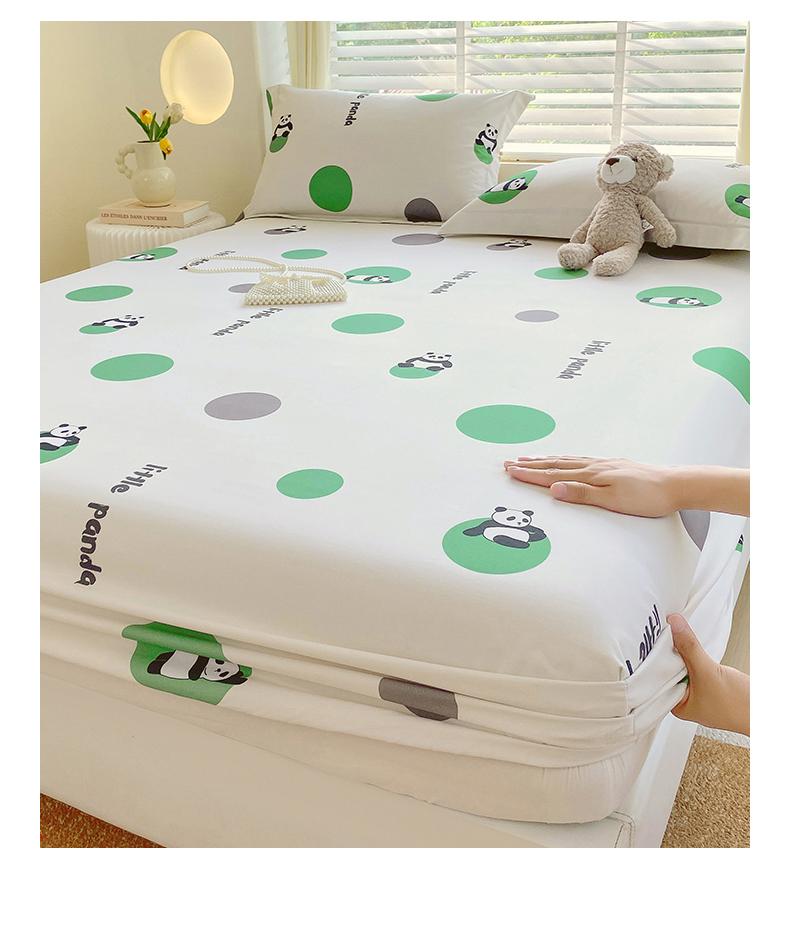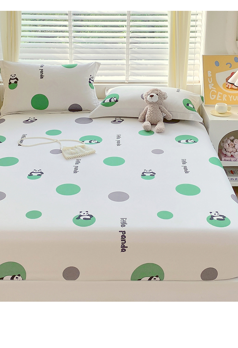 凯磊家纺 - 凯磊家纺 2025新款AB版加厚磨毛系列单床笠 熊猫团子-绿