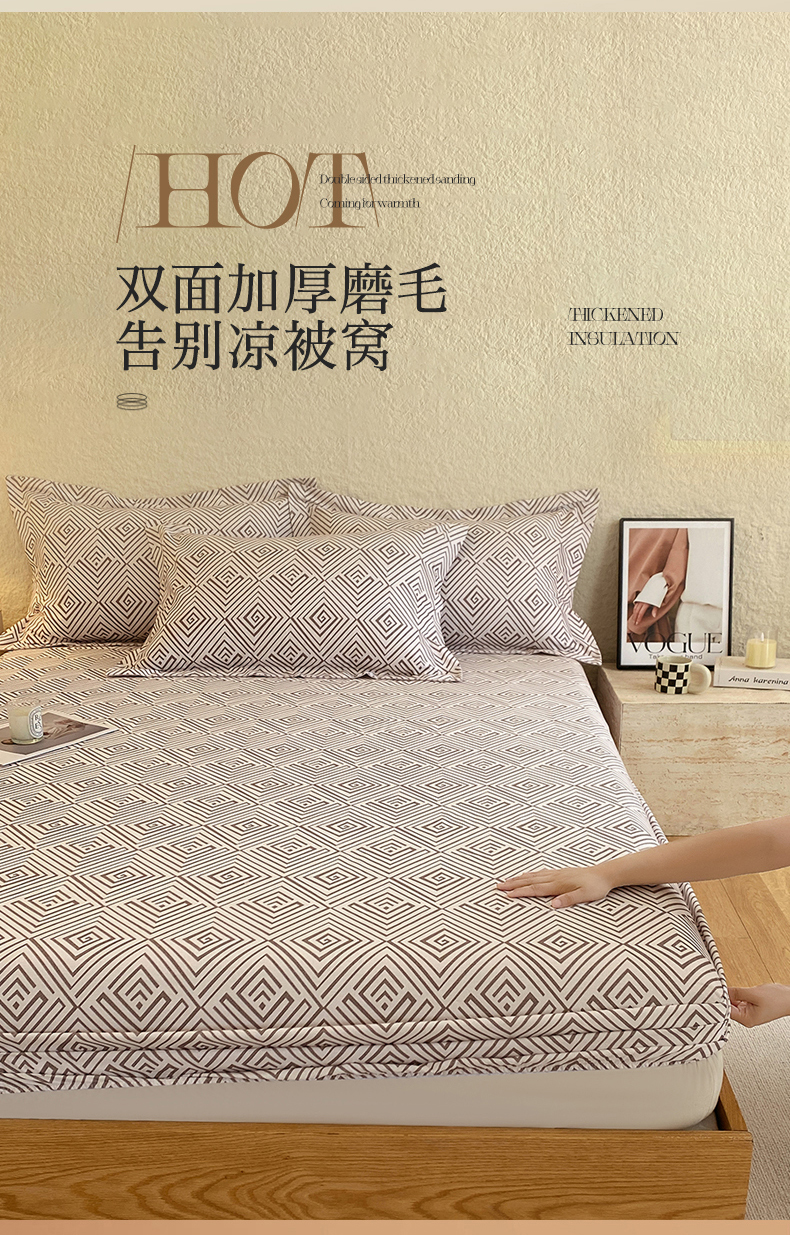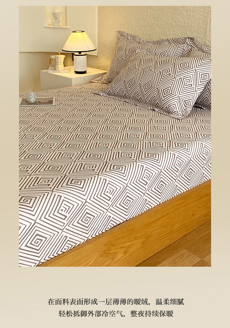 凯磊家纺 2025新款AB版加厚磨毛系列单床笠 艺术生活-咖