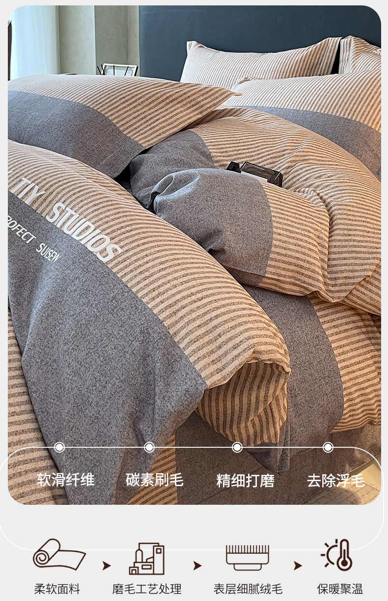 凯磊家纺 2025新款AA版加厚磨毛系列四件套 都市摩卡
