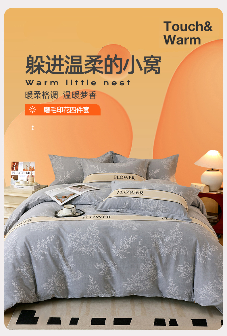 当前位置:凯磊家纺 > 凯磊家纺 2025新款AA版加厚磨毛系列四件套 花语如歌