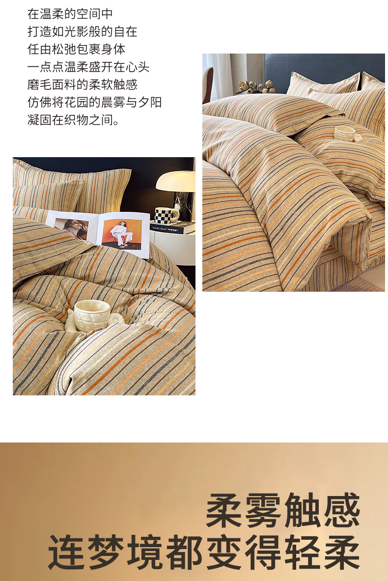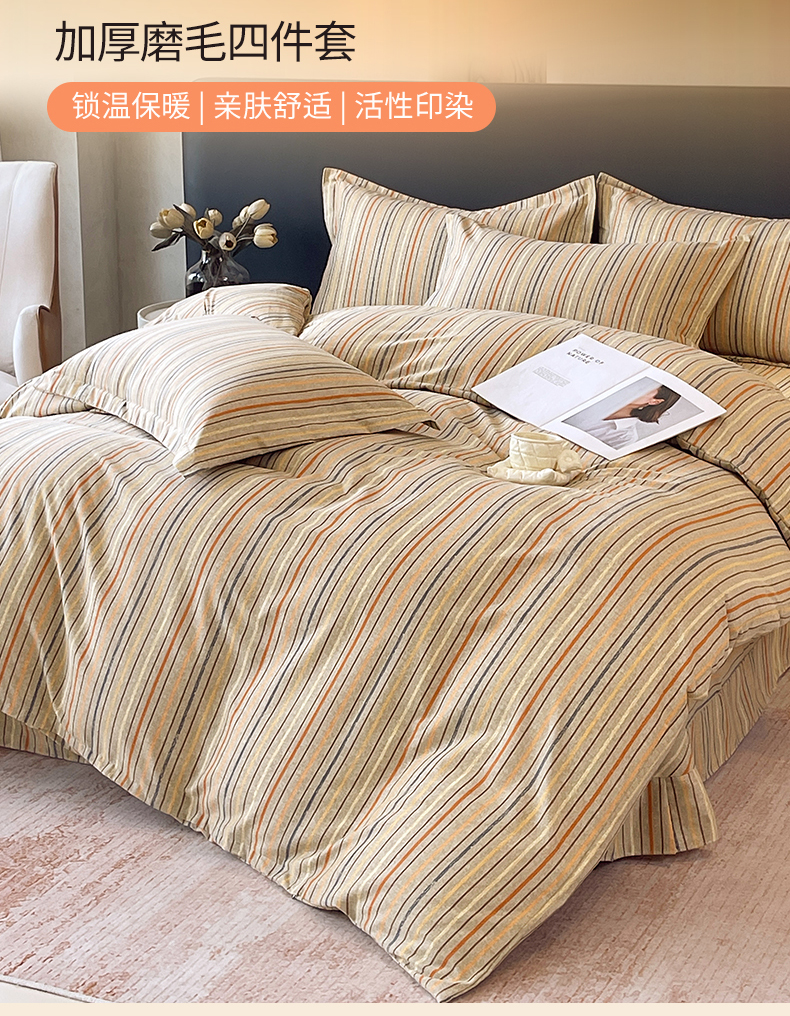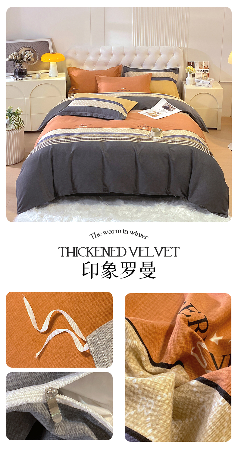 当前位置:凯磊家纺 > 凯磊家纺 2025新款AA版加厚磨毛系列四件套 暖橘