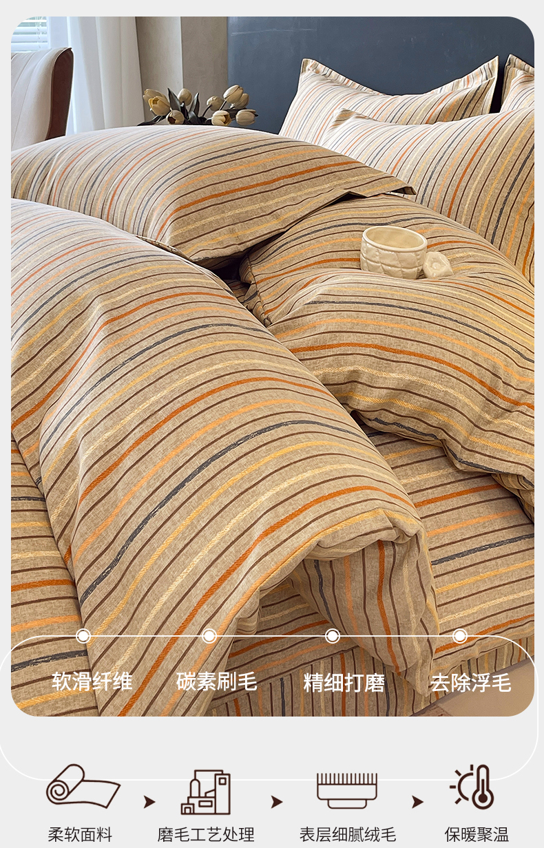 凯磊家纺 - 凯磊家纺 2025新款AA版加厚磨毛系列四件套 暖橘