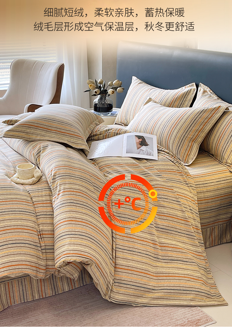 凯磊家纺 2025新款AA版加厚磨毛系列四件套 暖橘