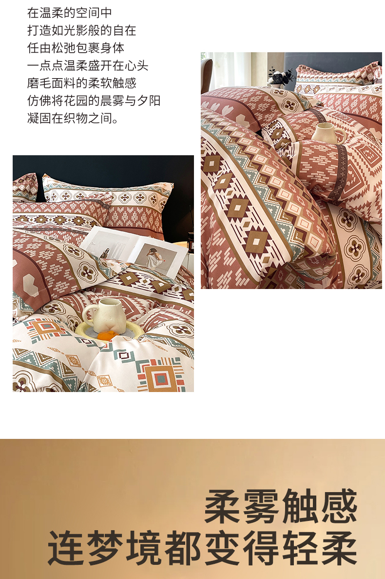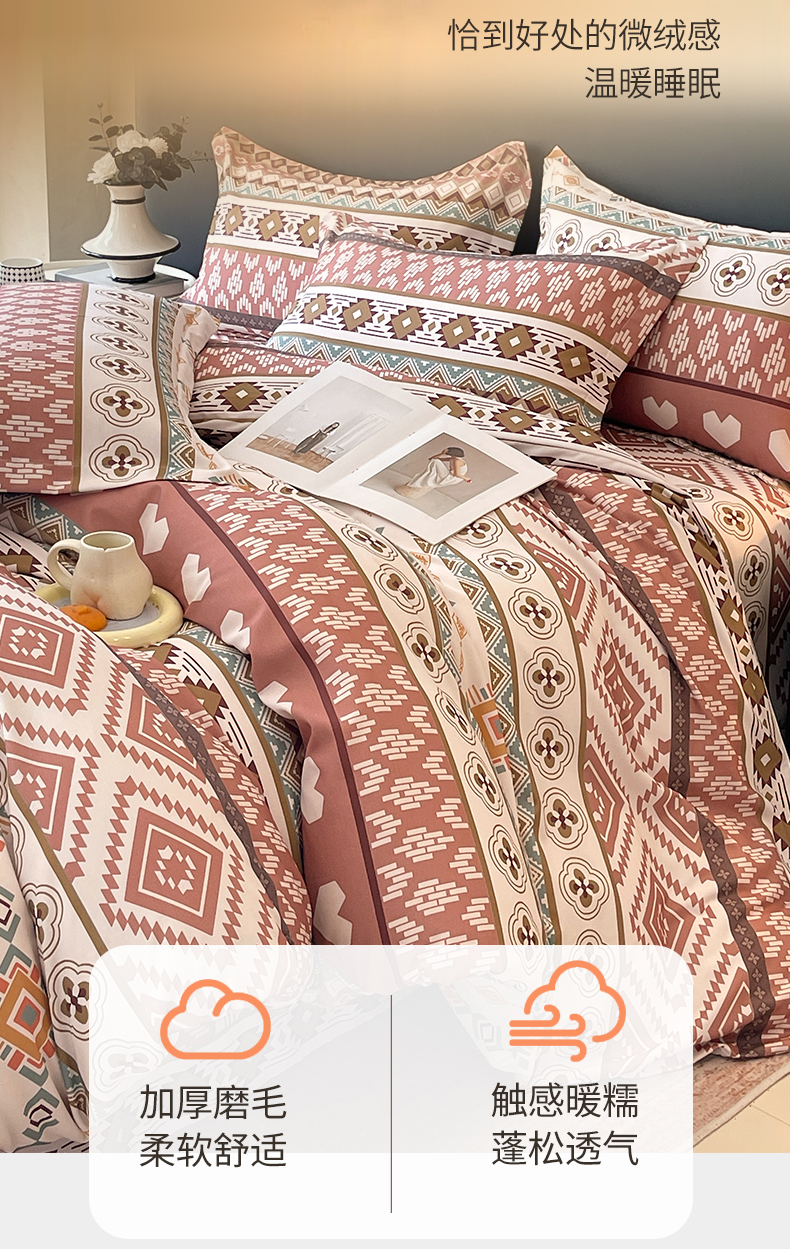 当前位置:凯磊家纺 > 凯磊家纺 2025新款AA版加厚磨毛系列四件套 慕恋