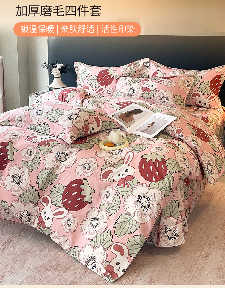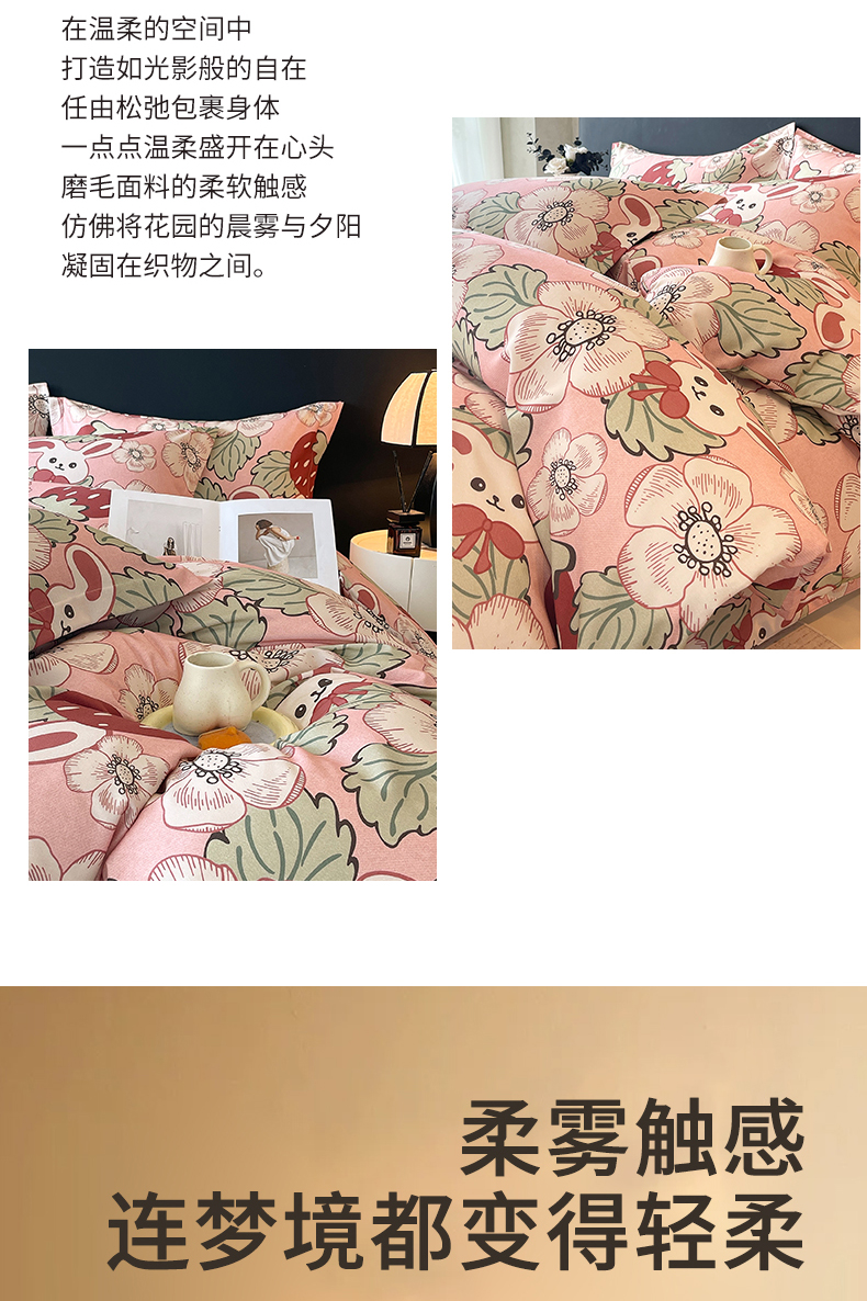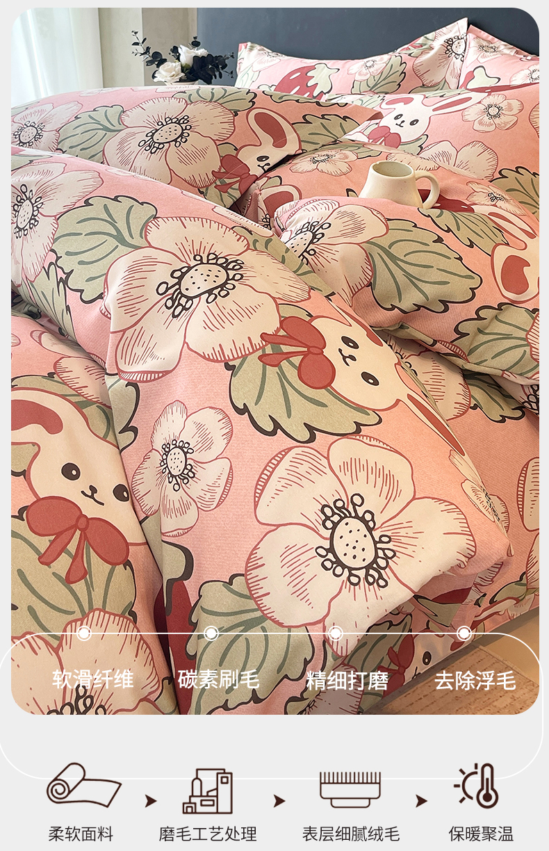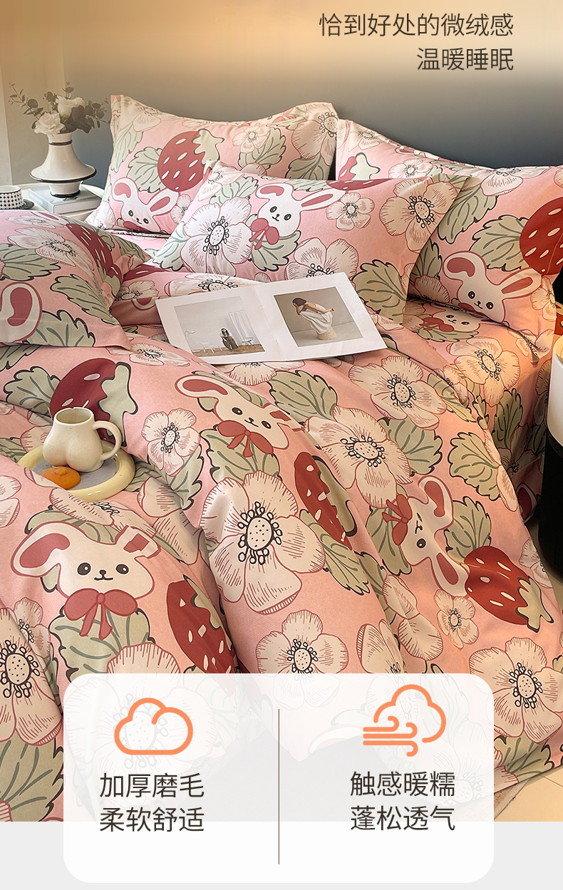 当前位置:凯磊家纺 > 凯磊家纺 2025新款AA版加厚磨毛系列四件套 兔宝贝-粉