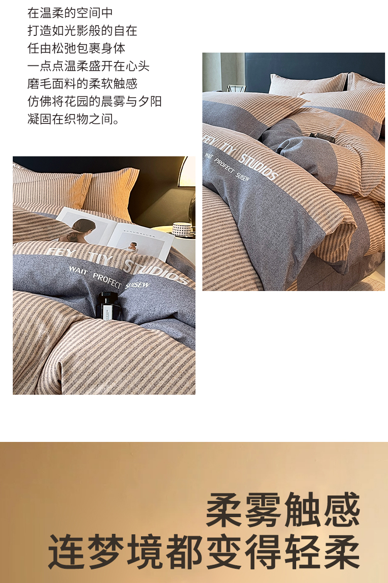 当前位置:凯磊家纺 > 凯磊家纺 2025新款AA版加厚磨毛系列四件套 印象罗曼