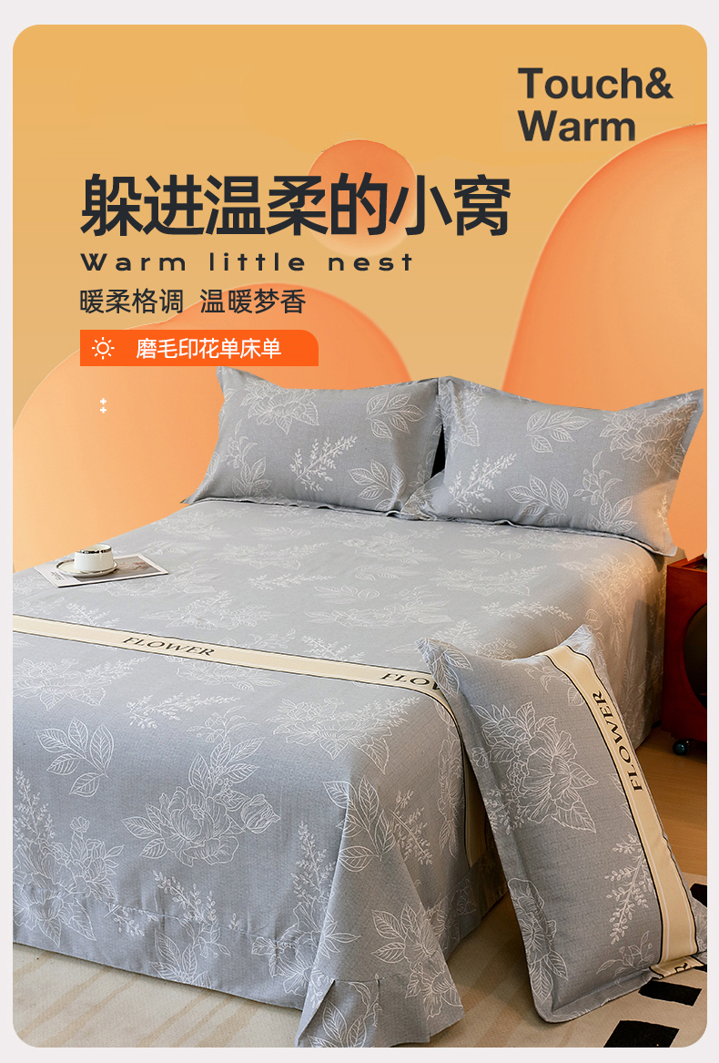 > 凯磊家纺 2025新款AA版加厚磨毛系列单床单 花语如歌