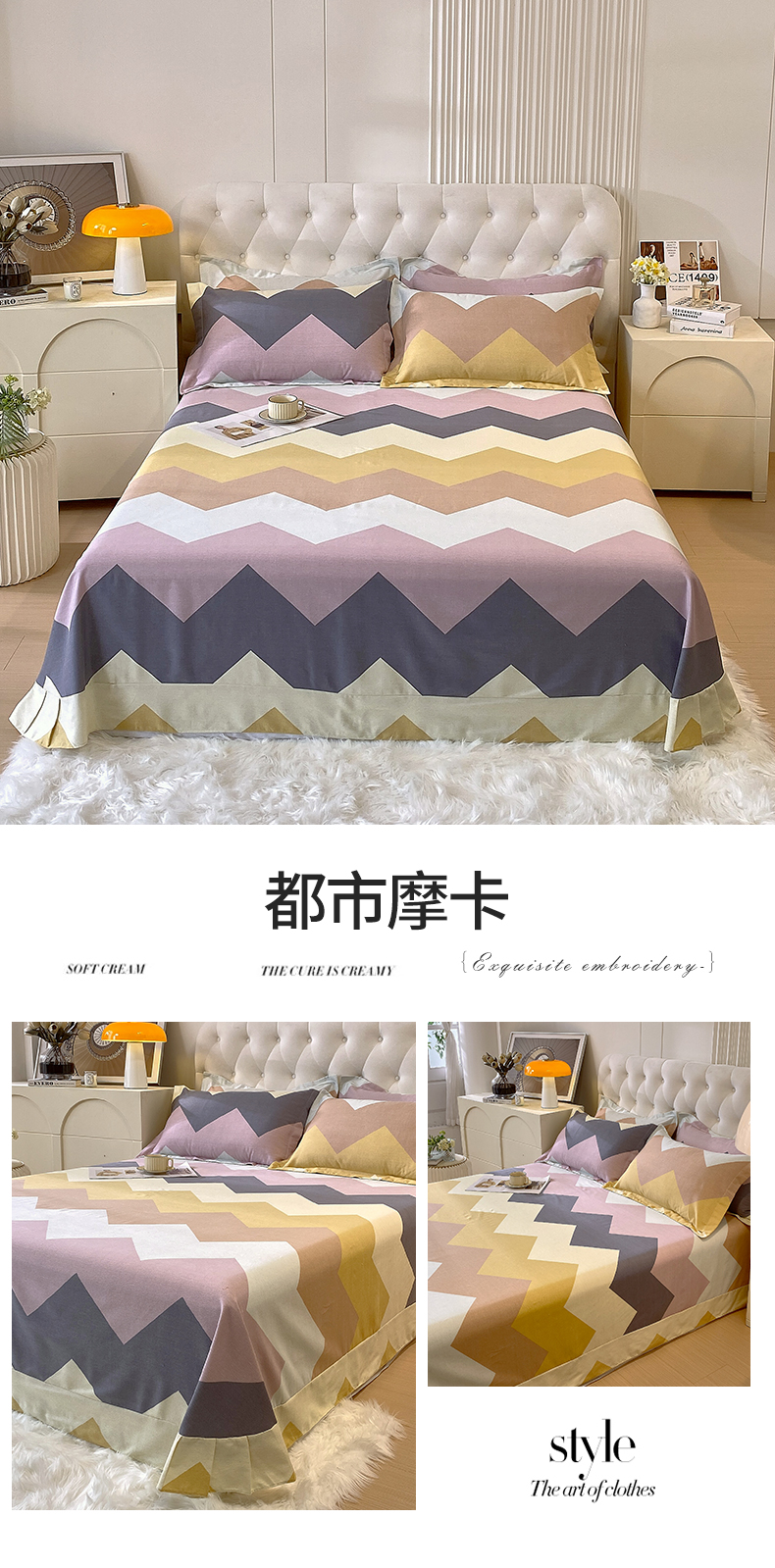 简约风长绒棉单床笠