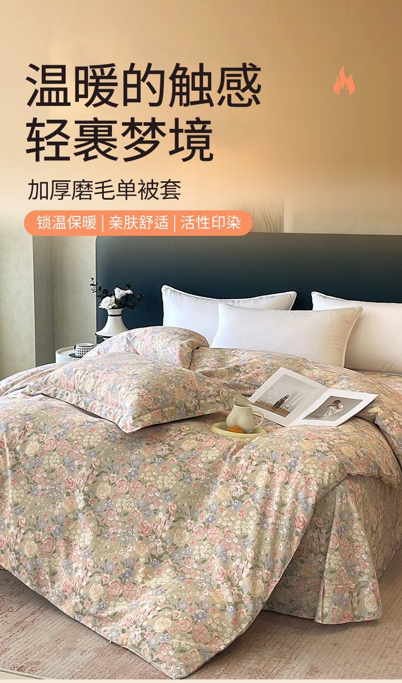 当前位置:凯磊家纺 > 凯磊家纺 2025新款AA版加厚磨毛系列单被套 弥漫花香