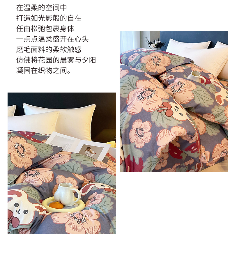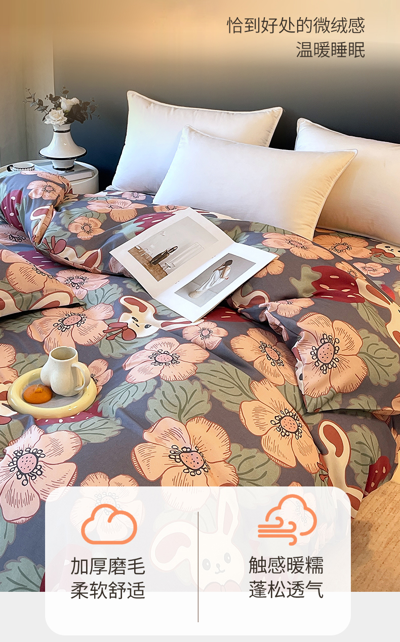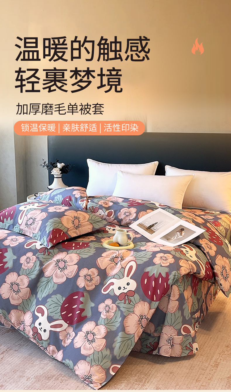 当前位置:凯磊家纺 > 凯磊家纺 2025新款AA版加厚磨毛系列单被套 兔宝贝-灰