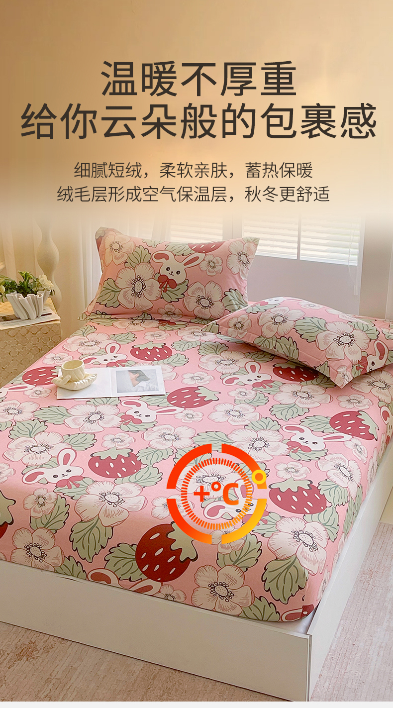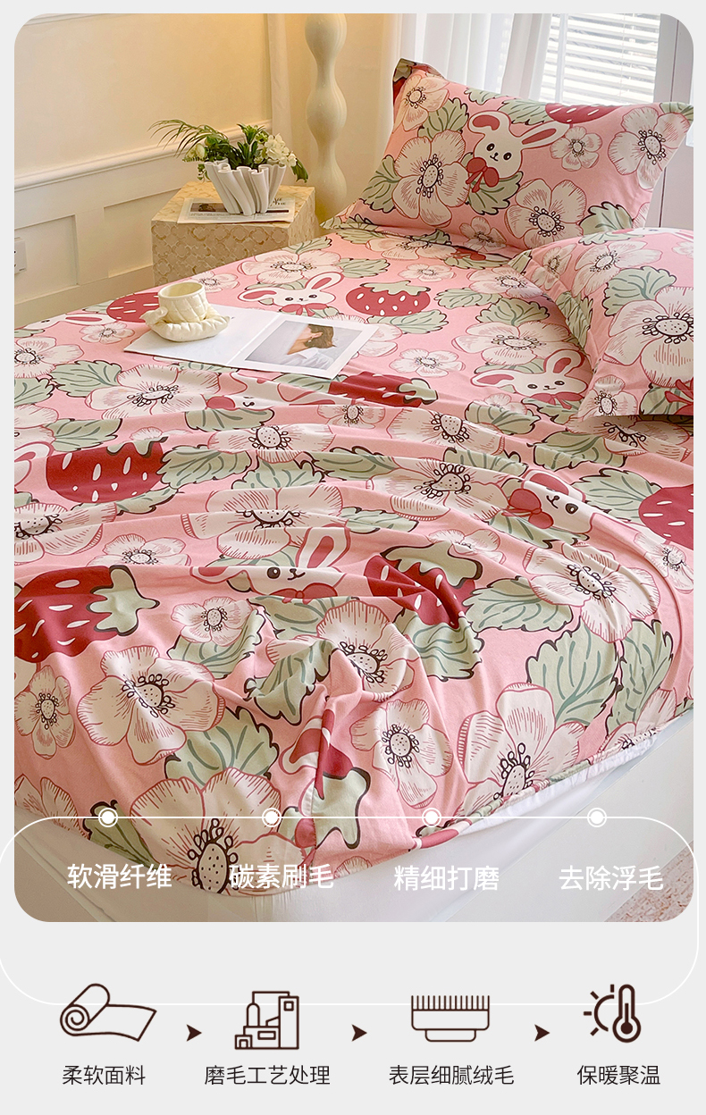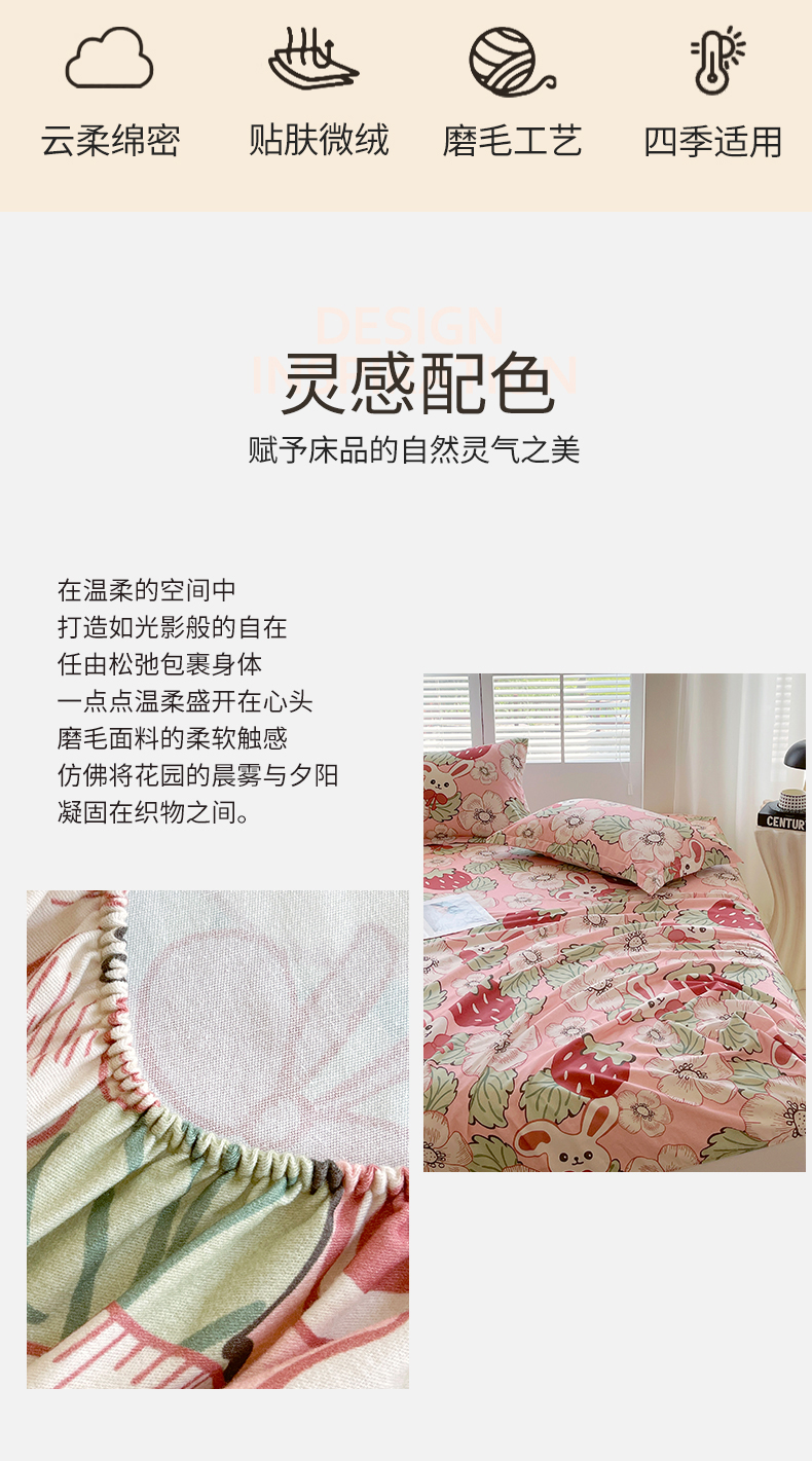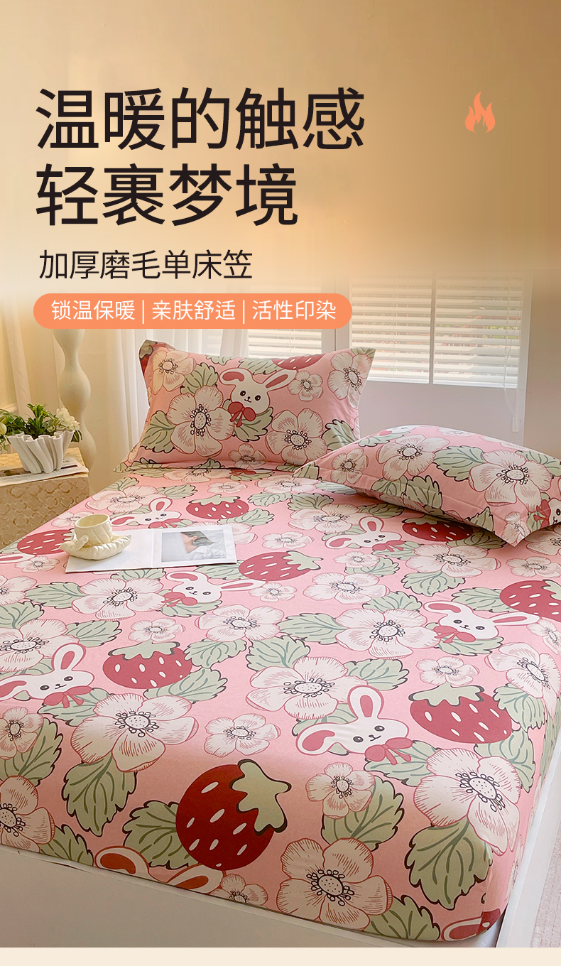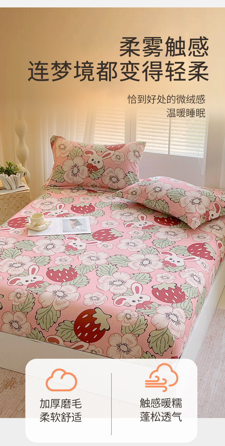 凯磊家纺 2025新款AA版加厚磨毛系列单床笠 兔宝贝-粉