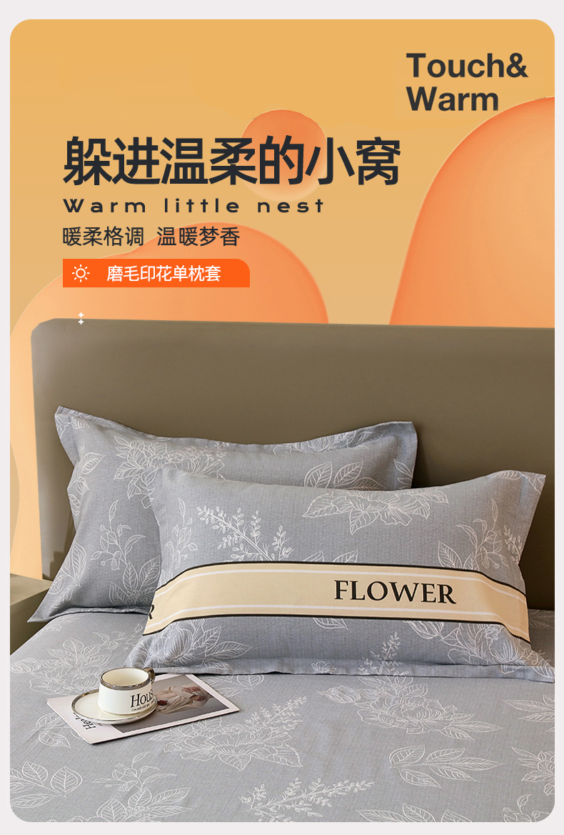 凯磊家纺 2025新款AA版加厚磨毛系列单枕套 花语如歌