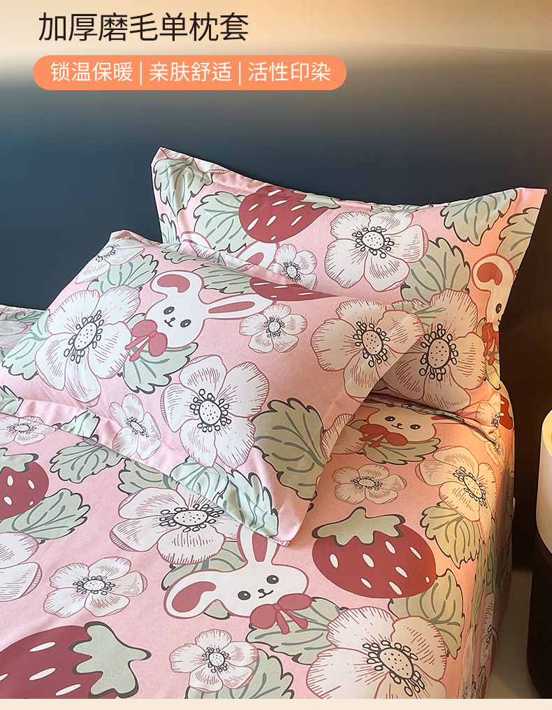 凯磊家纺 2025新款AA版加厚磨毛系列单枕套 兔宝贝-粉