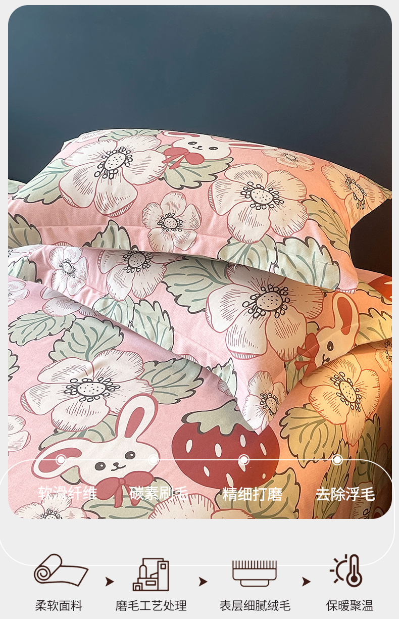凯磊家纺 - 凯磊家纺 2025新款AA版加厚磨毛系列单枕套 兔宝贝-粉