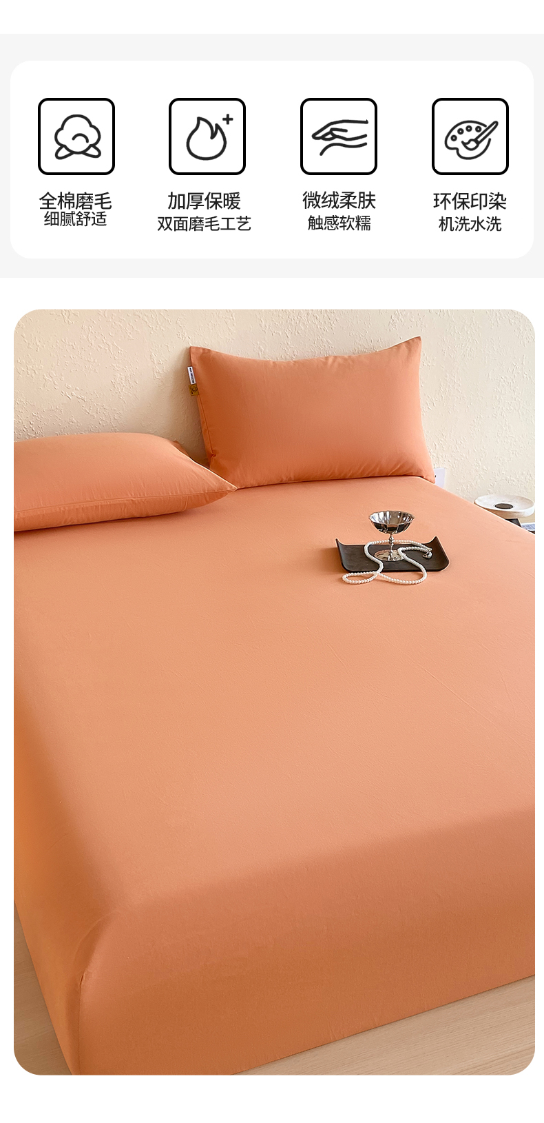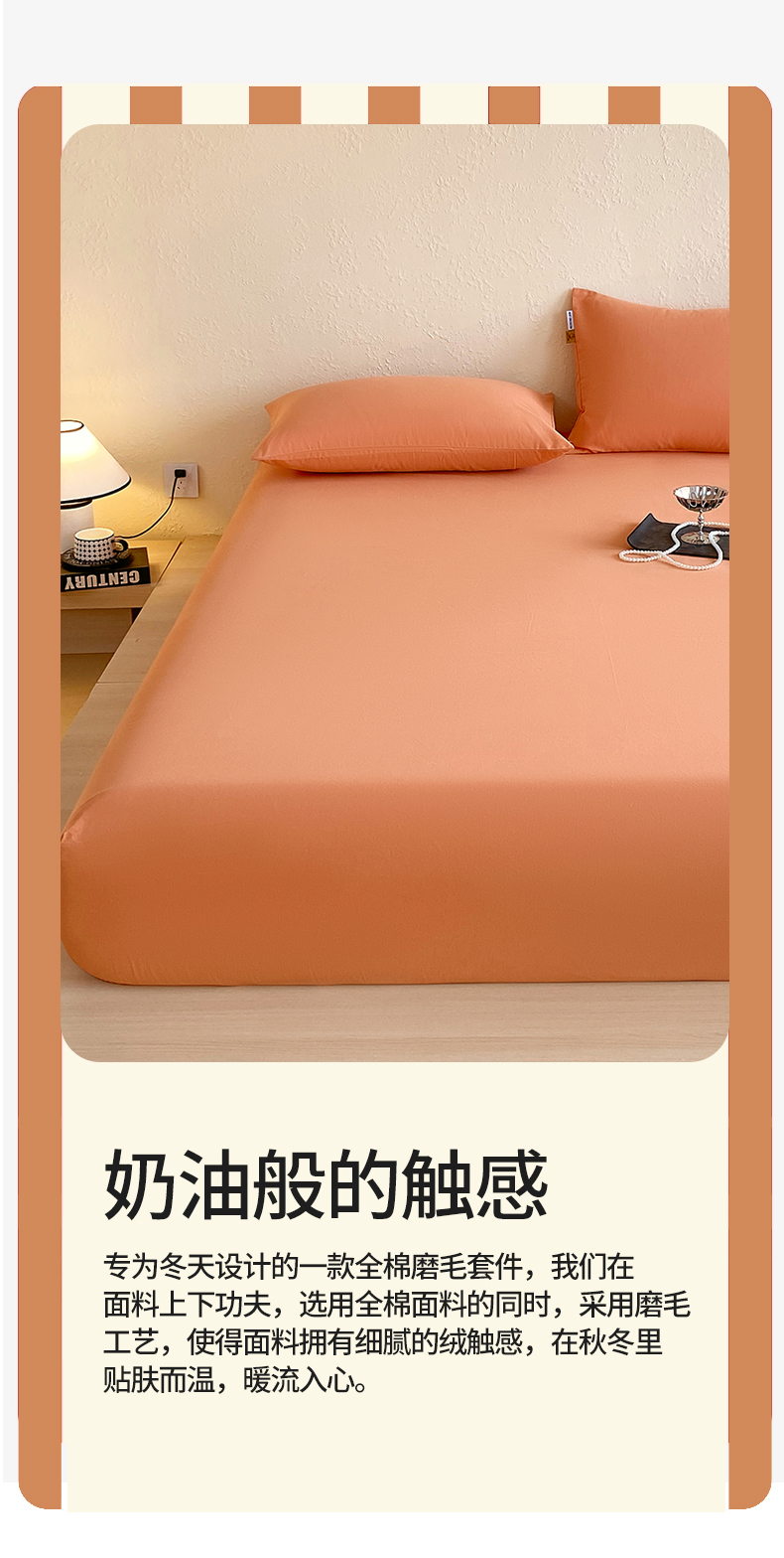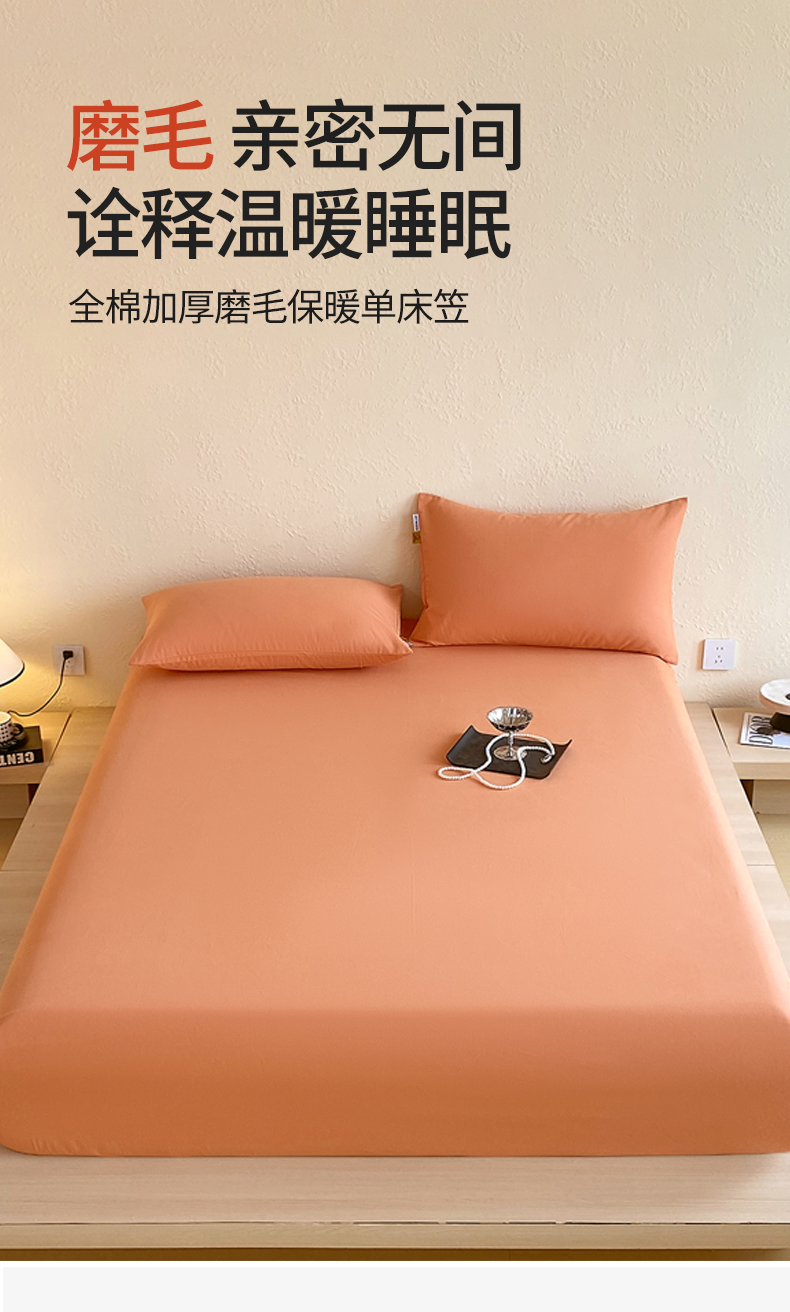 凯磊家纺 - 凯磊家纺 2025新款加厚磨毛纯色系列床笠 爱玛桔