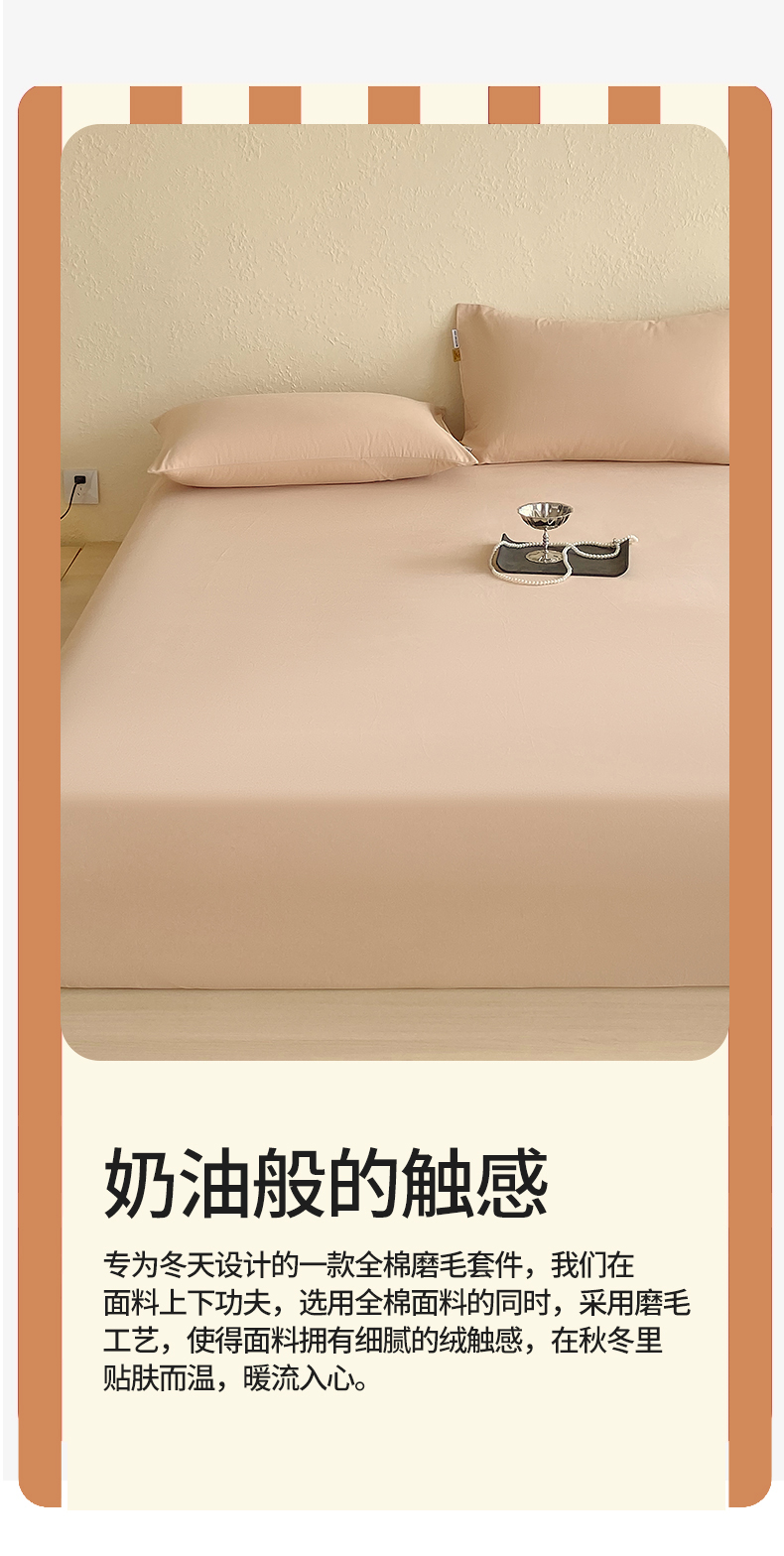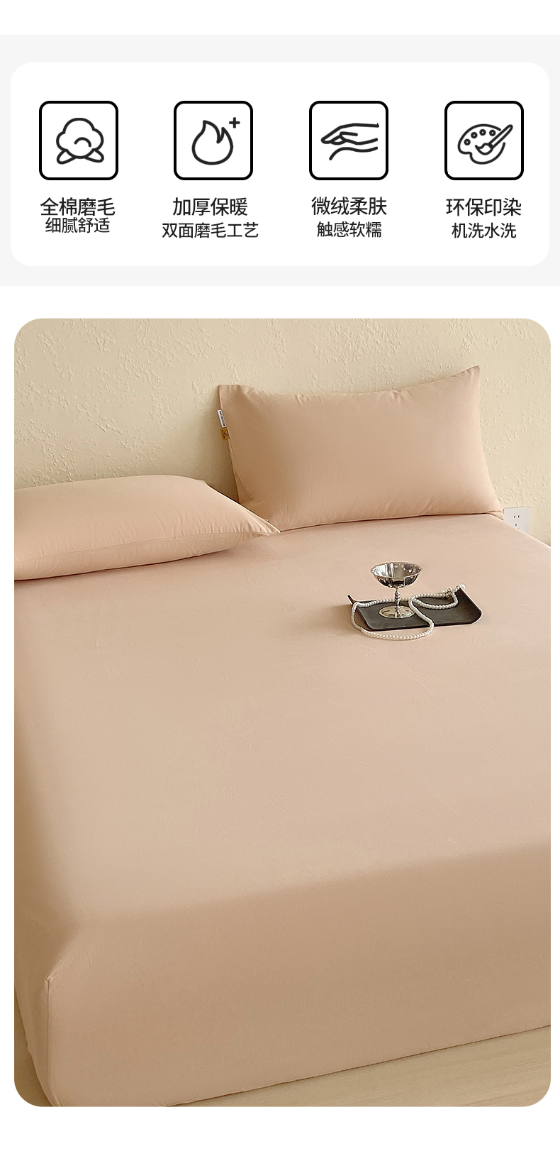 凯磊家纺 - 凯磊家纺 2025新款加厚磨毛纯色系列床笠 饼干色