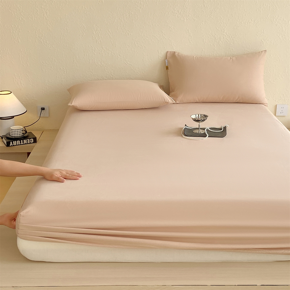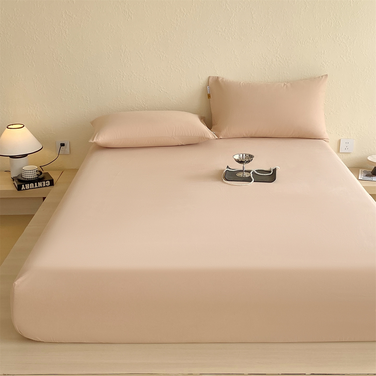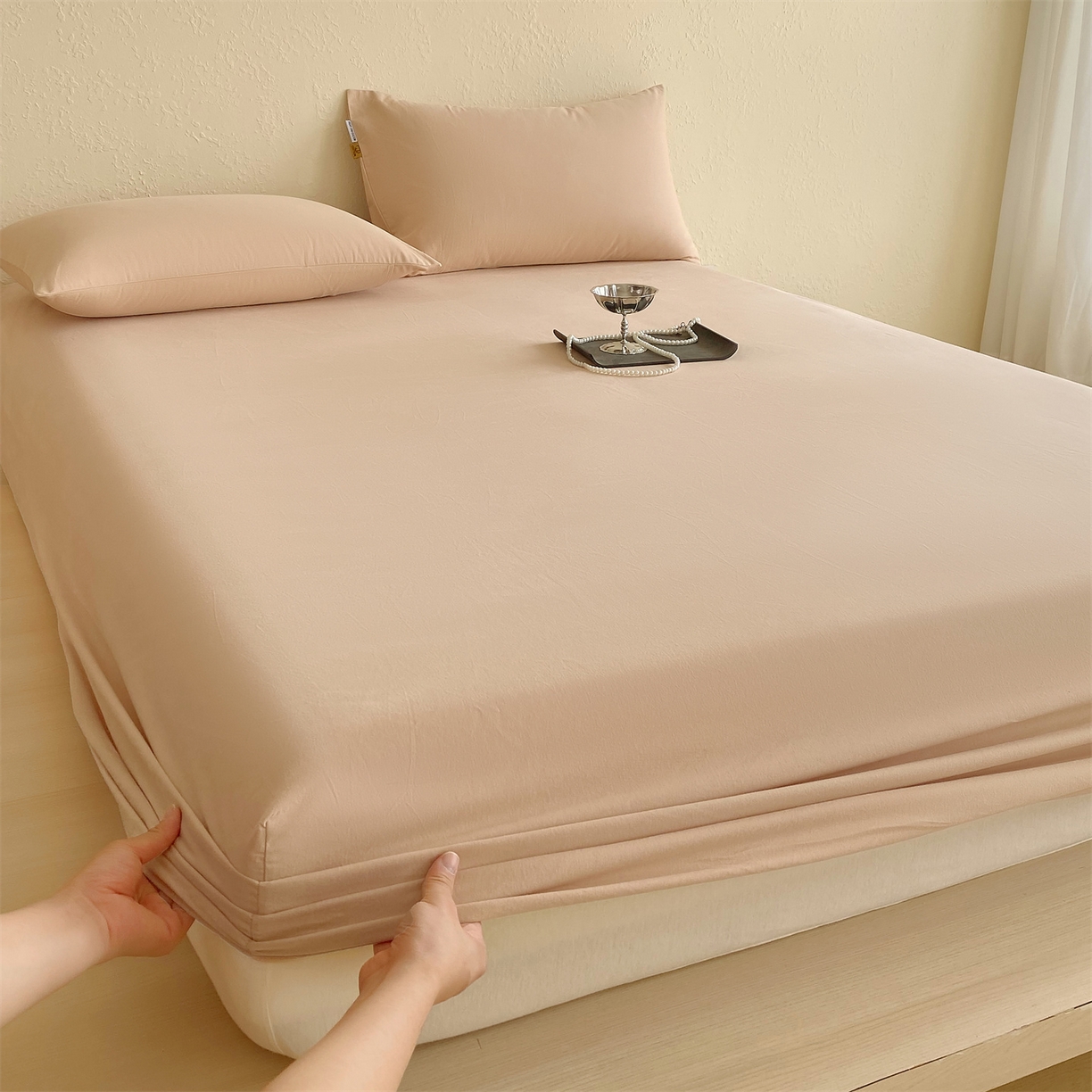 凯磊家纺 2025新款加厚磨毛纯色系列床笠 饼干色