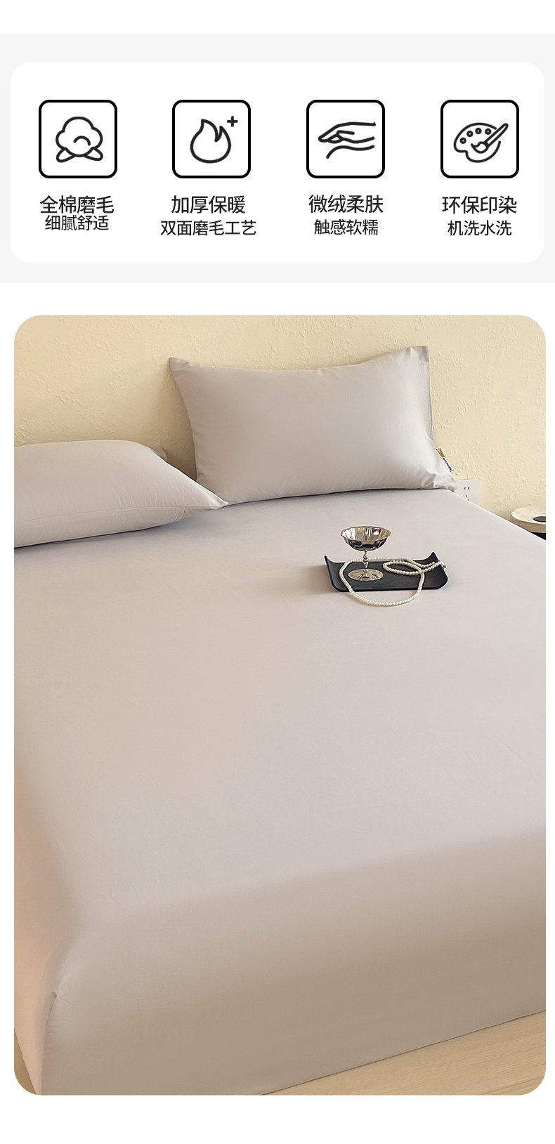 凯磊家纺 - 凯磊家纺 2025新款加厚磨毛纯色系列床笠 浅灰色
