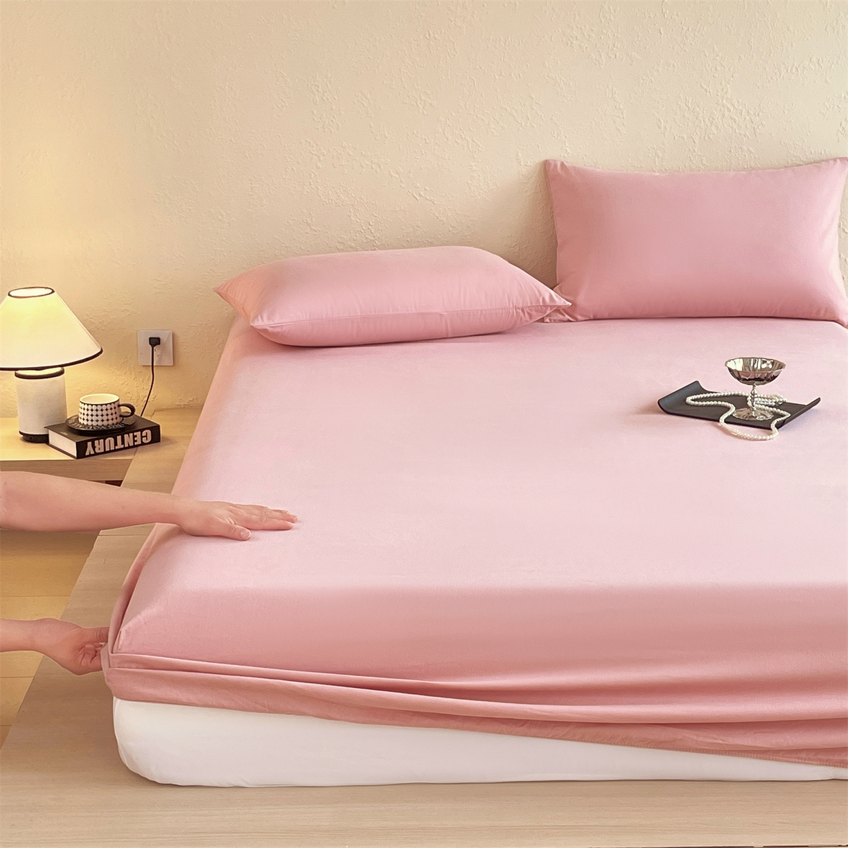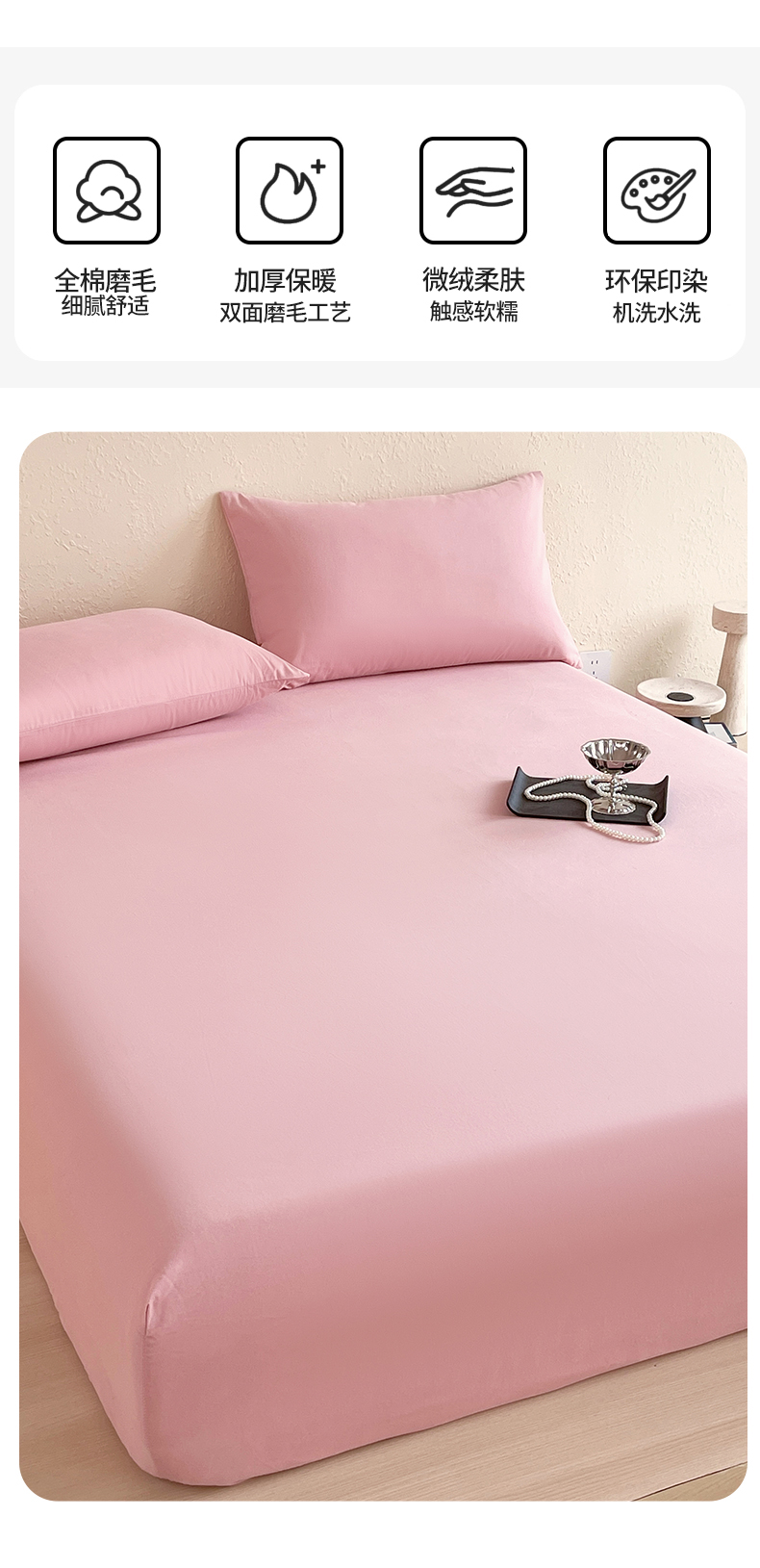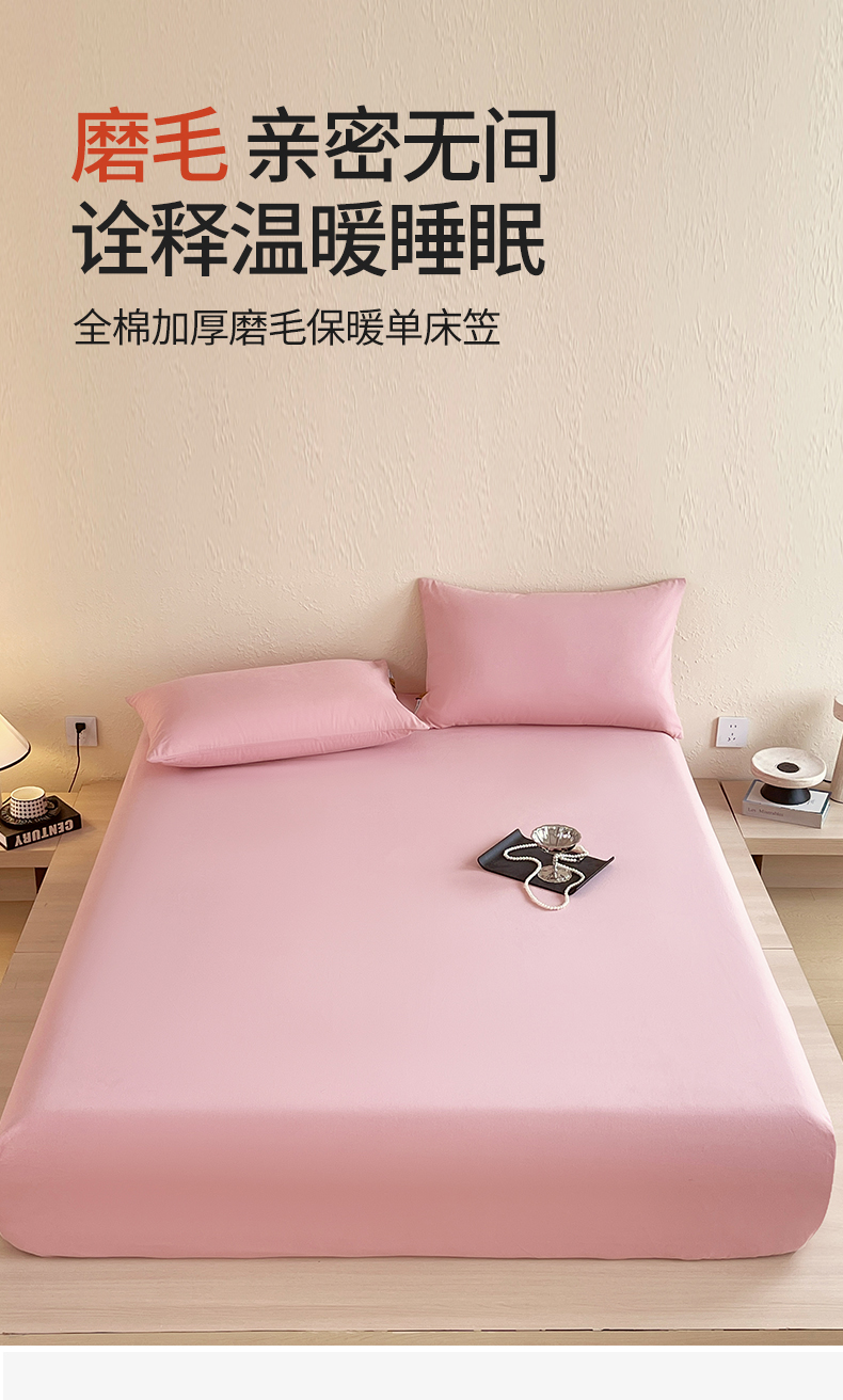 凯磊家纺 2025新款加厚磨毛纯色系列床笠 胭脂粉