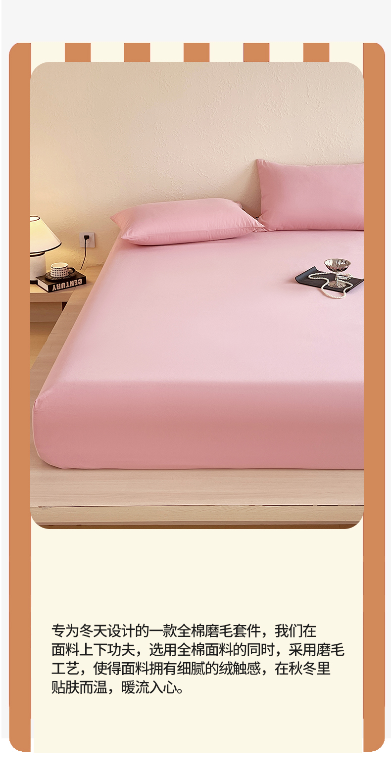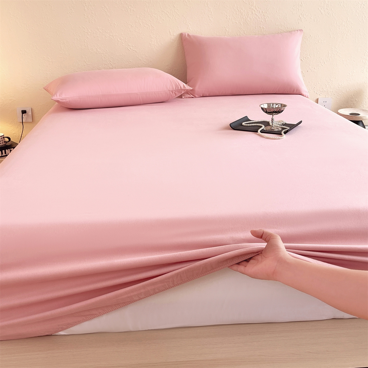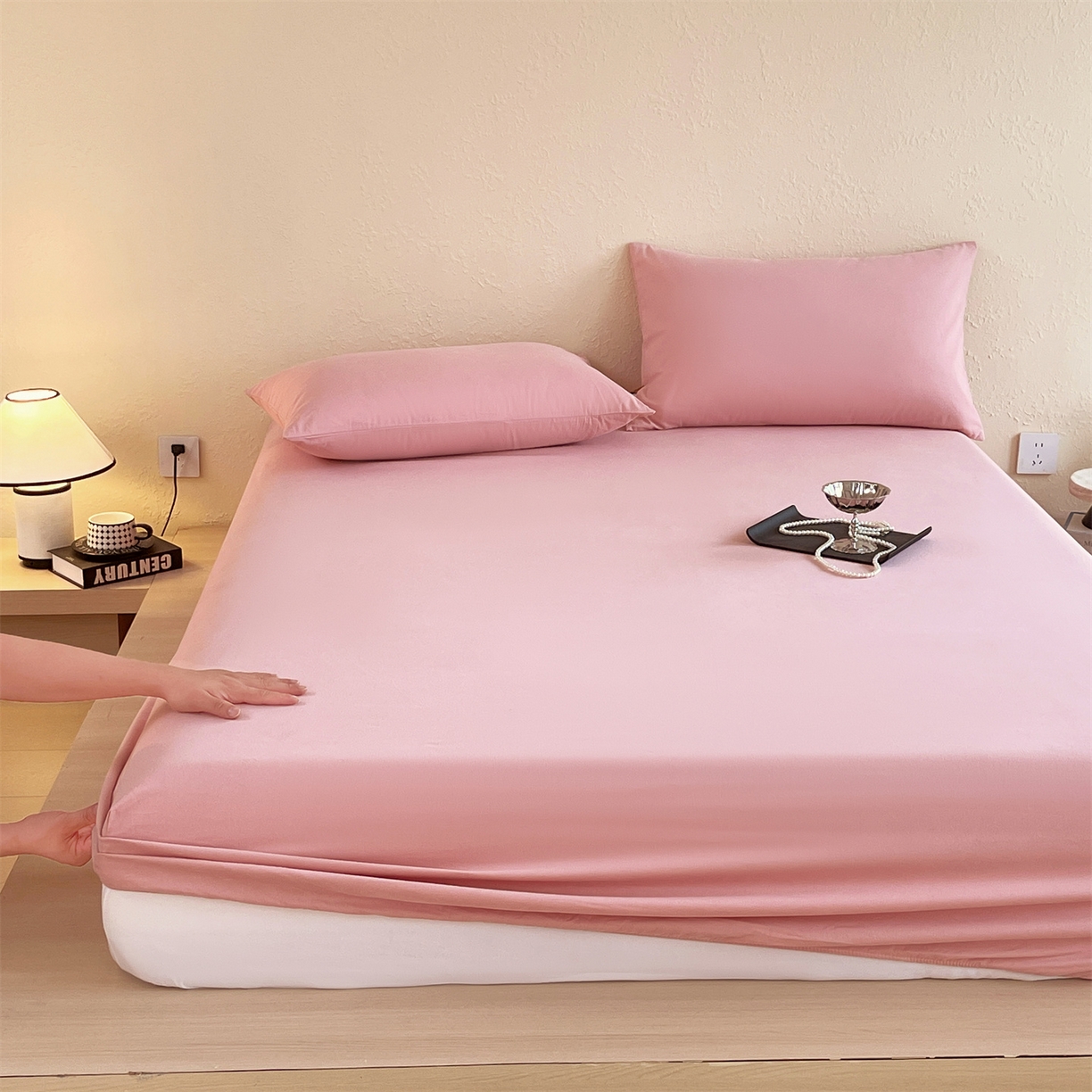 凯磊家纺 2025新款加厚磨毛纯色系列床笠 胭脂粉