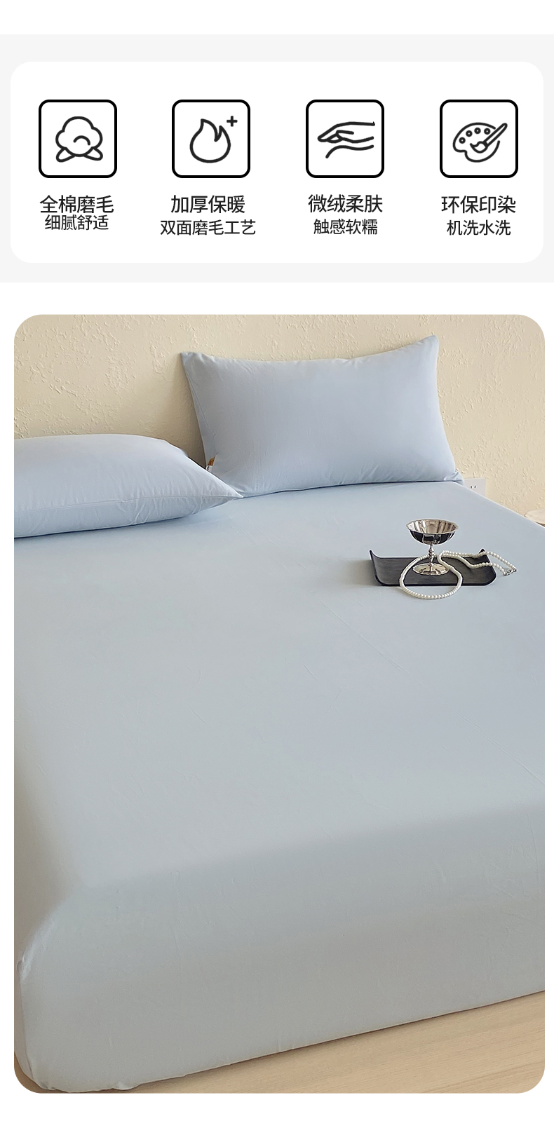 凯磊家纺 2025新款加厚磨毛纯色系列床笠 婴儿蓝