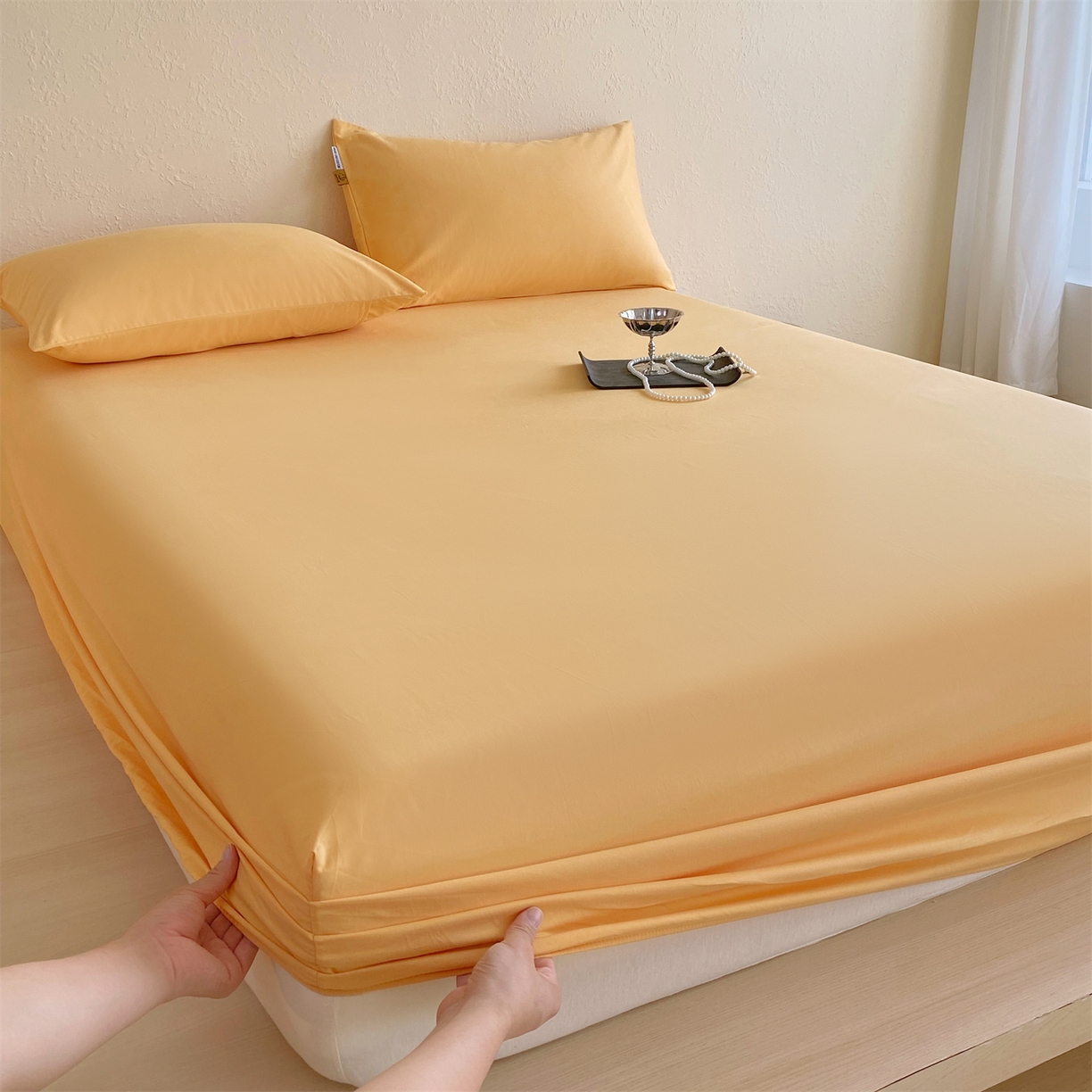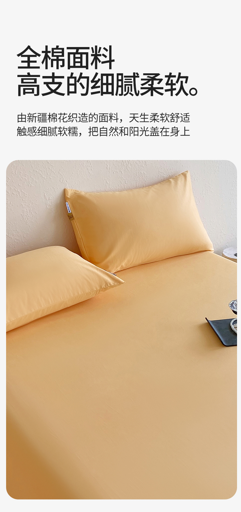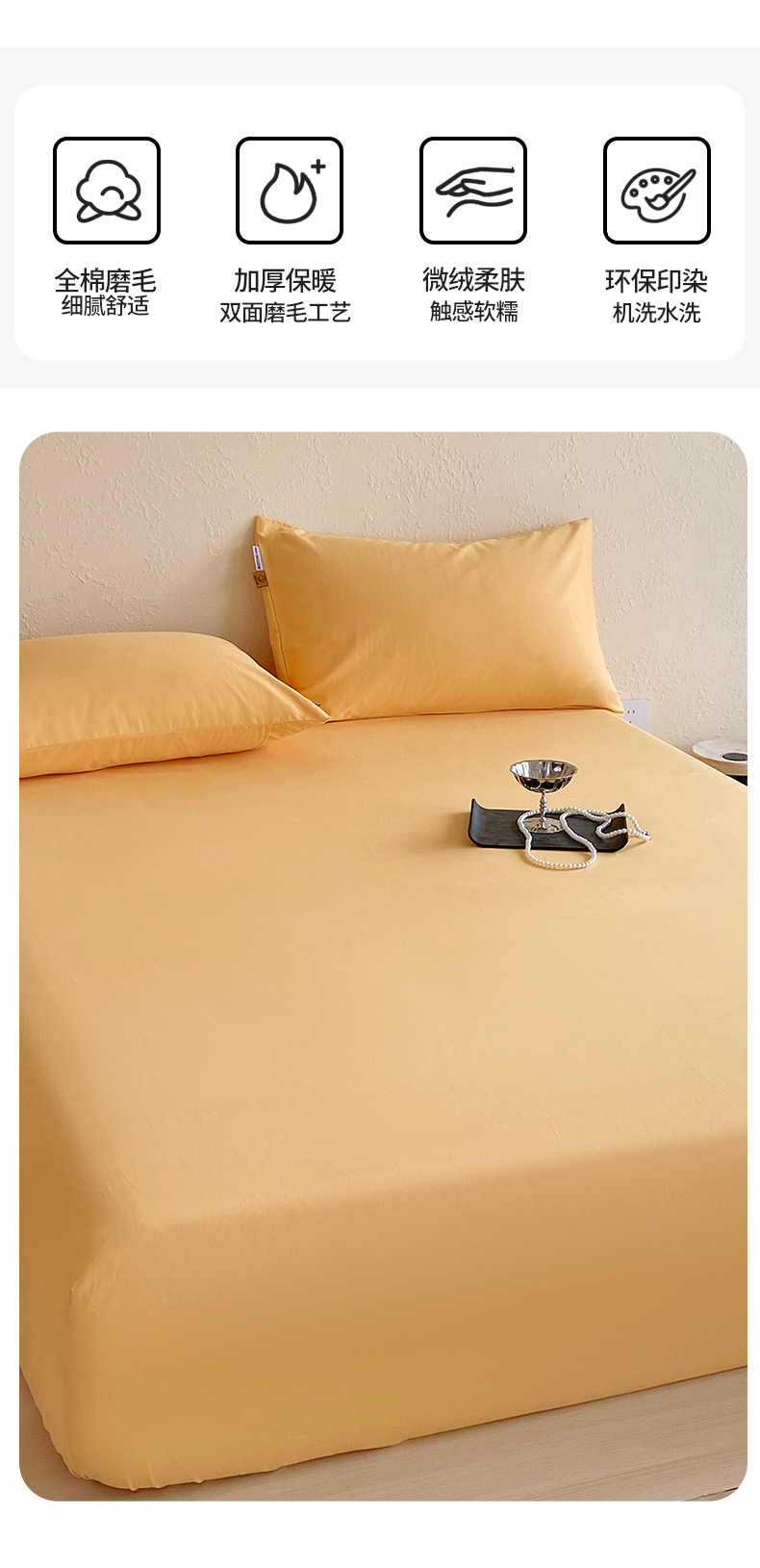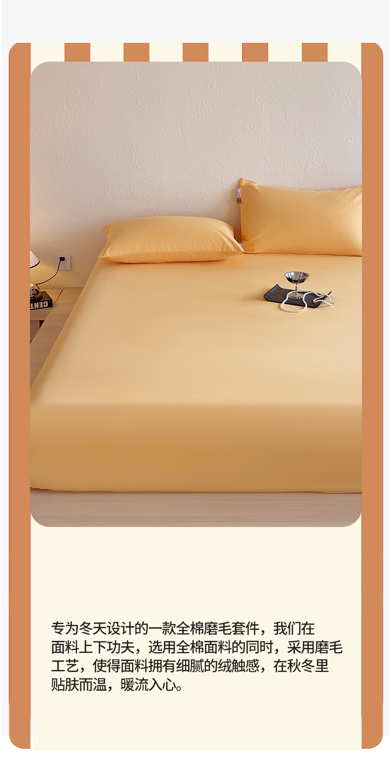 凯磊家纺 2025新款加厚磨毛纯色系列床笠 栀子黄