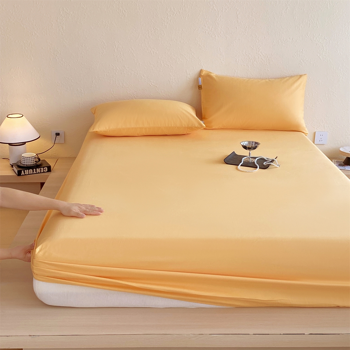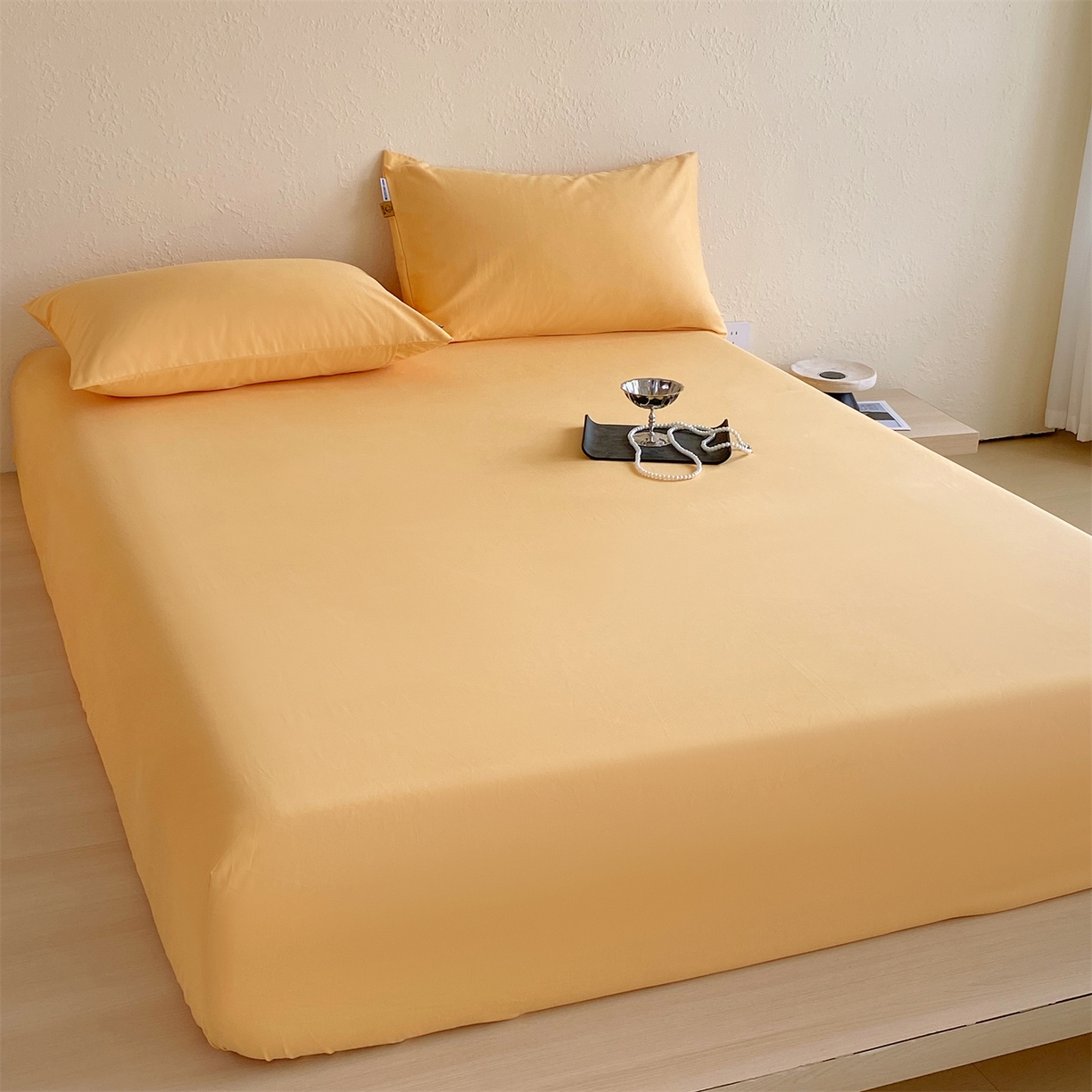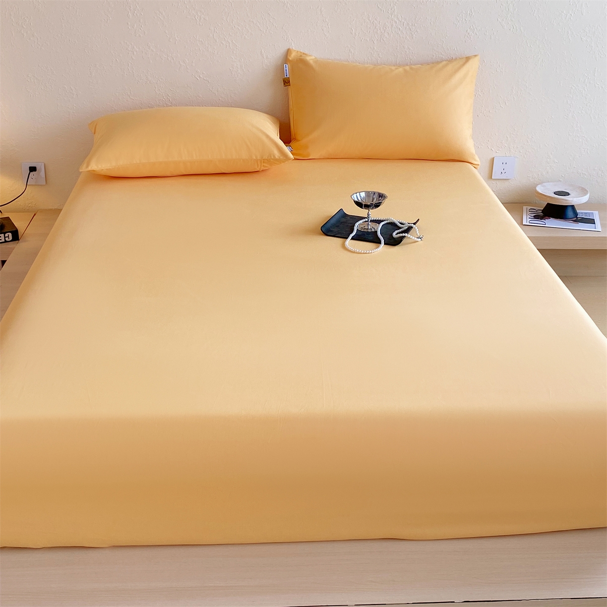 凯磊家纺 2025新款加厚磨毛纯色系列床笠 栀子黄