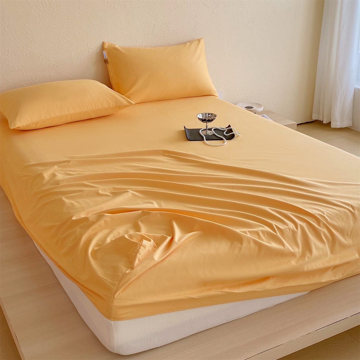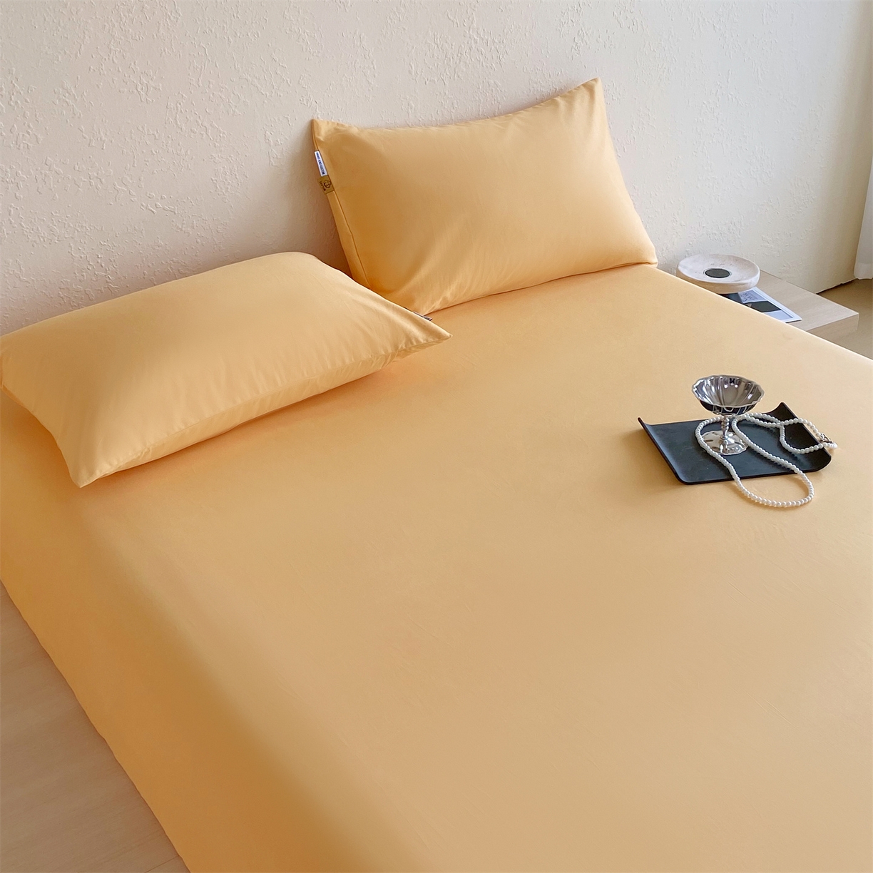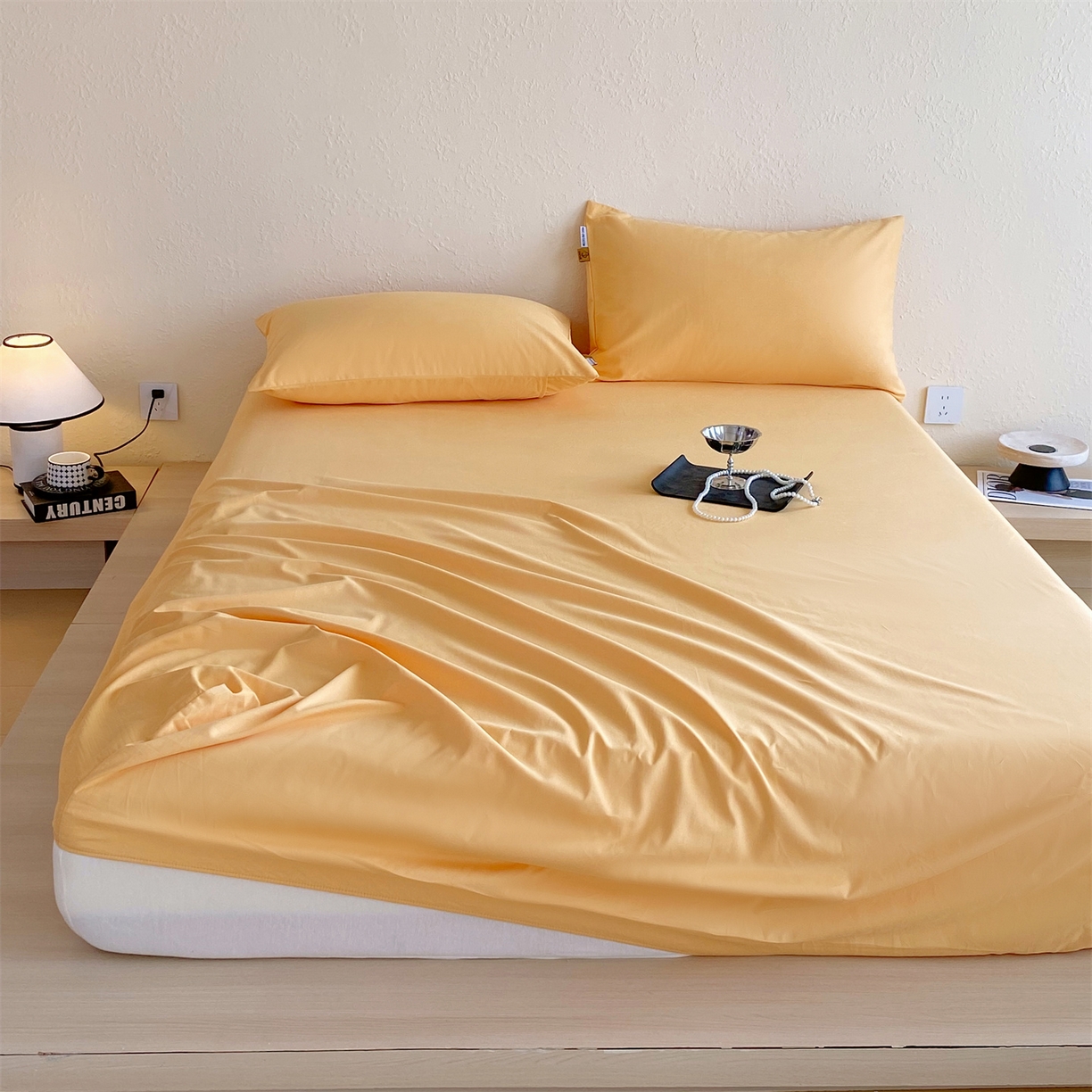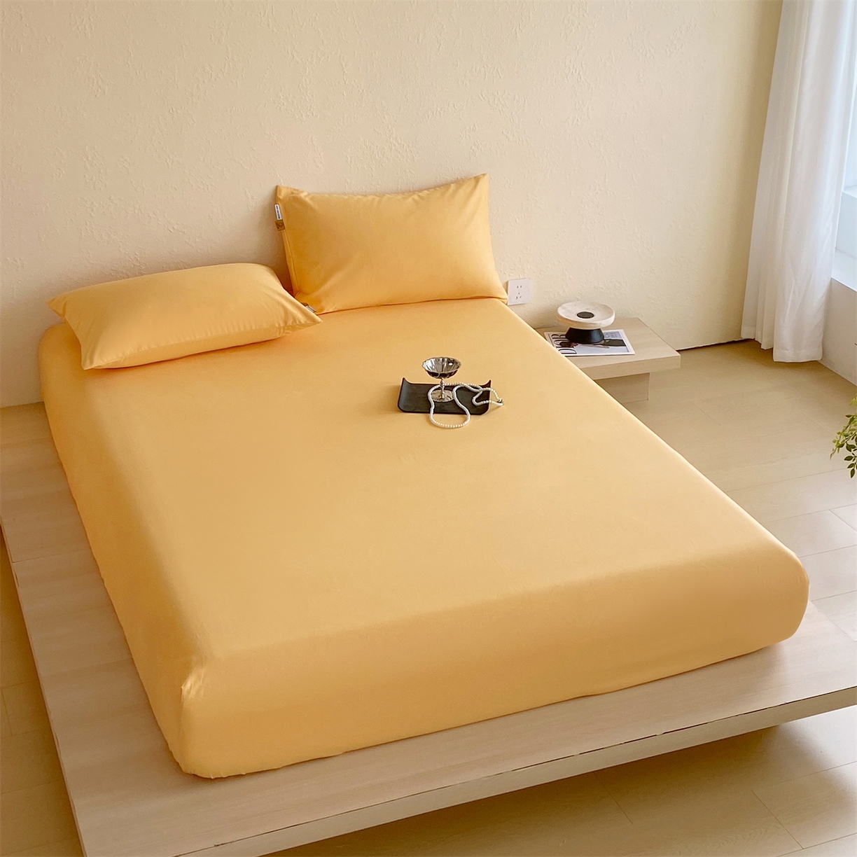 凯磊家纺 2025新款加厚磨毛纯色系列床笠 栀子黄
