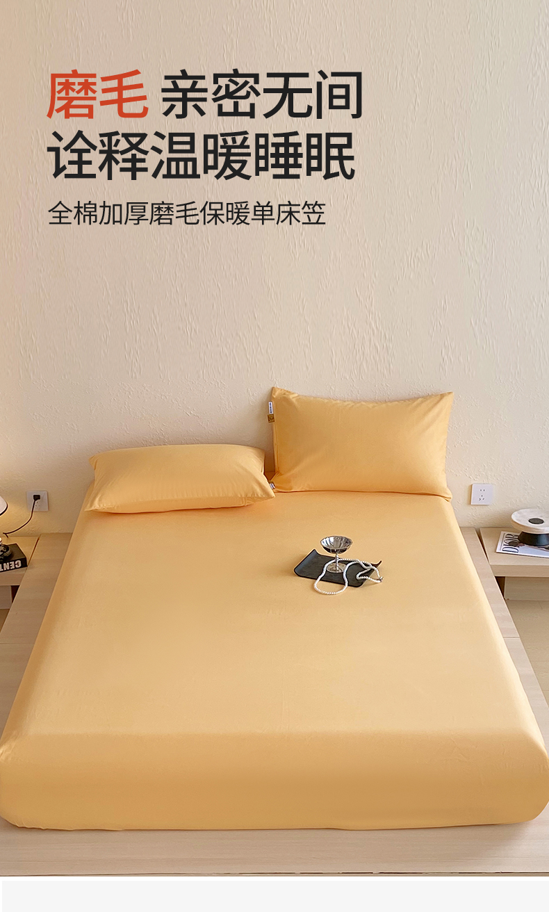 凯磊家纺 - 凯磊家纺 2025新款加厚磨毛纯色系列床笠 栀子黄