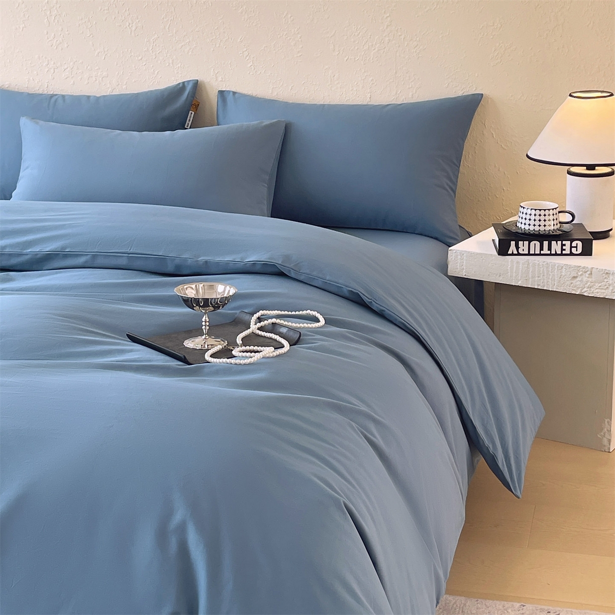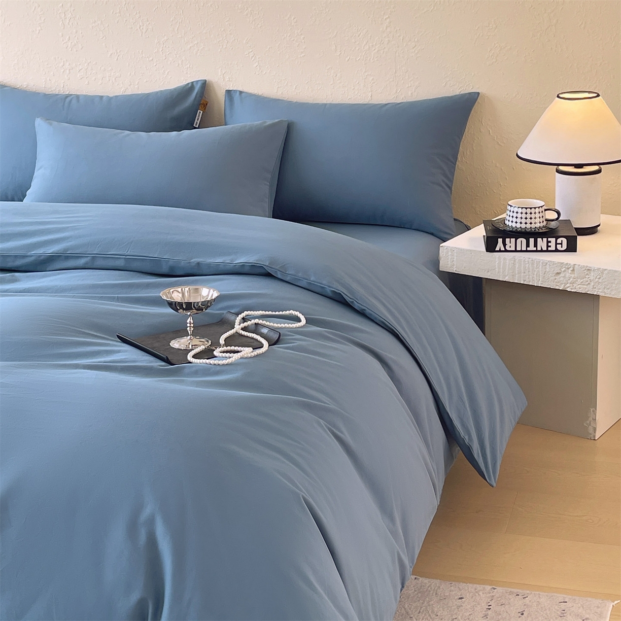 凯磊家纺 - 凯磊家纺 2025新款加厚磨毛纯色系列四件套 魅影蓝