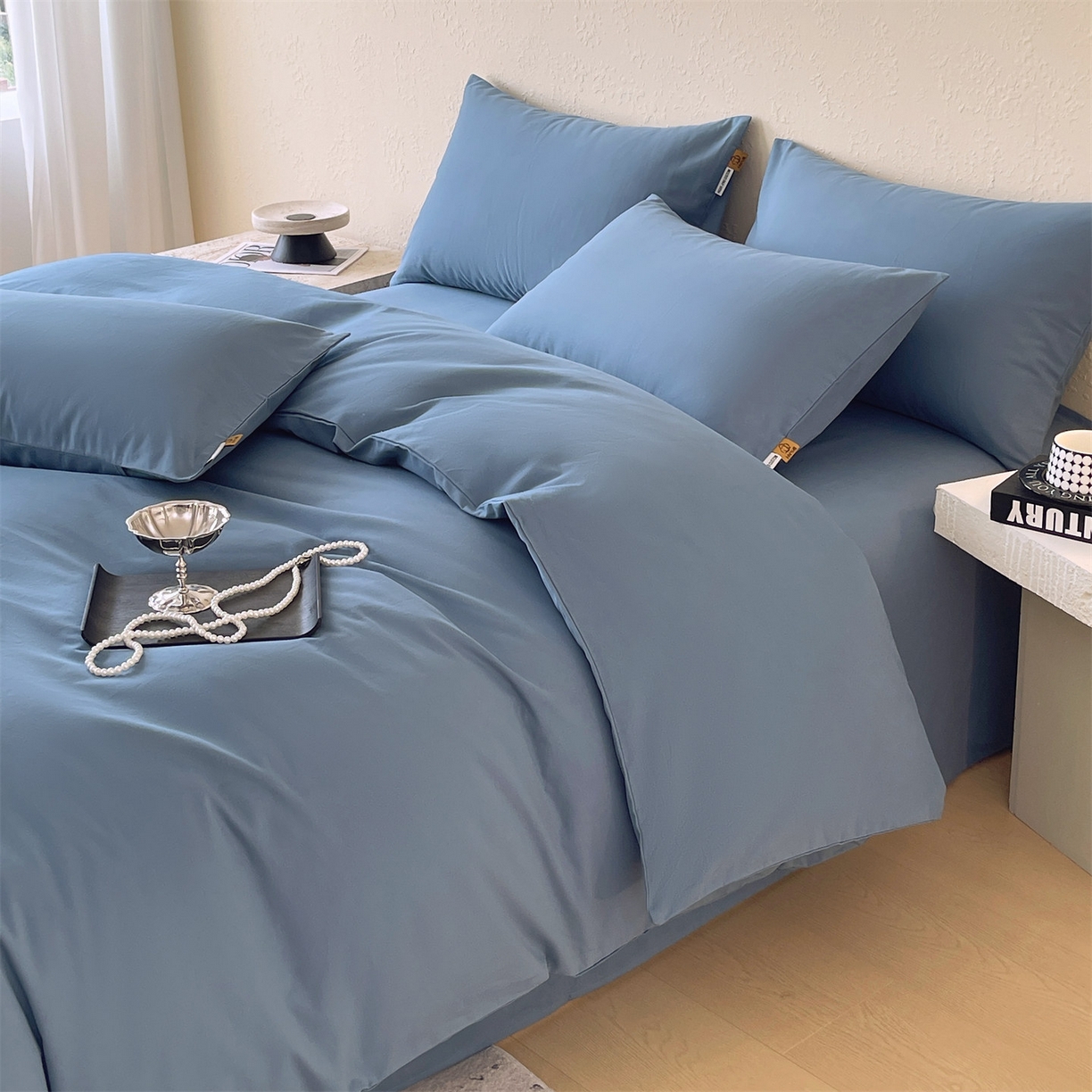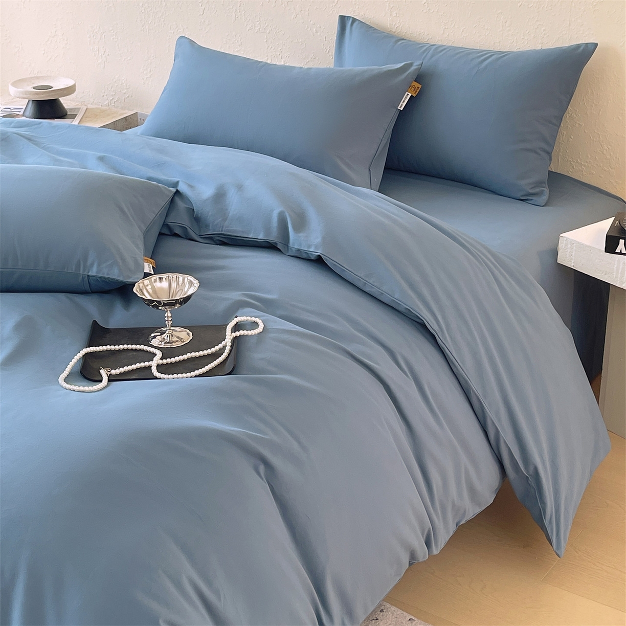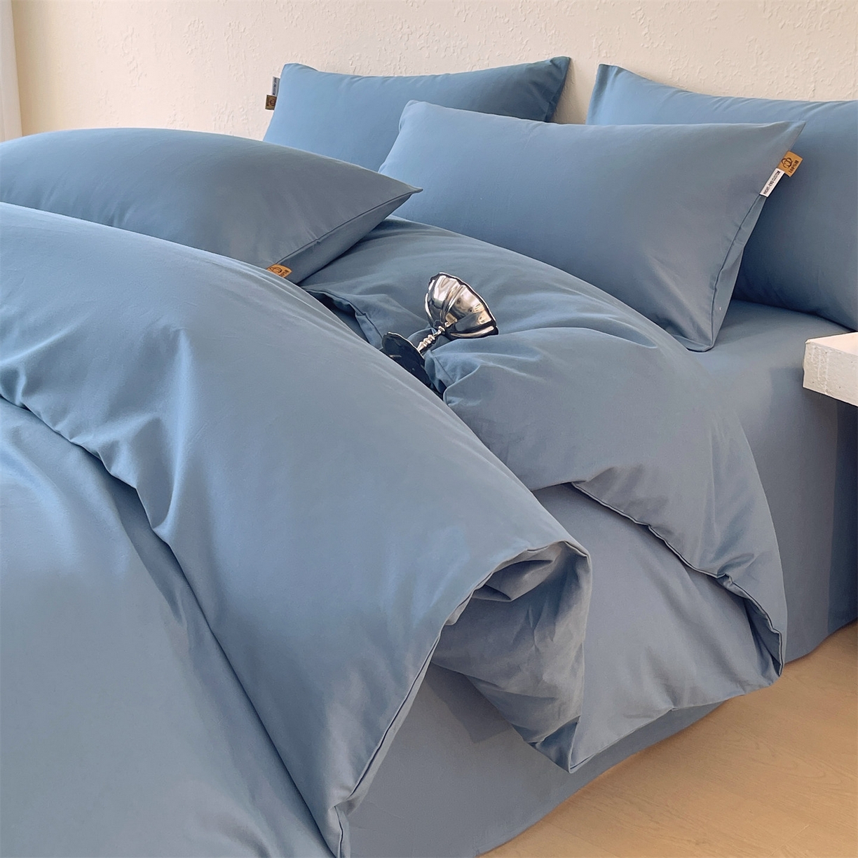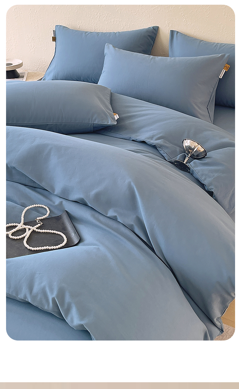 凯磊家纺 2025新款加厚磨毛纯色系列四件套 魅影蓝