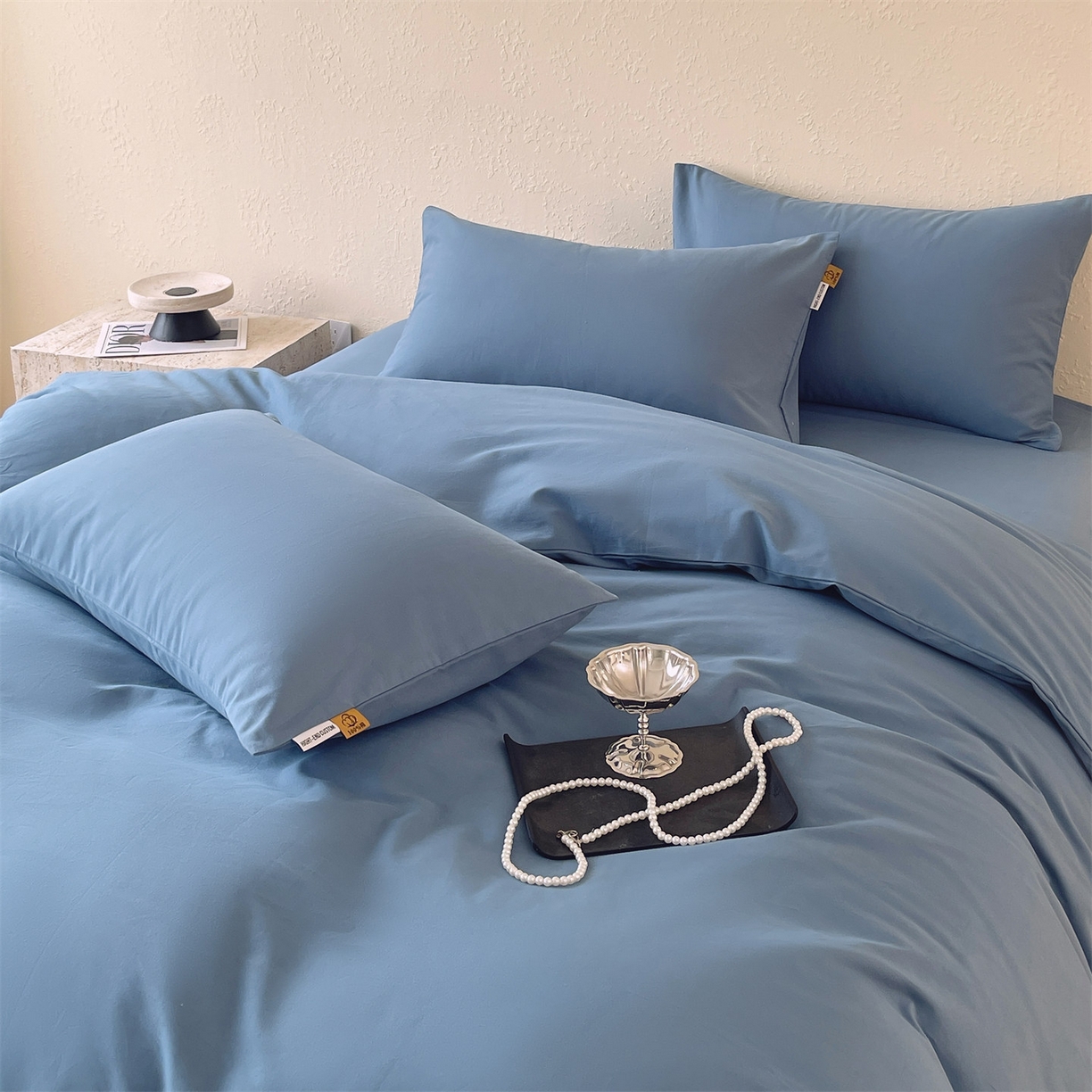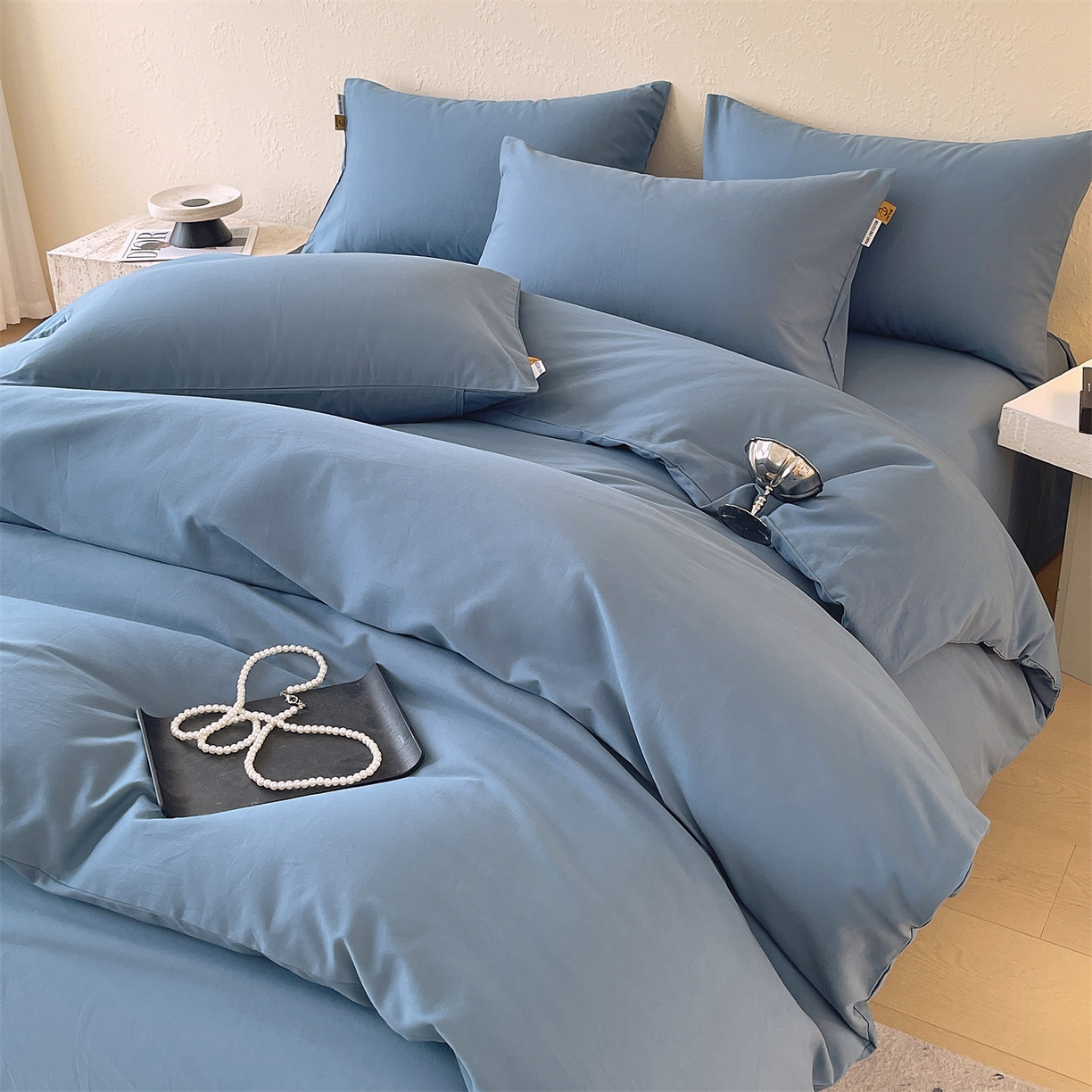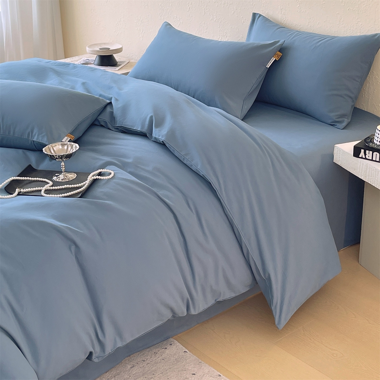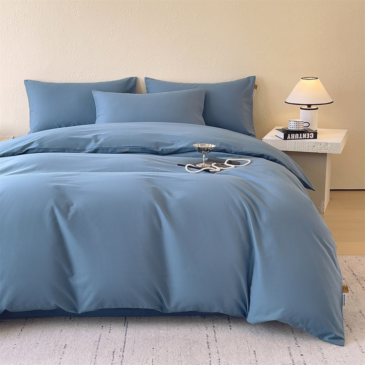 凯磊家纺 2025新款加厚磨毛纯色系列四件套 魅影蓝
