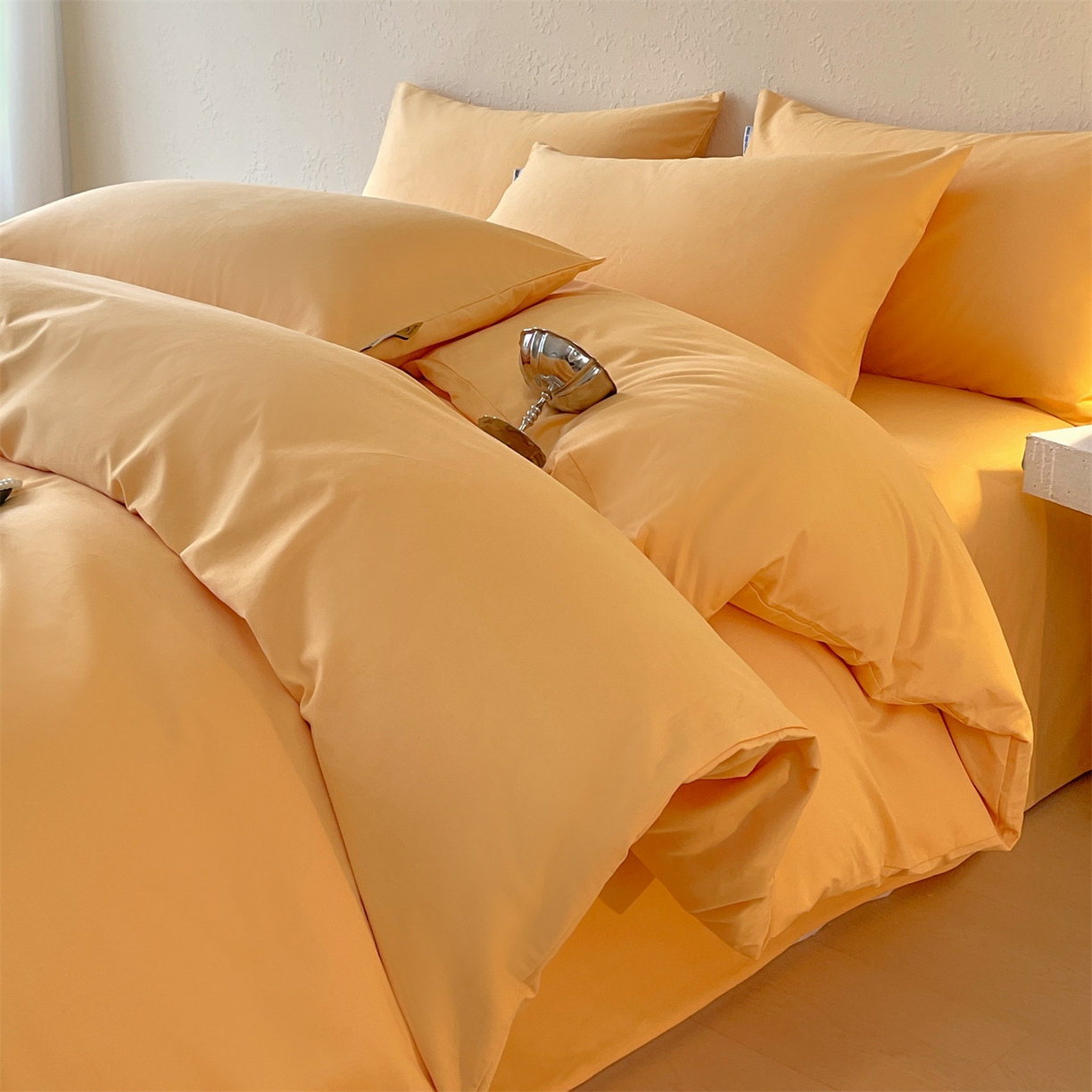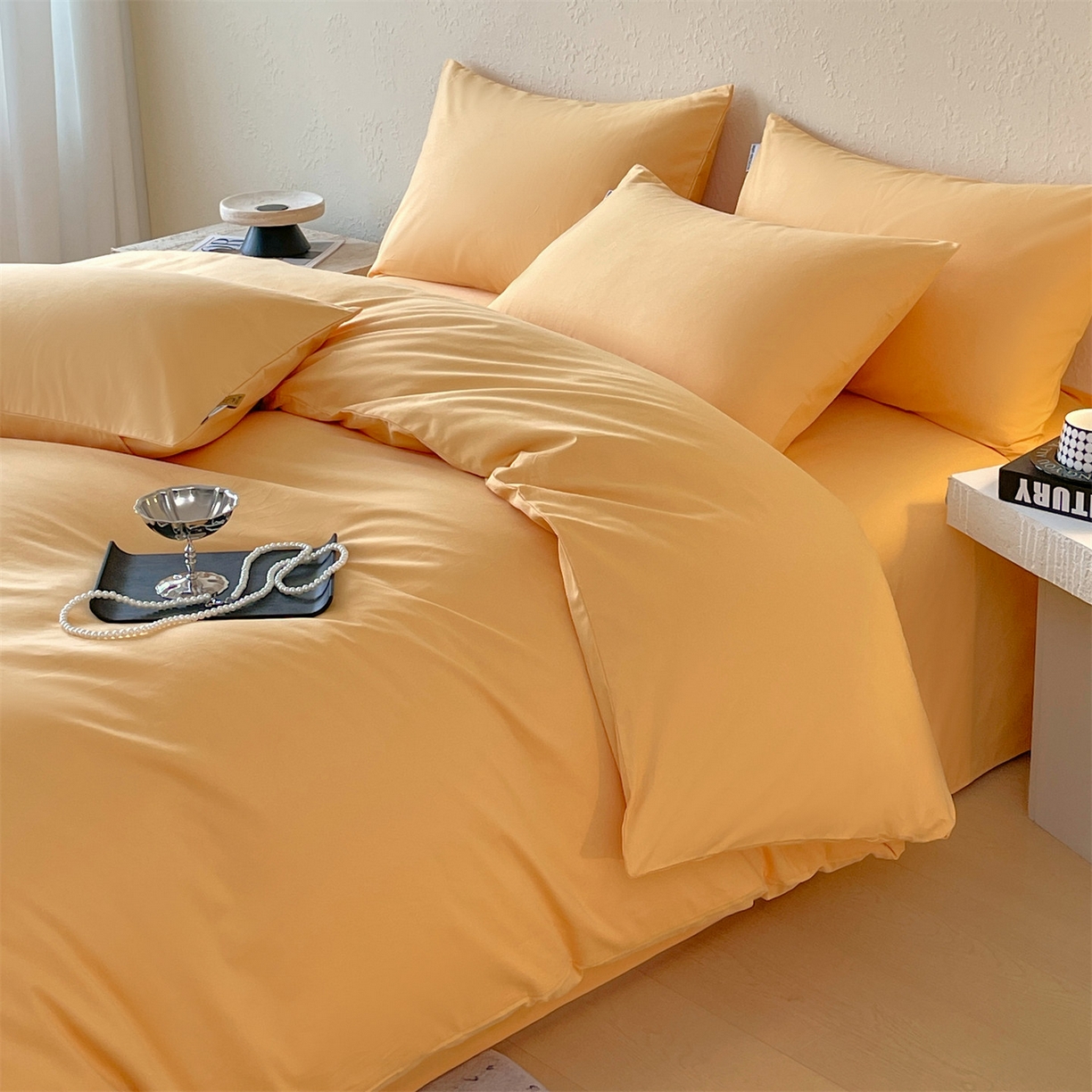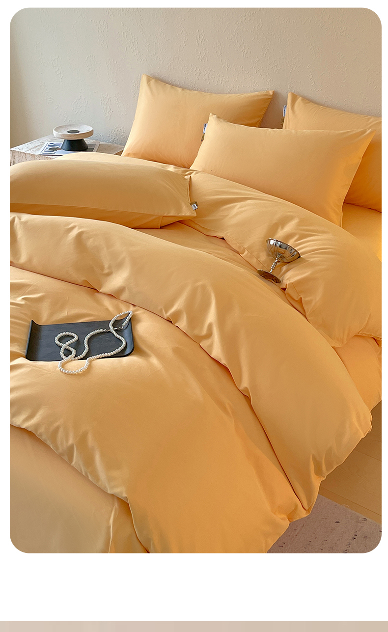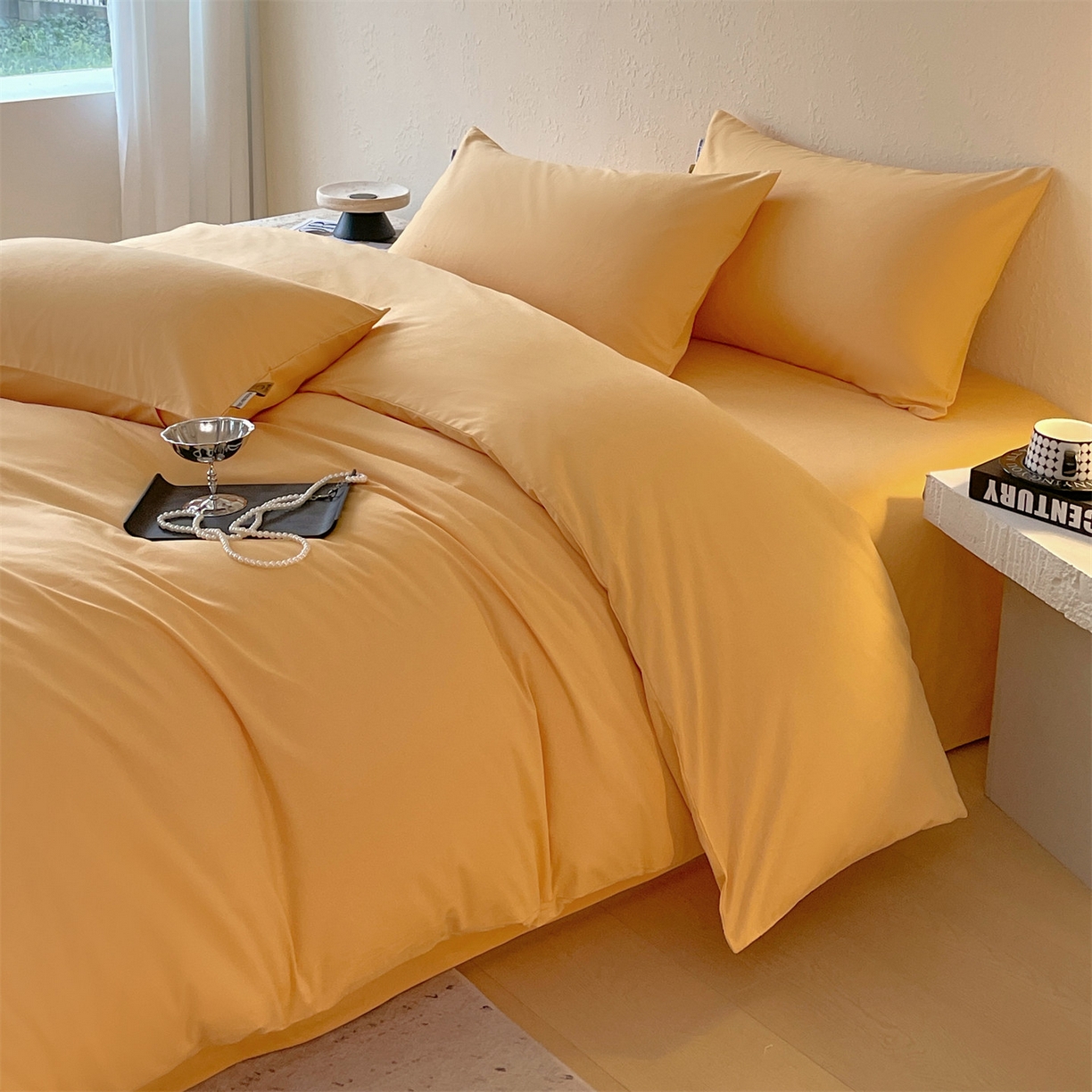 凯磊家纺 2025新款加厚磨毛纯色系列四件套 栀子黄