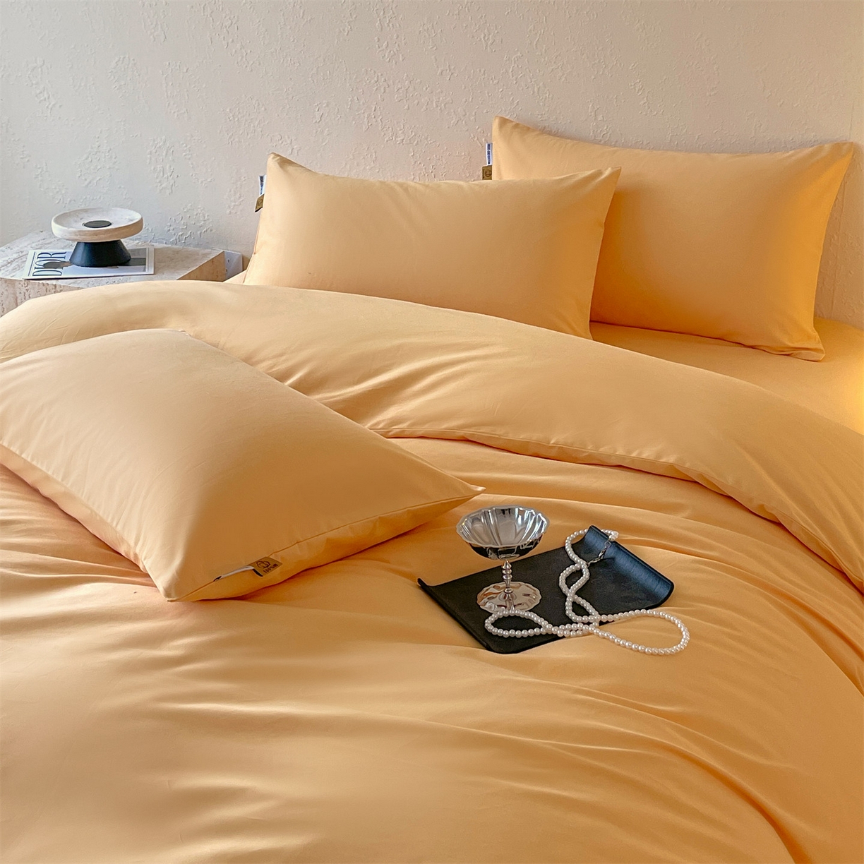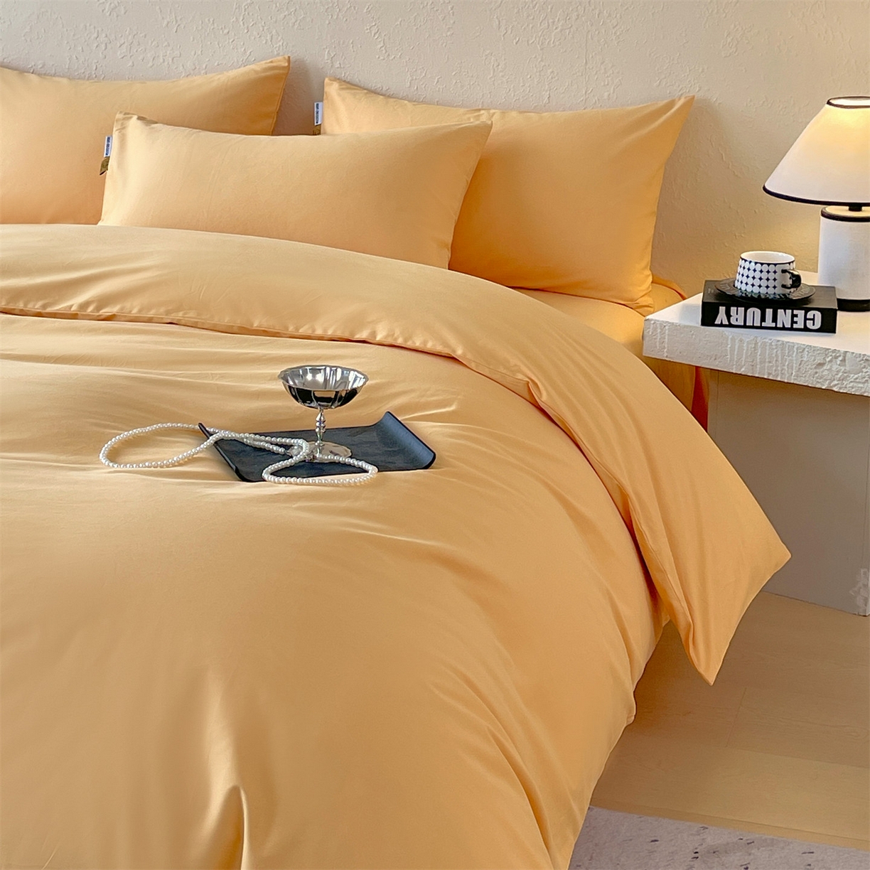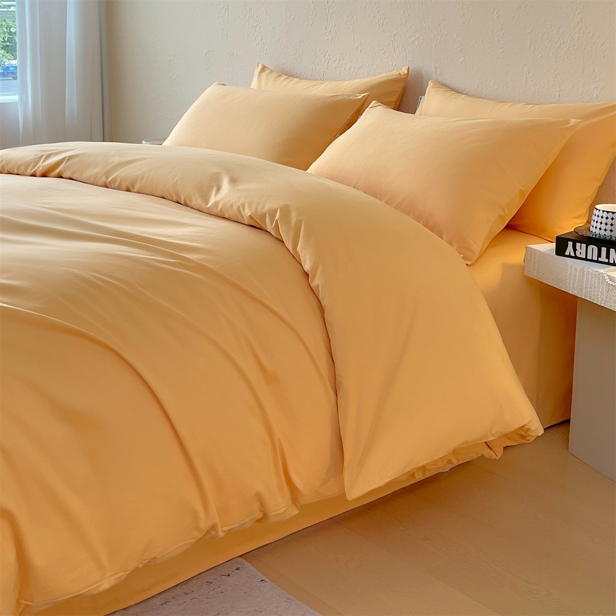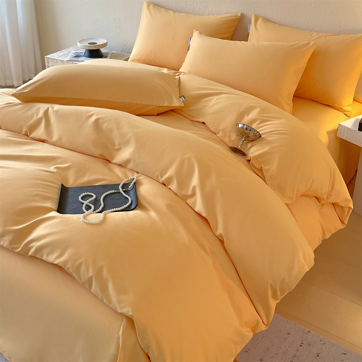 凯磊家纺 2025新款加厚磨毛纯色系列四件套 栀子黄