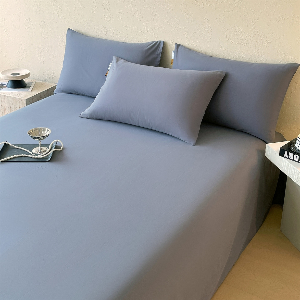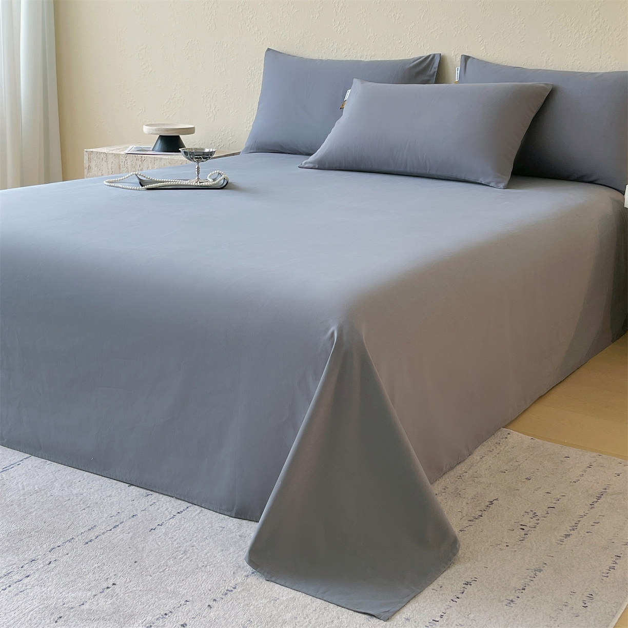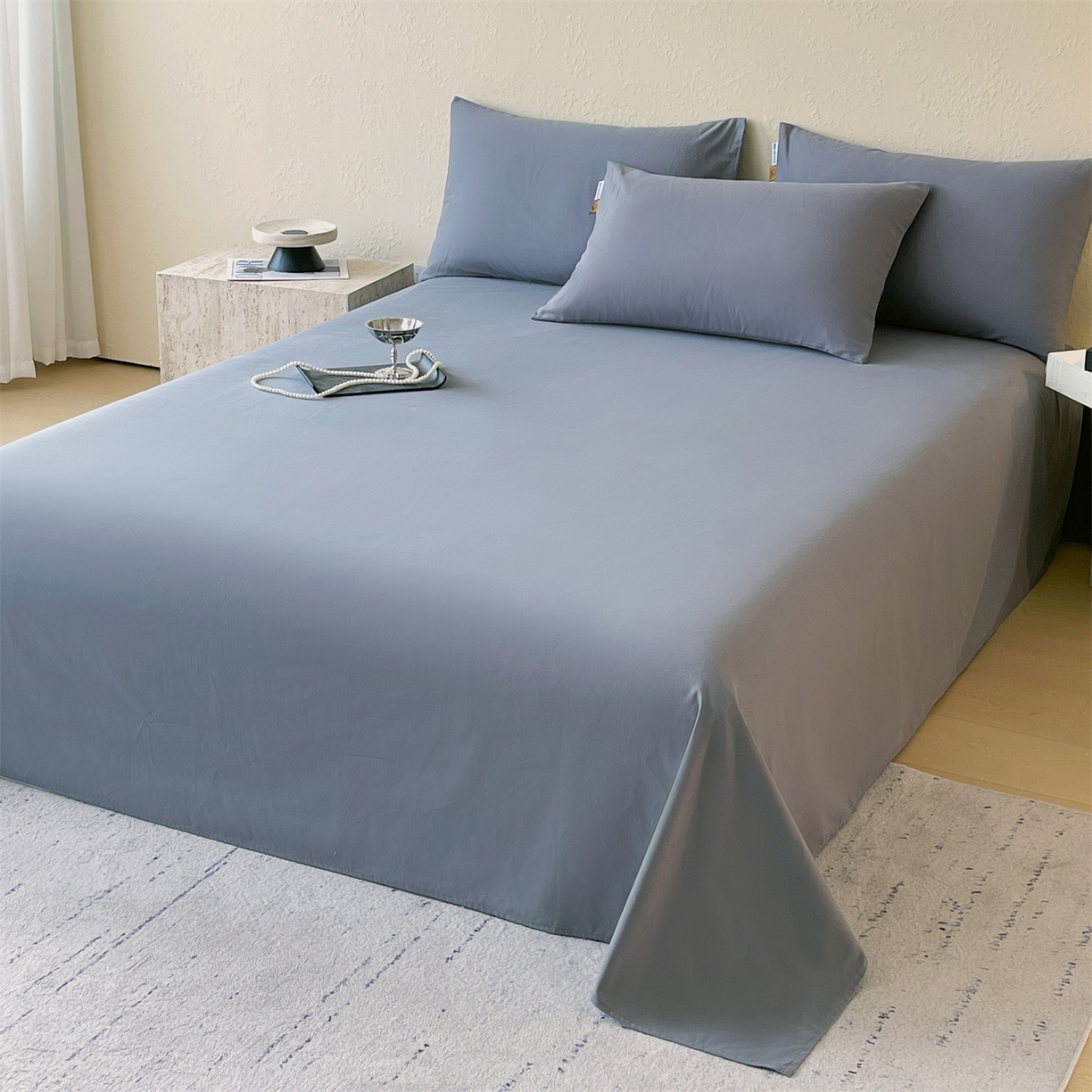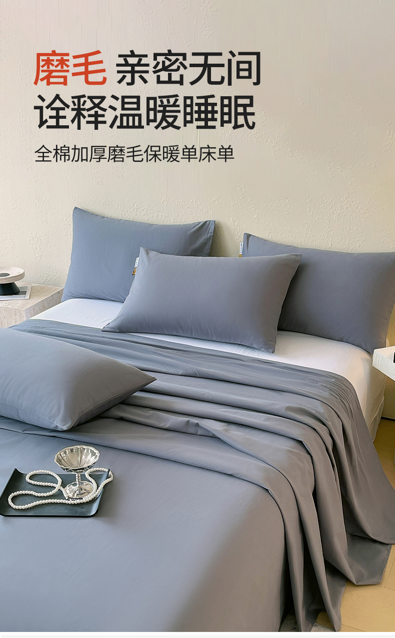> 凯磊家纺 2025新款加厚磨毛纯色系列床单 蓝灰色