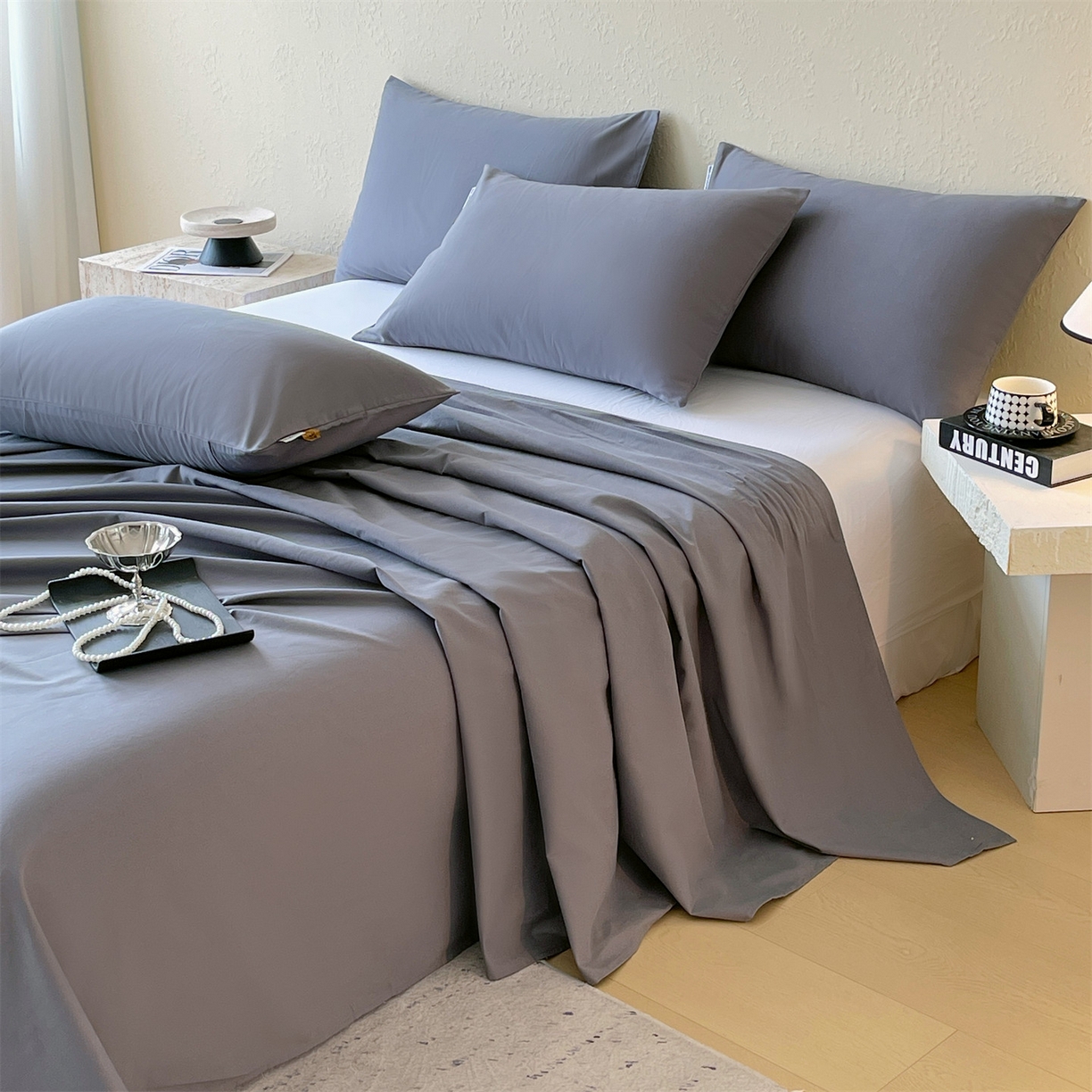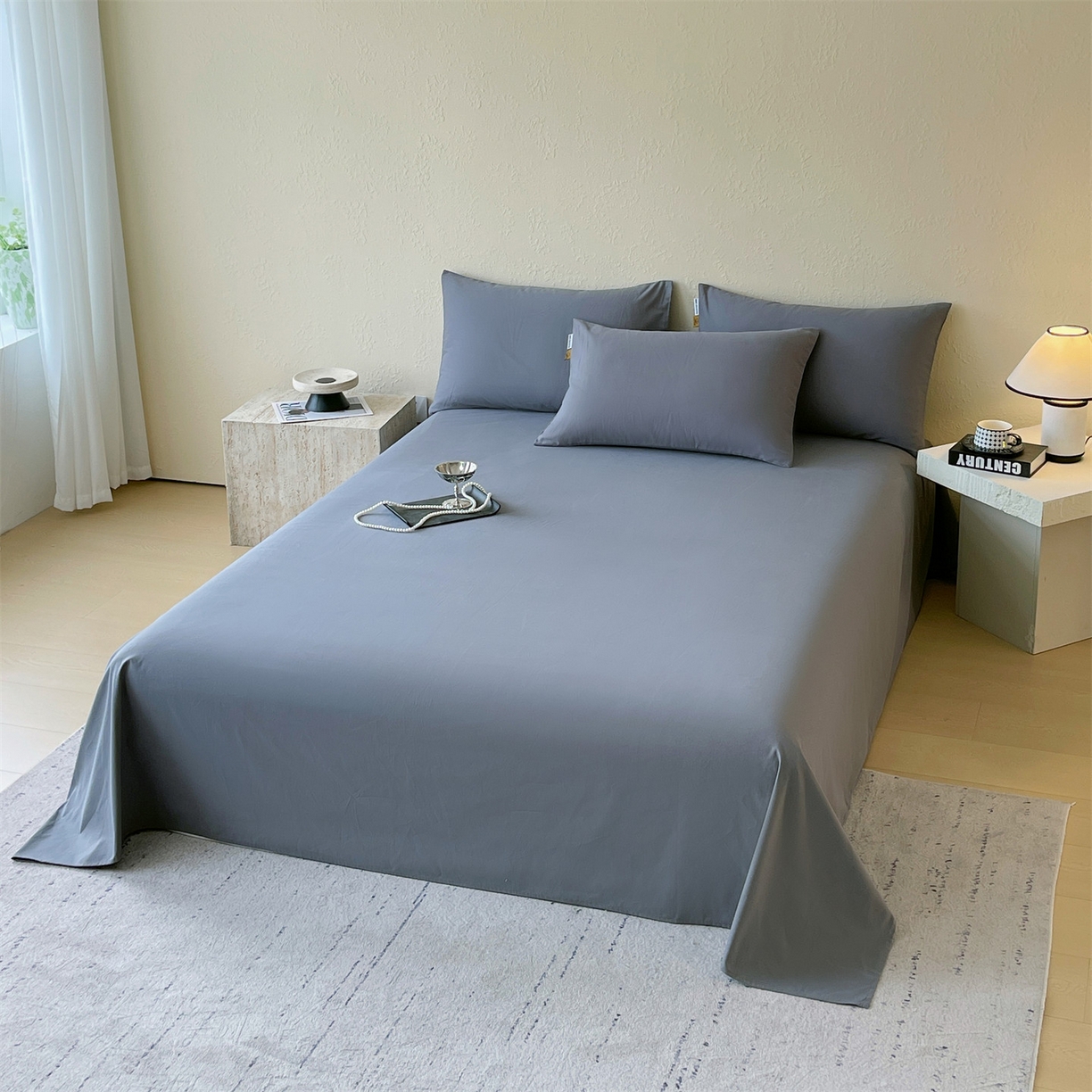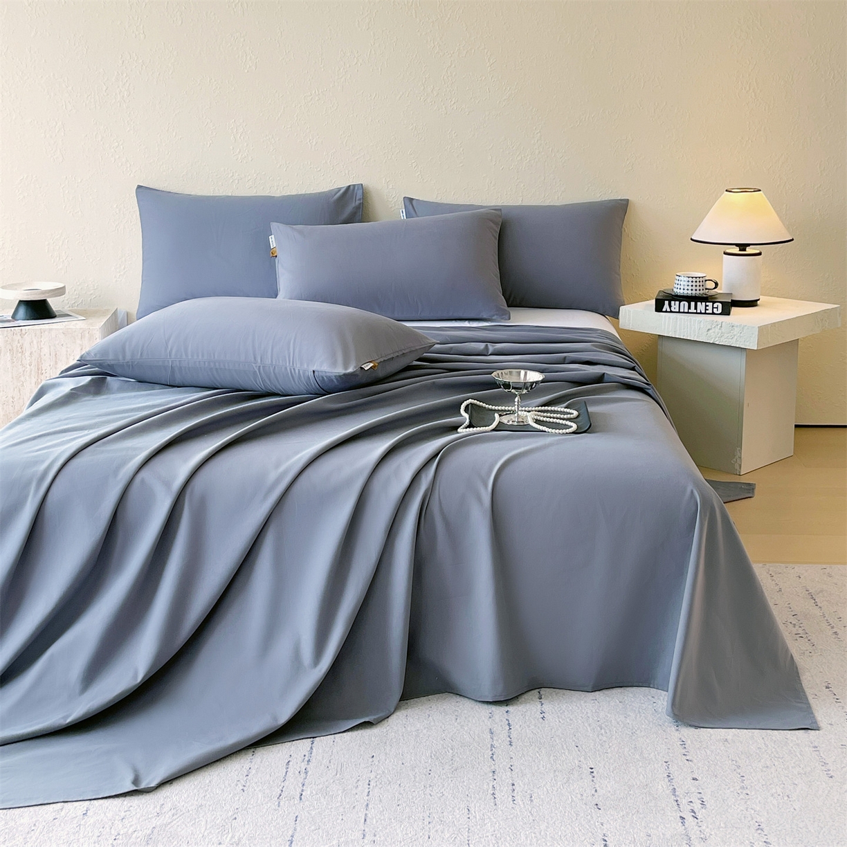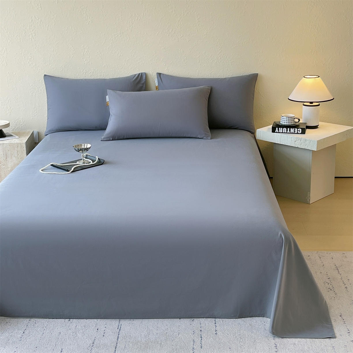> 凯磊家纺 2025新款加厚磨毛纯色系列床单 蓝灰色