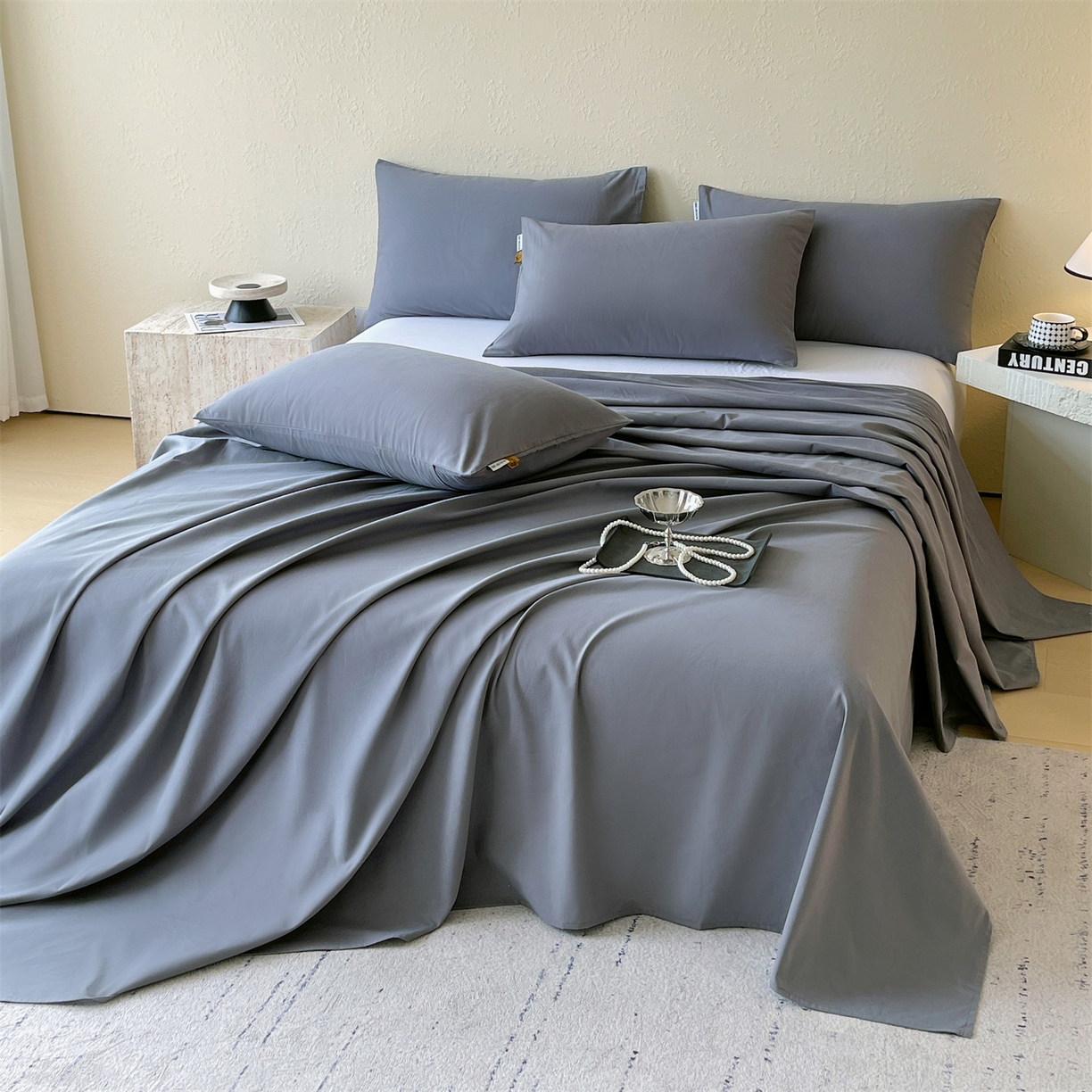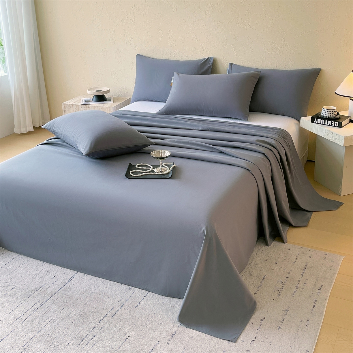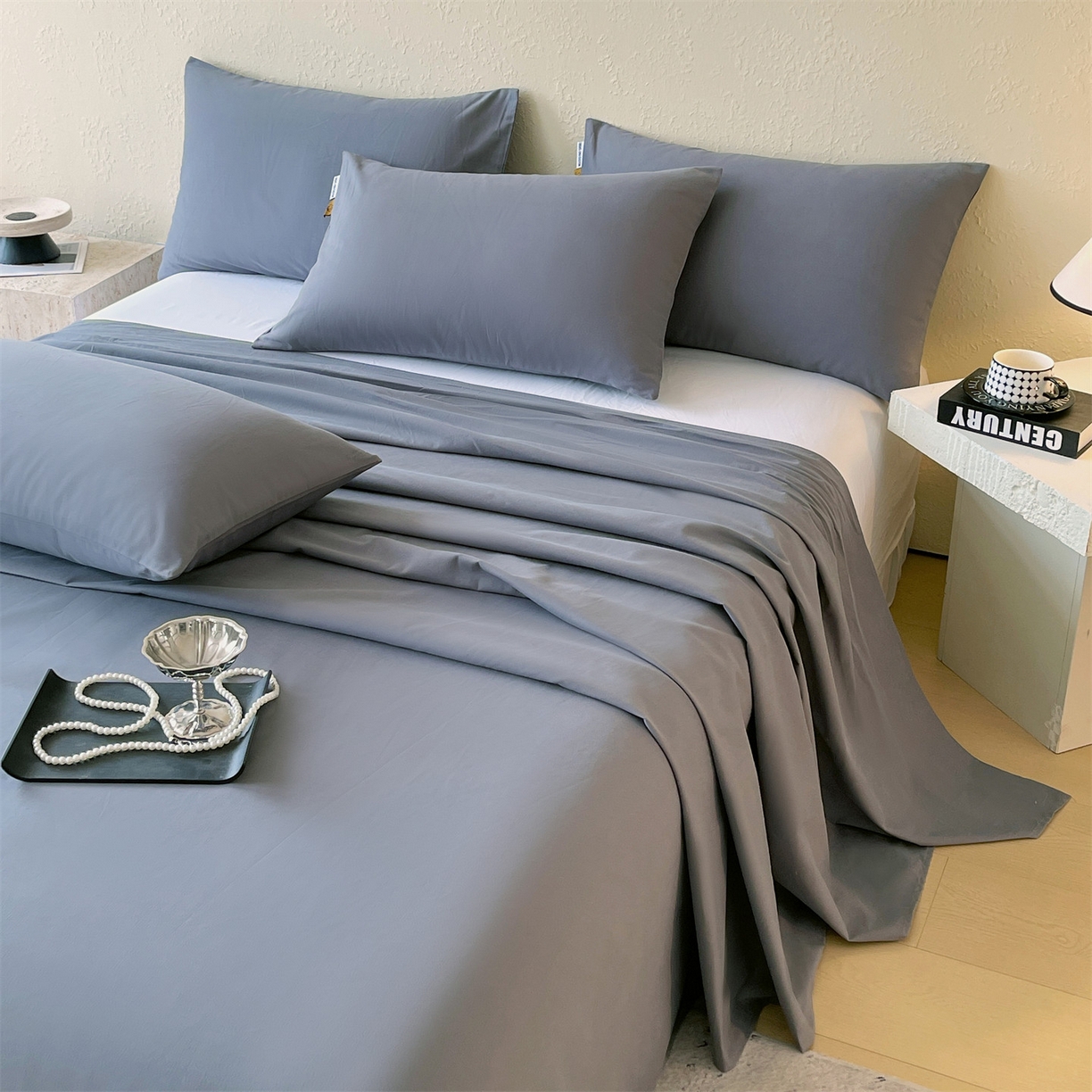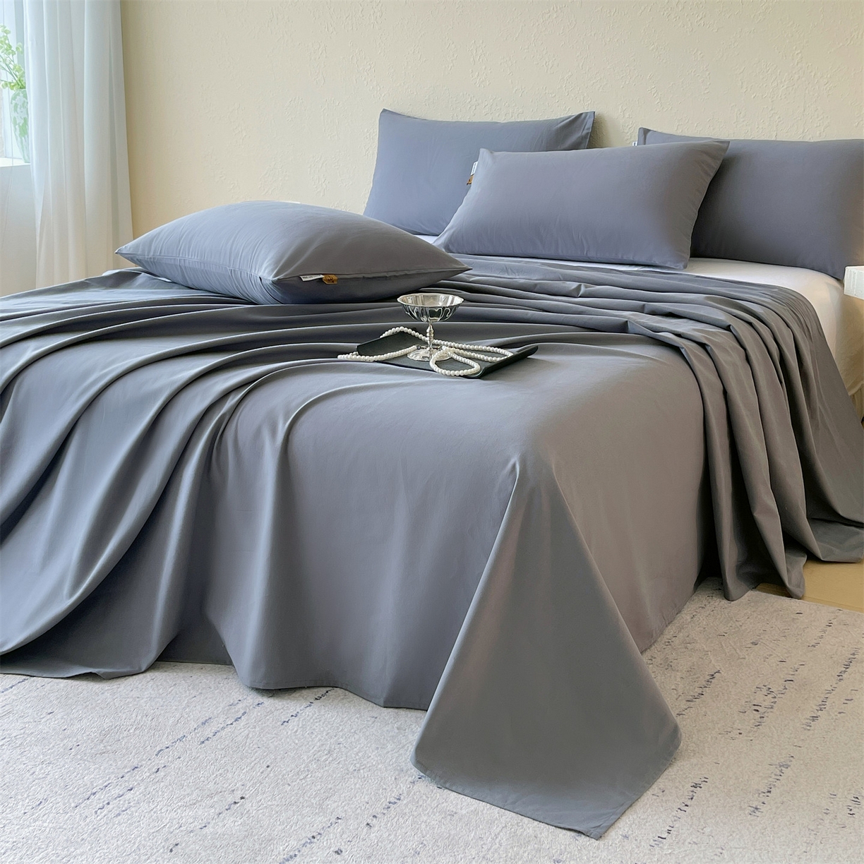 > 凯磊家纺 2025新款加厚磨毛纯色系列床单 蓝灰色