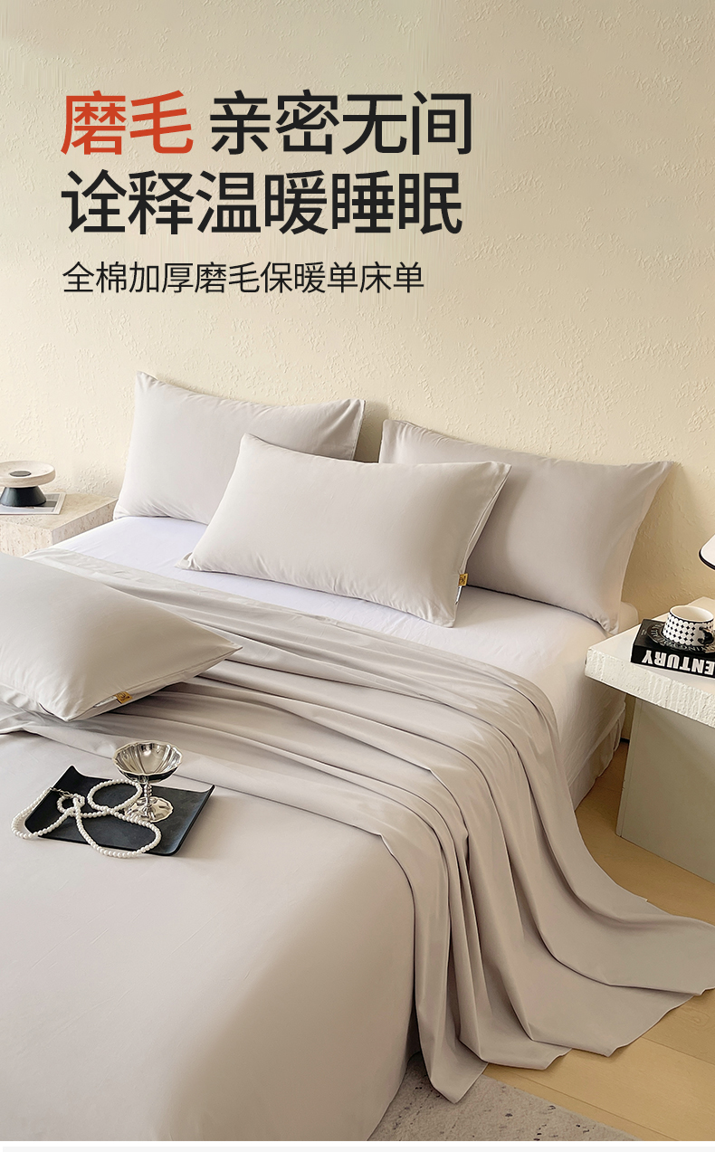 凯磊家纺 - 凯磊家纺 2025新款加厚磨毛纯色系列床单 浅灰色